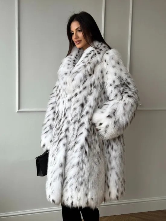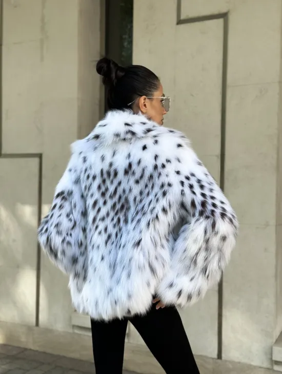 Мех данной шубы финский песец, цвет белый. Предлагается в размерах от 44 до 48. Длина модели 70-75 см, что выгодно подчеркивает фигуру девушек. Эта модель идеально подойдет для девушек и женщин, предпочитающих роскошные натуральные меха.