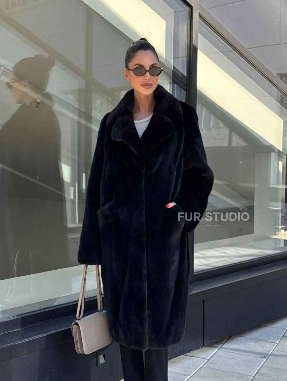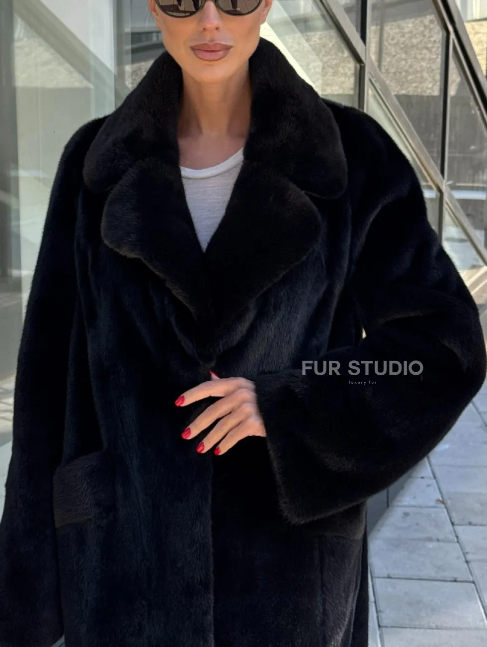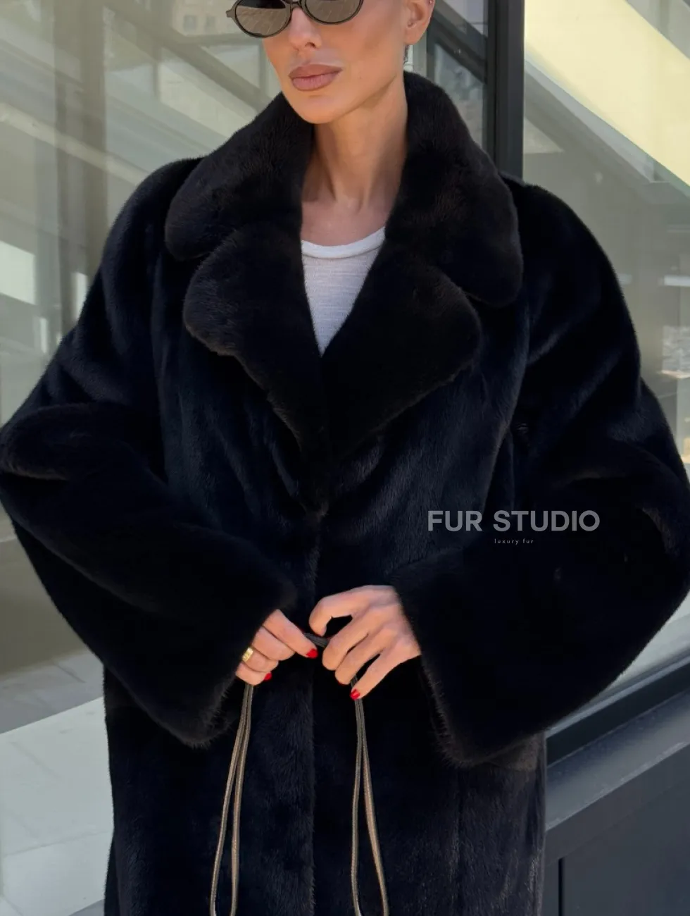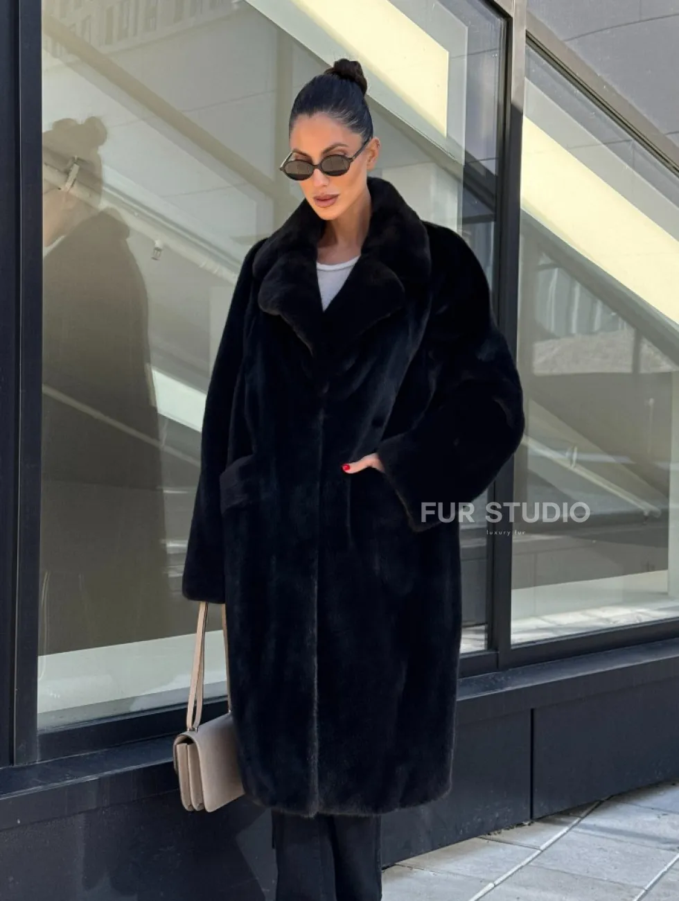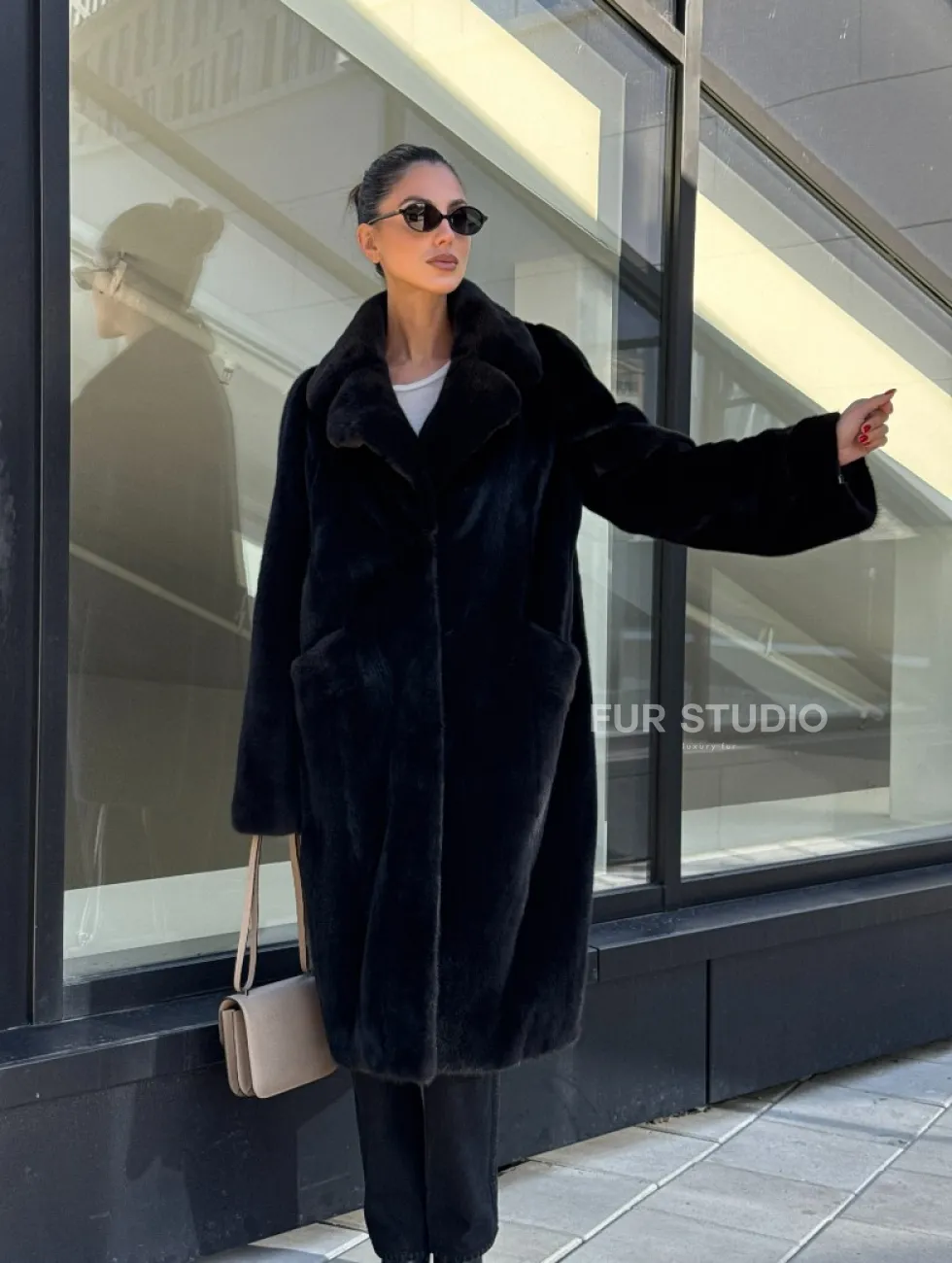 Мех данной шубы аукционная норка, цвет черный. Предлагается в размерах от 42 до 50. Длина модели 105-110 см, что выгодно подчеркивает фигуру девушек. Эта модель идеально подойдет для девушек и женщин, предпочитающих роскошные натуральные меха.