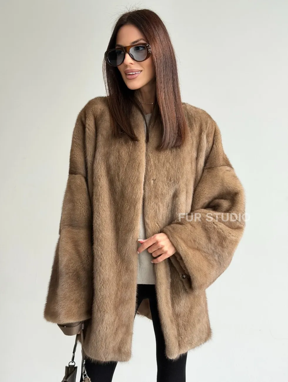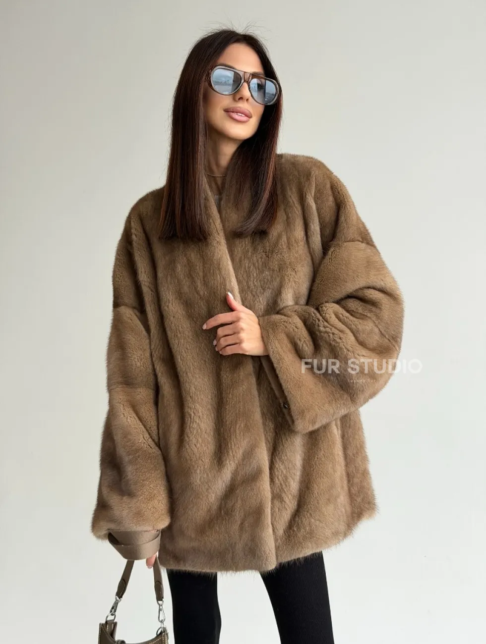 Мех данной шубы аукционная норка , цвет бежевый. Предлагается в размерах от 42 до 52. Длина модели 75-80 см, что выгодно подчеркивает фигуру девушек. Эта модель идеально подойдет для девушек и женщин, предпочитающих роскошные натуральные меха.