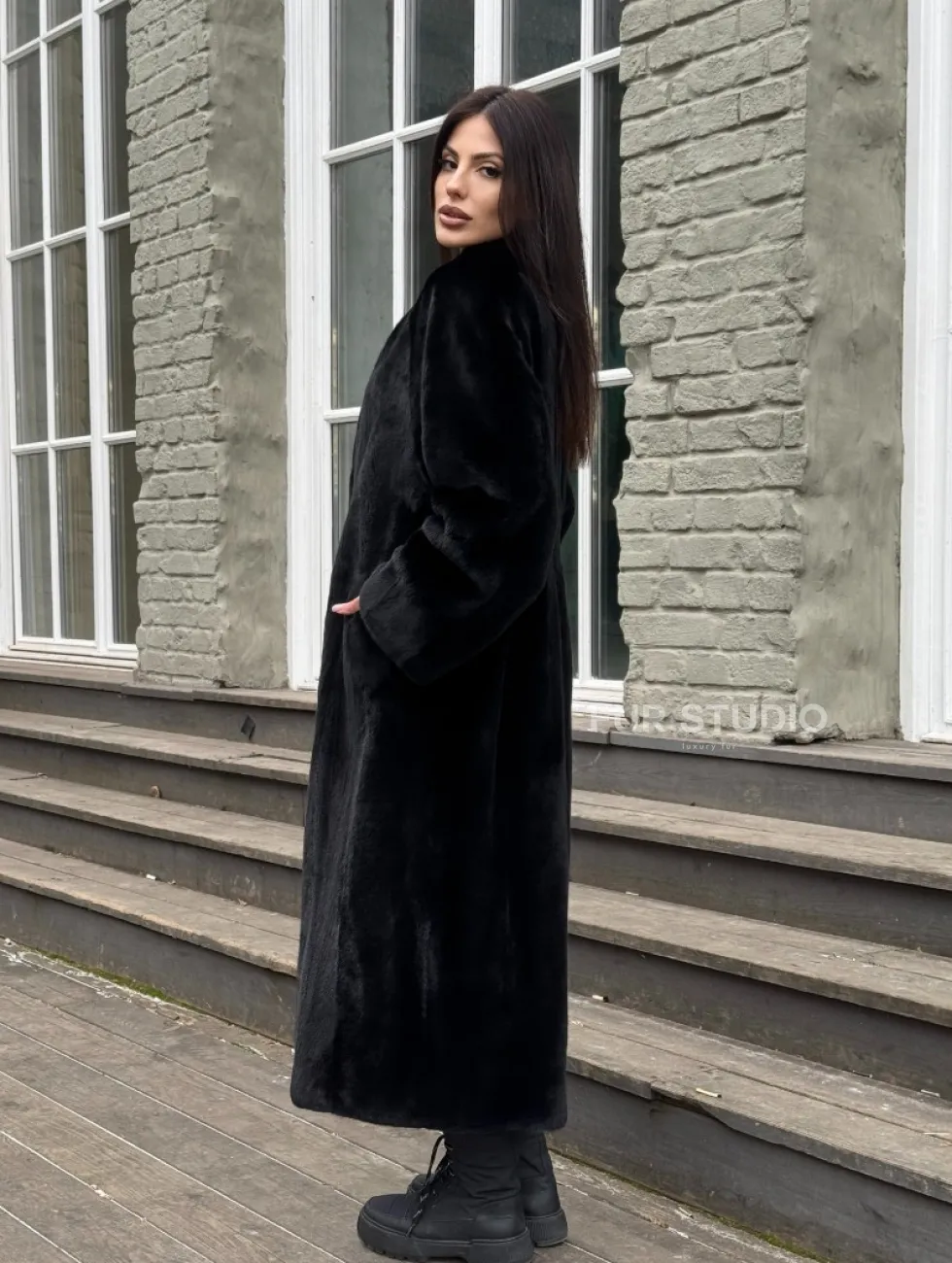 Мех данной шубы скандинавская норка, цвет черный. Предлагается в размерах от 42 до 46 с 48. Длина модели 115-120 см, что выгодно подчеркивает фигуру девушек. Эта модель идеально подойдет для девушек и женщин, предпочитающих роскошные натуральные меха.