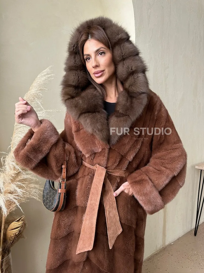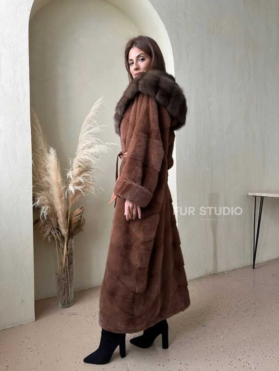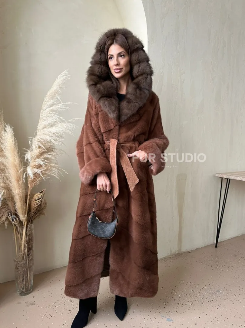 Шуба из аукционной норки с капюшоном из куницы - цвет терракотовый доступна для покупки в нашем шоуруме Furs Studio в Москве. У нас так же есть доставка во все города России. Добавьте немного роскоши в свой гардероб с этой шубой, которая будет служить вам многие годы.