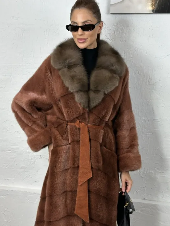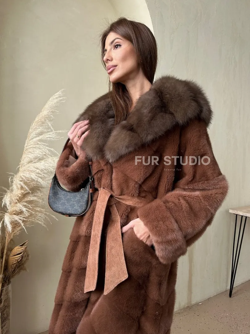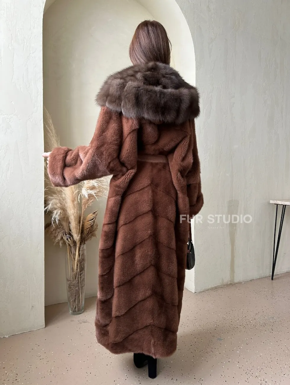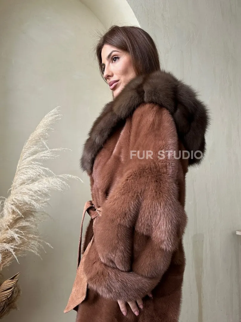 Шуба из аукционной норки с капюшоном из куницы - цвет терракотовый доступна для покупки в нашем шоуруме Furs Studio в Москве. У нас так же есть доставка во все города России. Добавьте немного роскоши в свой гардероб с этой шубой, которая будет служить вам многие годы.