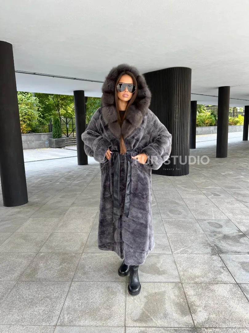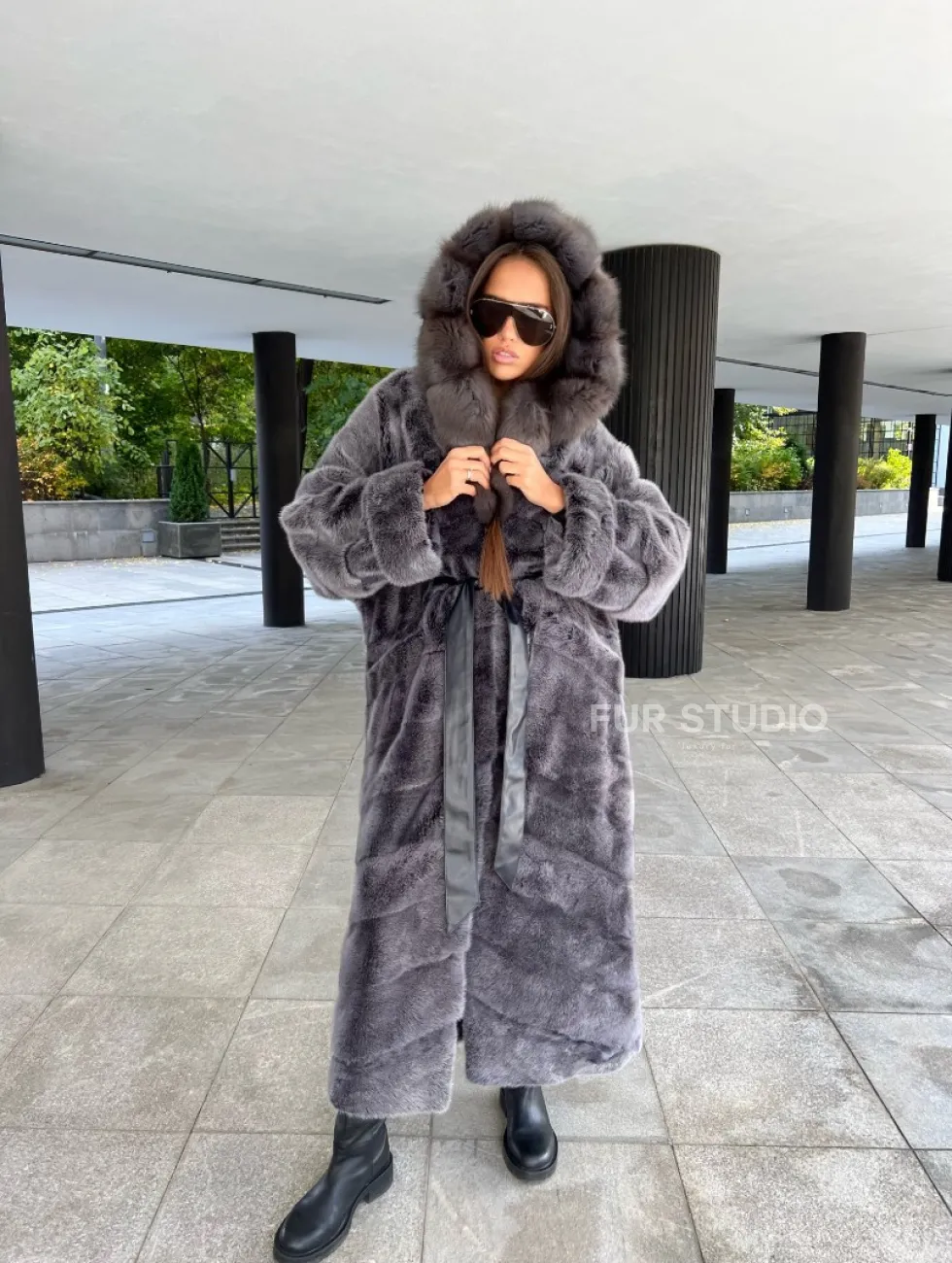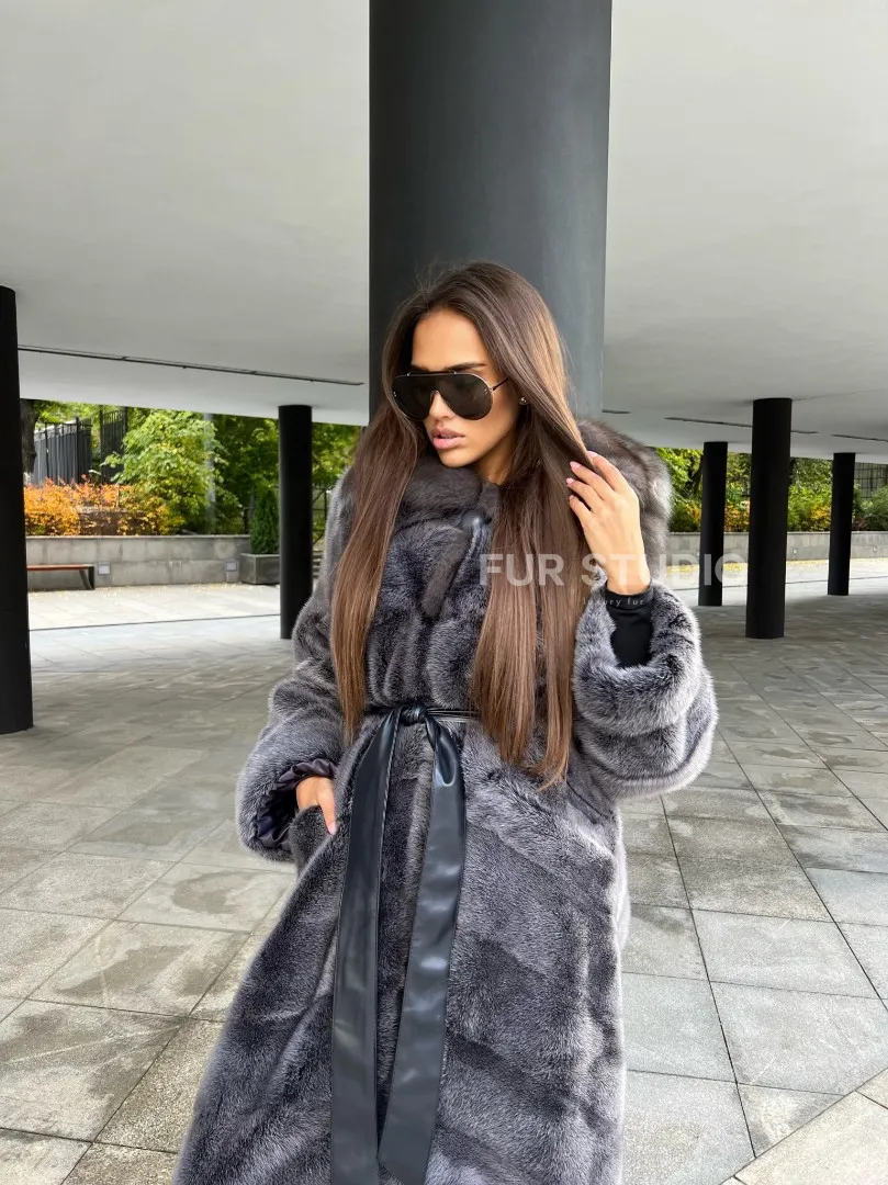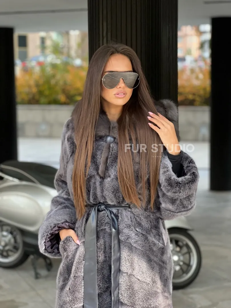 Шуба из аукционной норки с капюшоном в цвете графит – выбор независимых женщин с изысканным вкусом. Норка приятна на ощупь и согреет владелицу в холодную зиму. Роскошный капюшон позаботится о прическе. Необычный цвет подчеркнет роскошный оттенок волос и кожи хозяйки. Оригинальный пояс выделит талию и создаст силуэт «песочные часы».