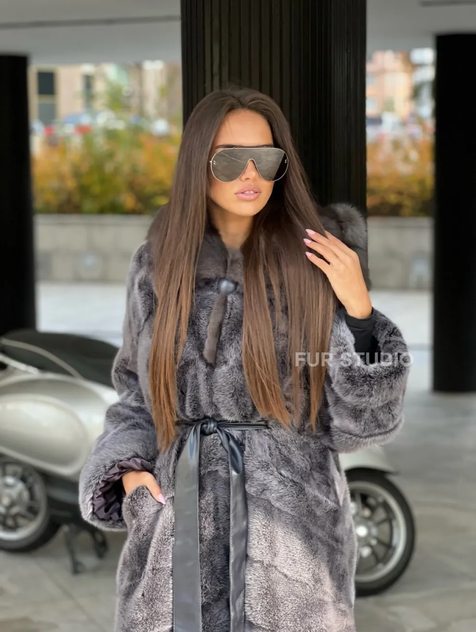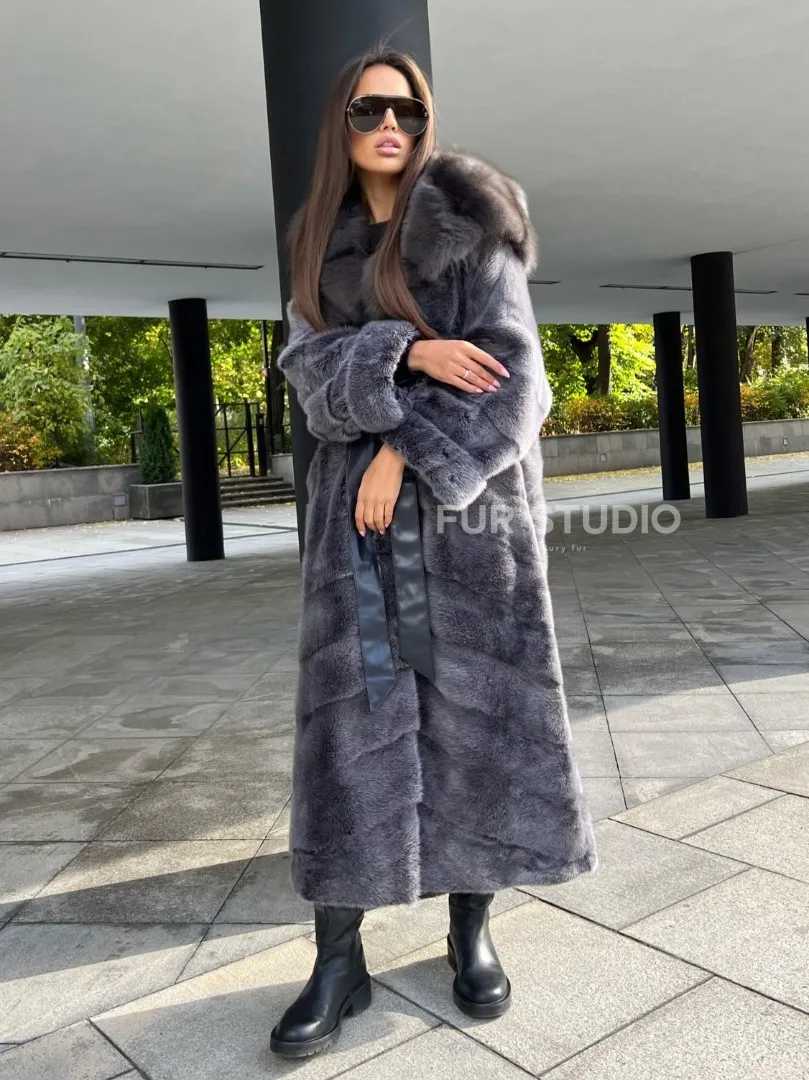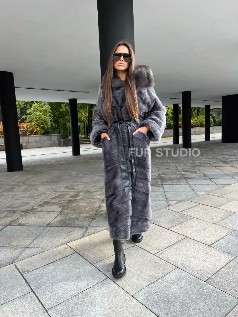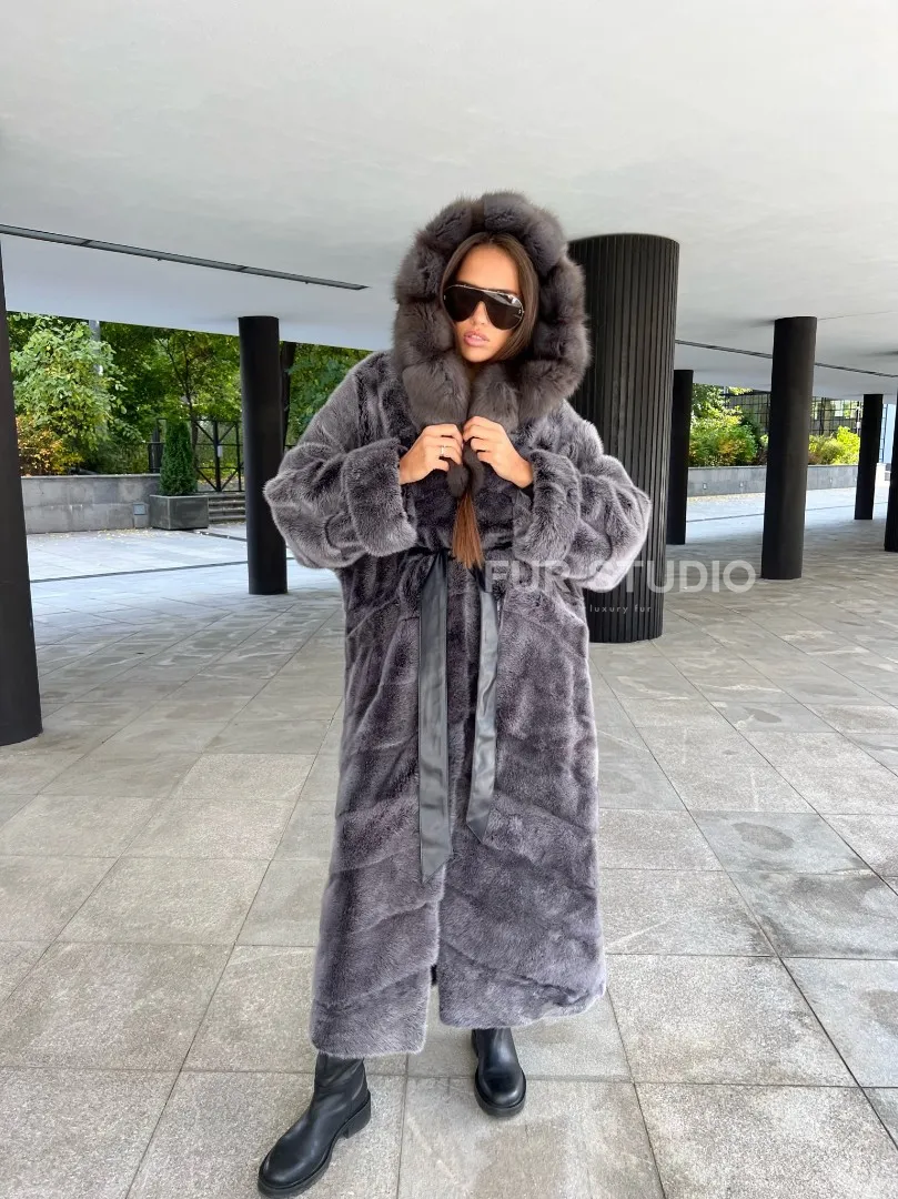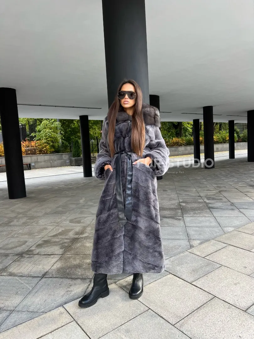 Шуба из аукционной норки с капюшоном в цвете графит – выбор независимых женщин с изысканным вкусом. Норка приятна на ощупь и согреет владелицу в холодную зиму. Роскошный капюшон позаботится о прическе. Необычный цвет подчеркнет роскошный оттенок волос и кожи хозяйки. Оригинальный пояс выделит талию и создаст силуэт «песочные часы».