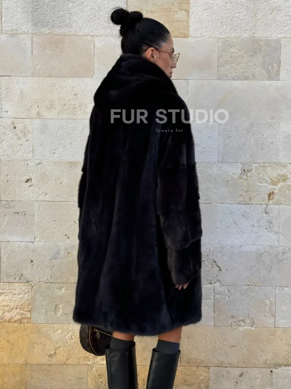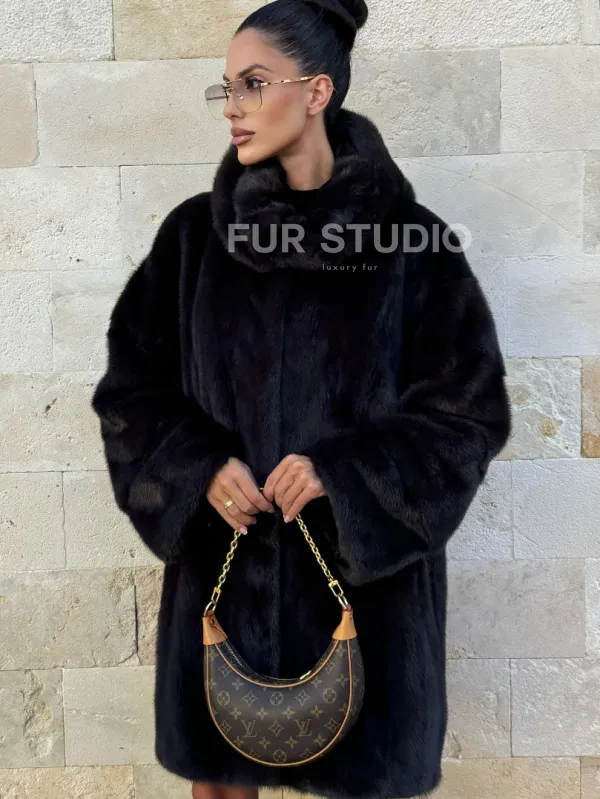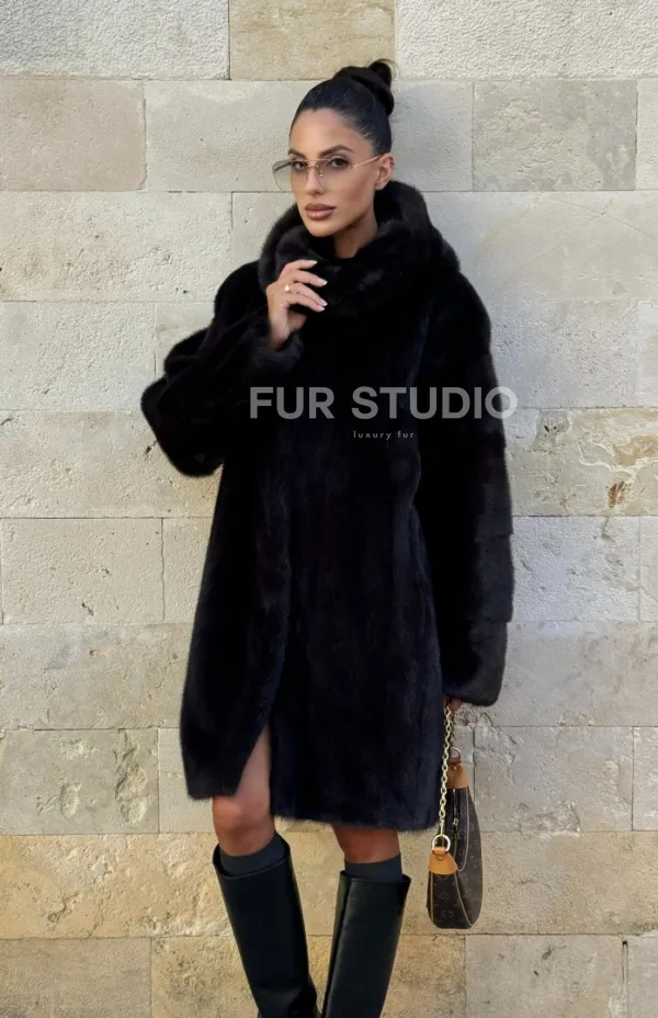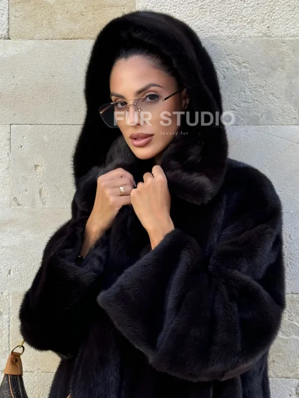 Шуба из аукционной норки с капюшоном роспуск - цвет уголь доступна для покупки в нашем шоуруме Furs Studio в Москве. У нас так же есть доставка во все города России. Добавьте немного роскоши в свой гардероб с этой шубой, которая будет служить вам многие годы.