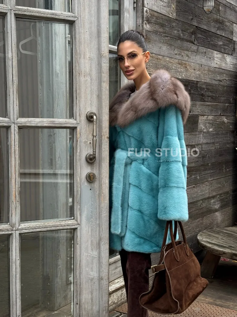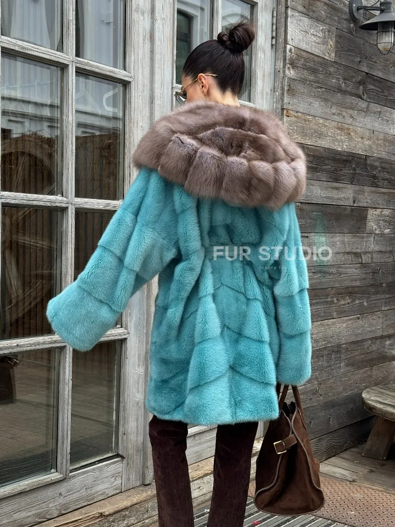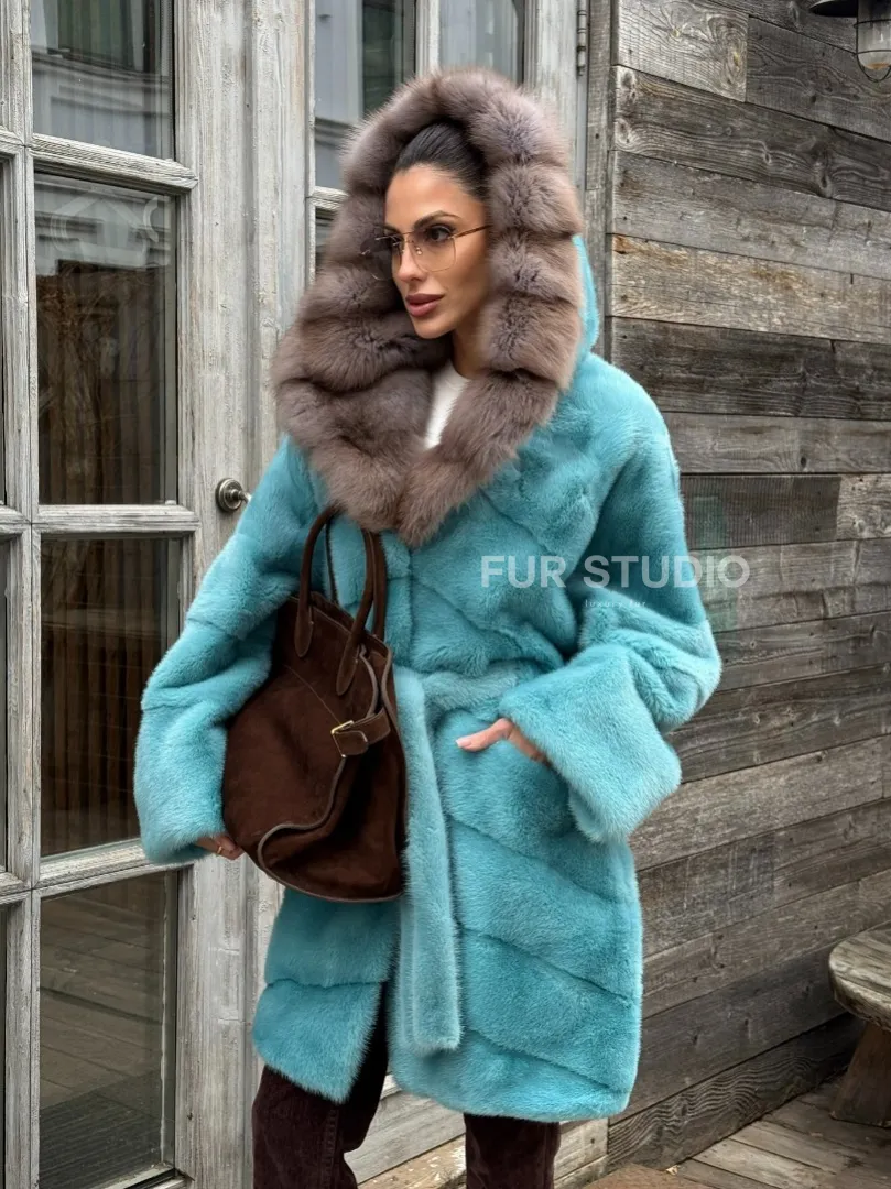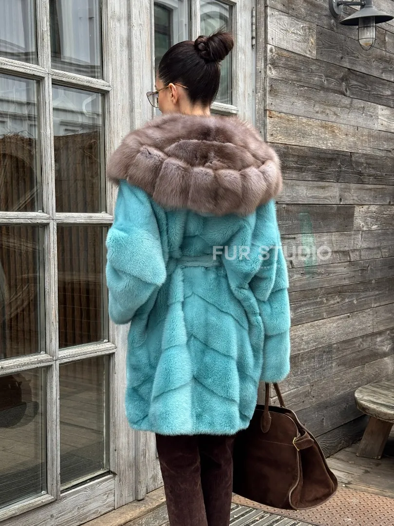 Шуба из аукционной норки средней длины с капюшоном из куницы доступна для покупки в нашем шоуруме Furs Studio в Москве. У нас так же есть доставка во все города России. Добавьте немного роскоши в свой гардероб с этой шубой, которая будет служить вам многие годы.