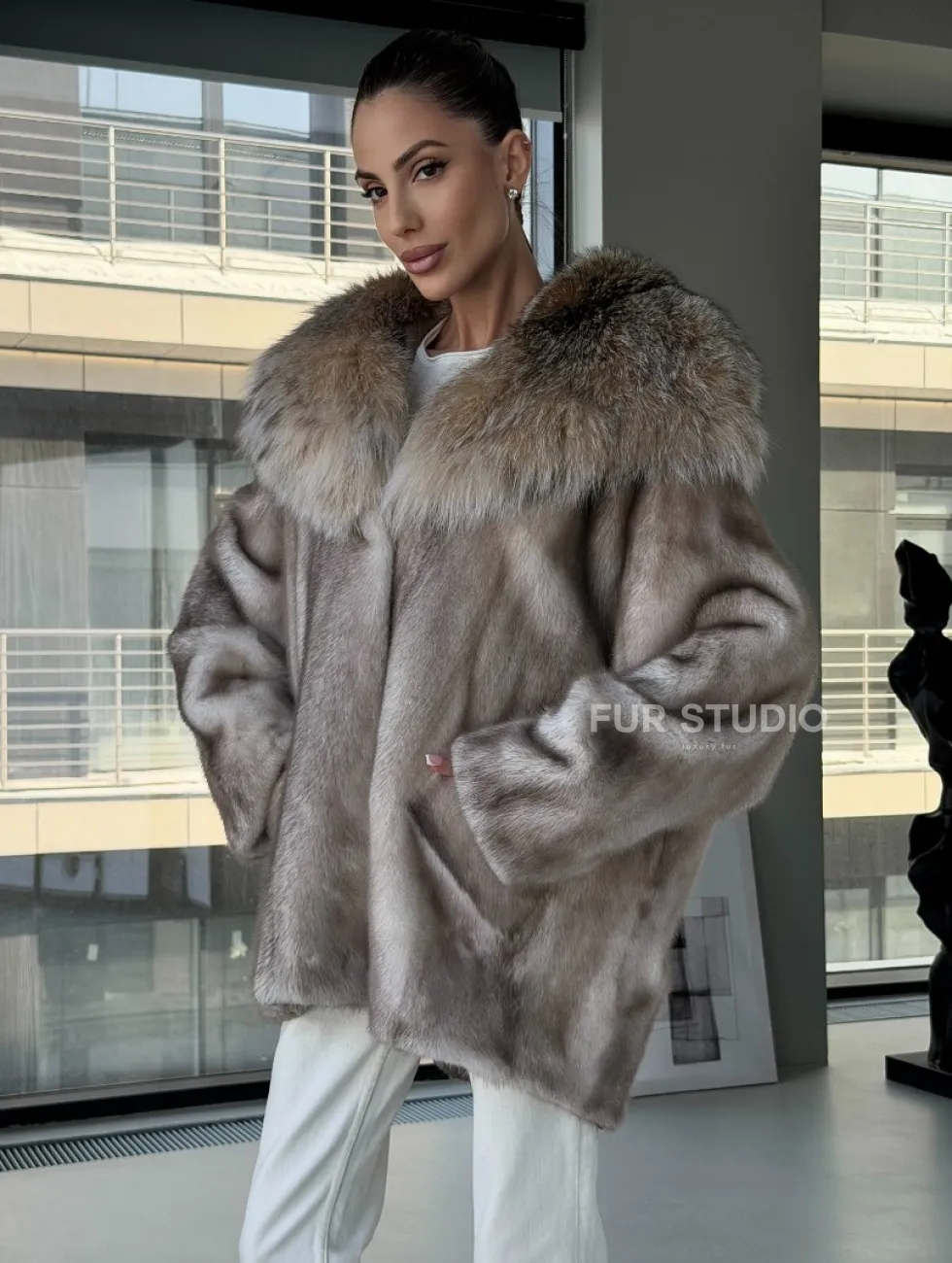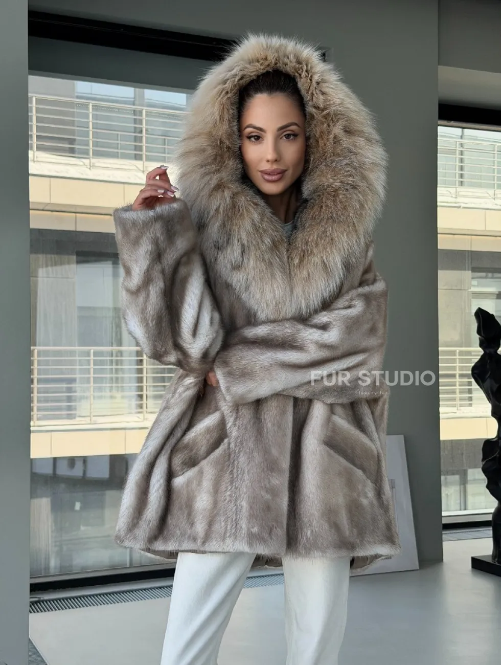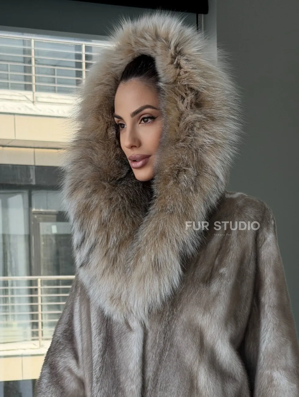 Шуба из аукционной пепельной норки с капюшоном из рыси доступна для покупки в нашем шоуруме Furs Studio в Москве. У нас так же есть доставка во все города России. Добавьте немного роскоши в свой гардероб с этой шубой, которая будет служить вам многие годы.