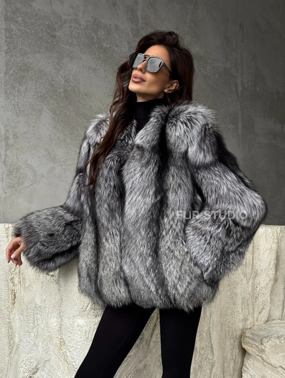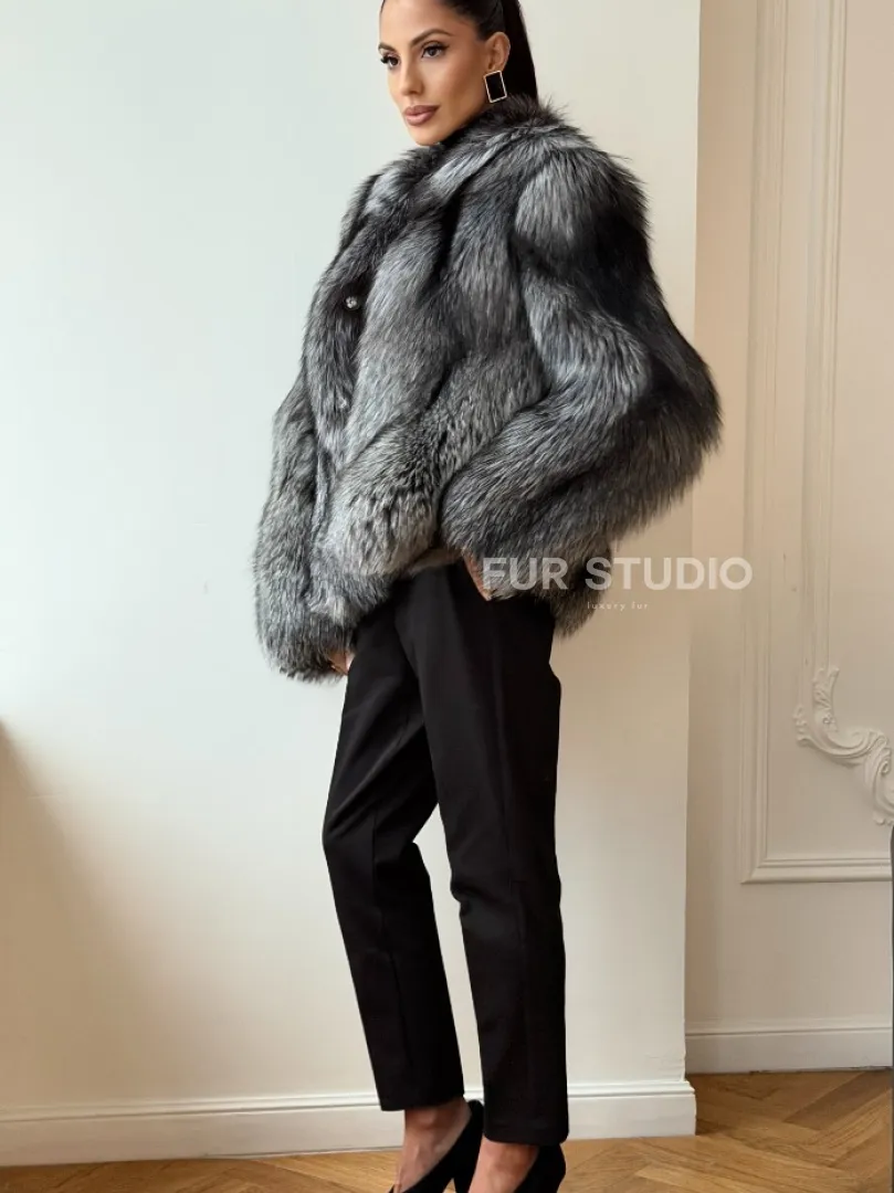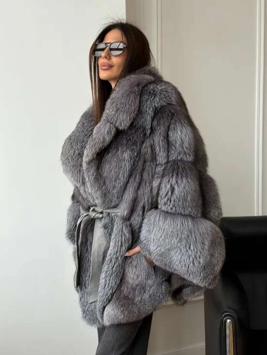 Мех данной шубы лиса, цвет серый. Предлагается в размерах от 42 до 50. Длина модели 60-65 см, что выгодно подчеркивает фигуру девушек. Эта модель идеально подойдет для девушек и женщин, предпочитающих роскошные натуральные меха.