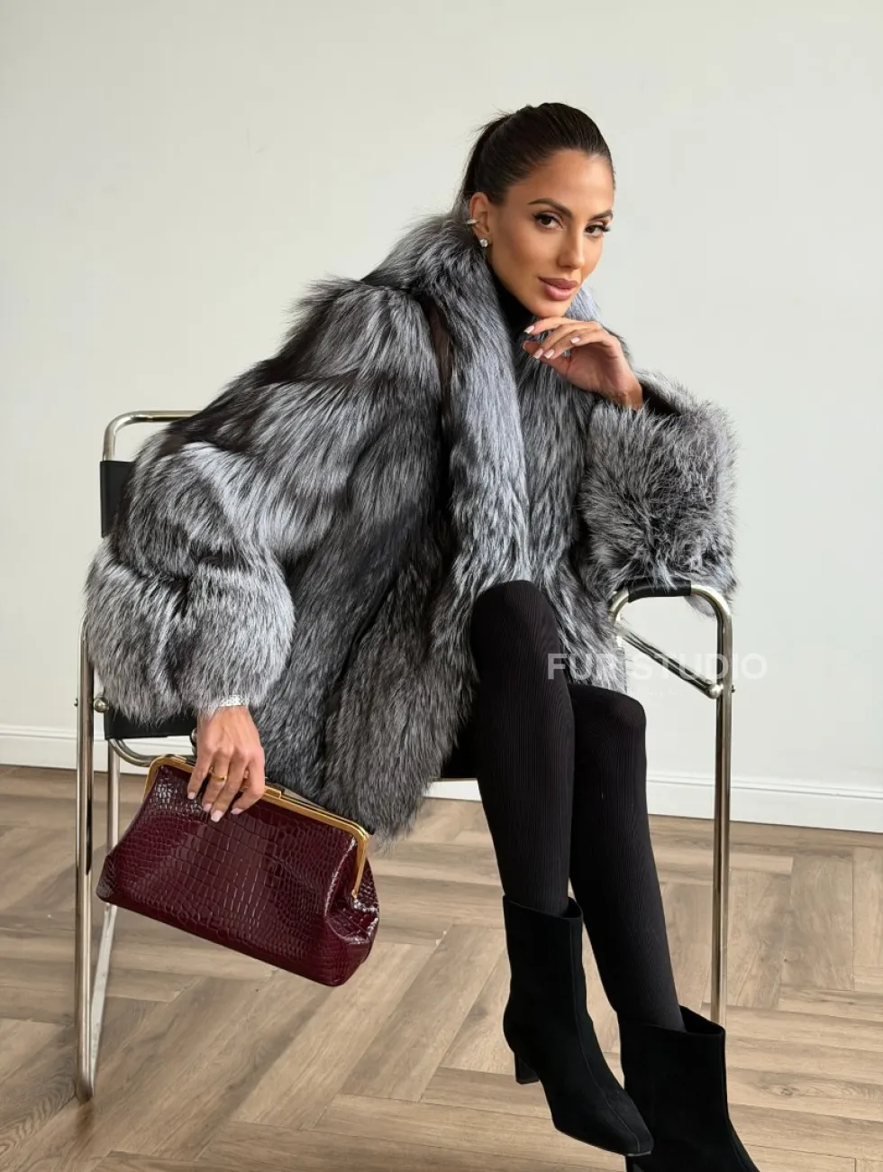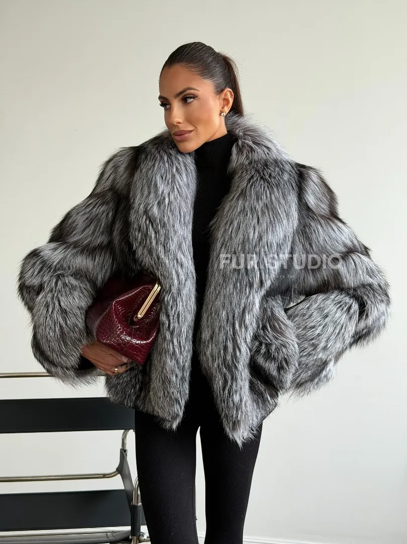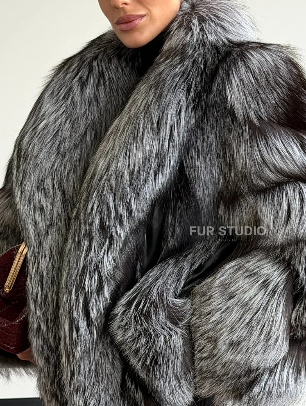 Мех данной шубы лиса, цвет серый. Предлагается в размерах от 42 до 48. Длина модели 55-60 см, что выгодно подчеркивает фигуру девушек. Эта модель идеально подойдет для девушек и женщин, предпочитающих роскошные натуральные меха.