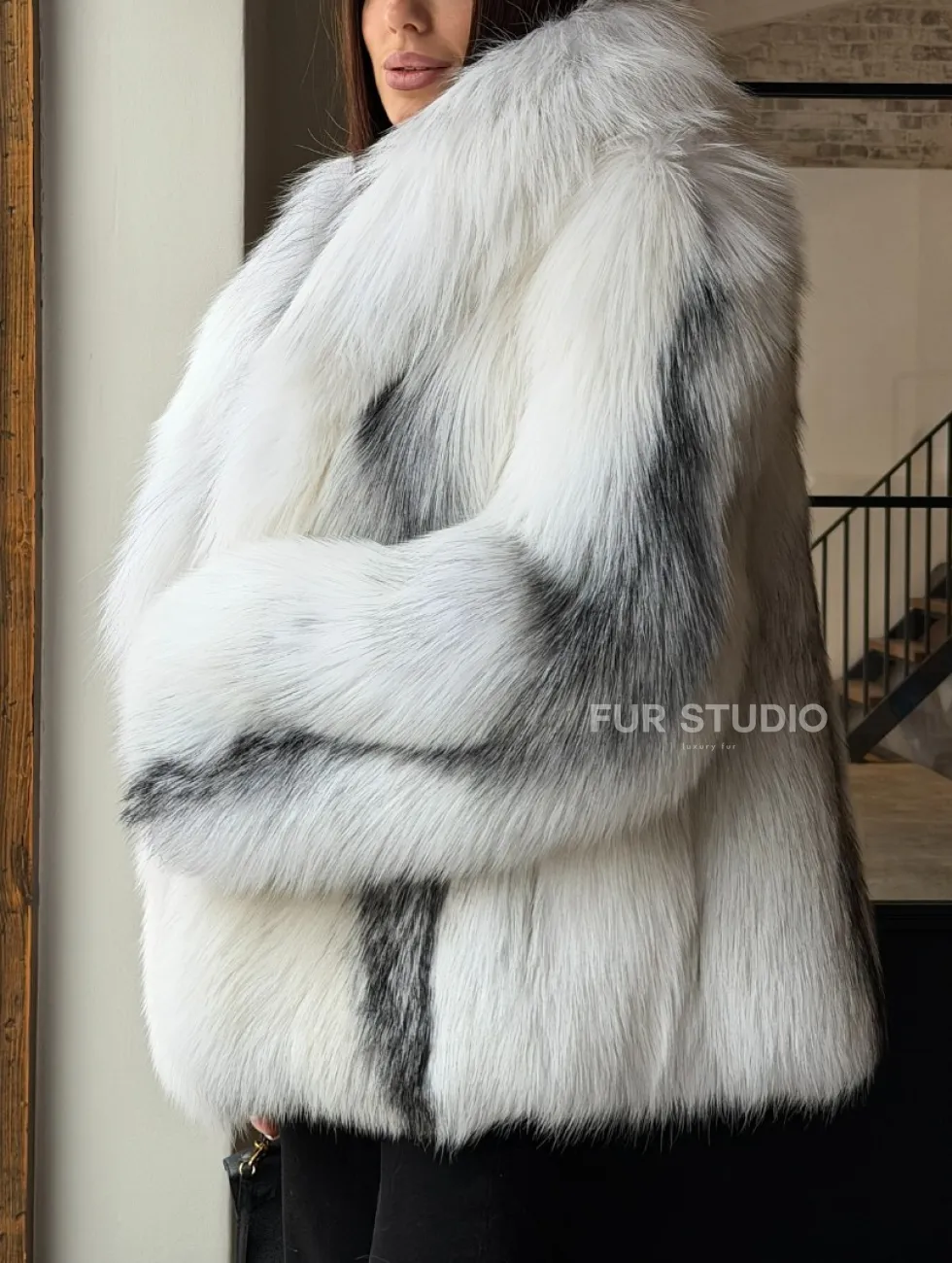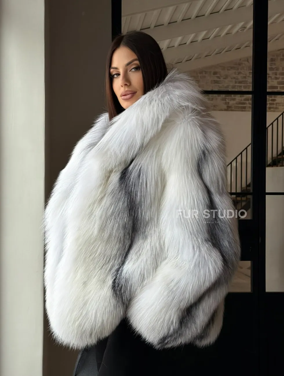 Мех данной шубы лиса, цвет белый. Предлагается в размерах от 40 до 50. Длина модели 70-75 см, что выгодно подчеркивает фигуру девушек. Эта модель идеально подойдет для девушек и женщин, предпочитающих роскошные натуральные меха.