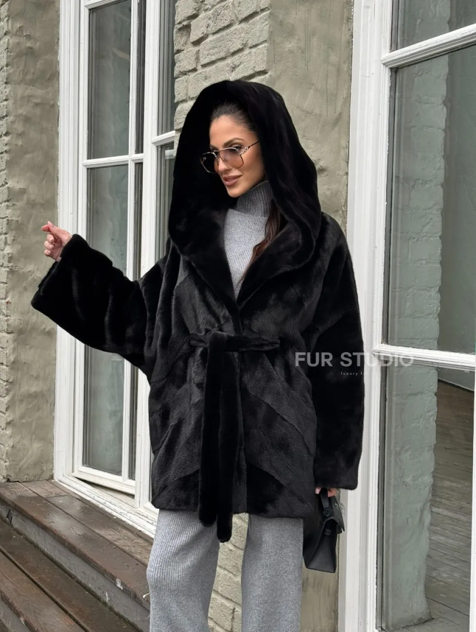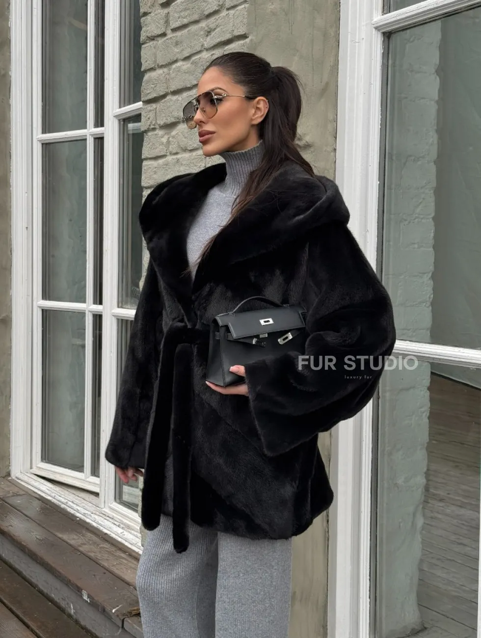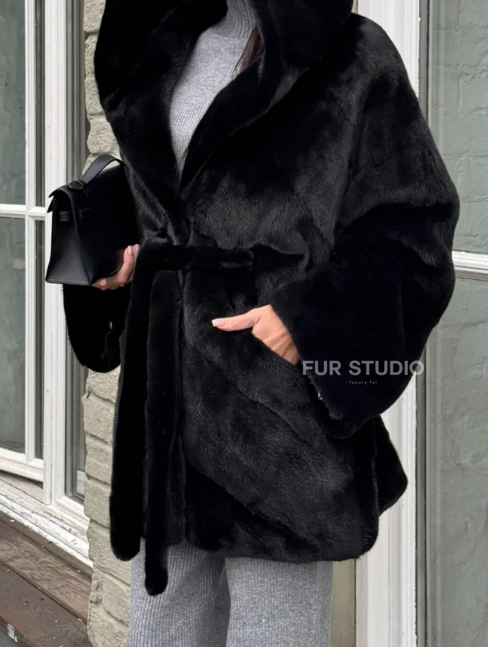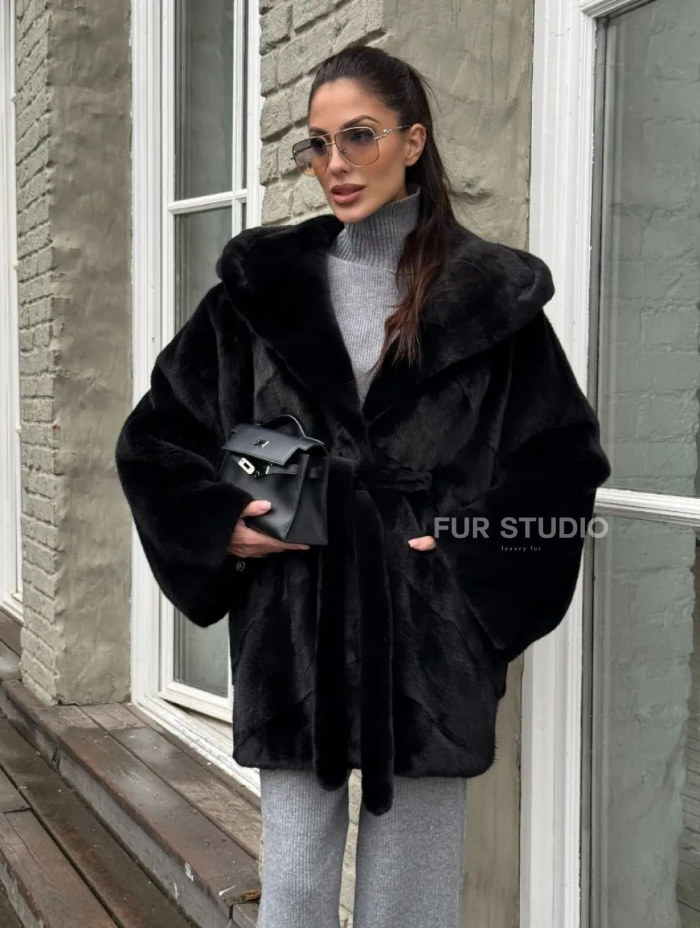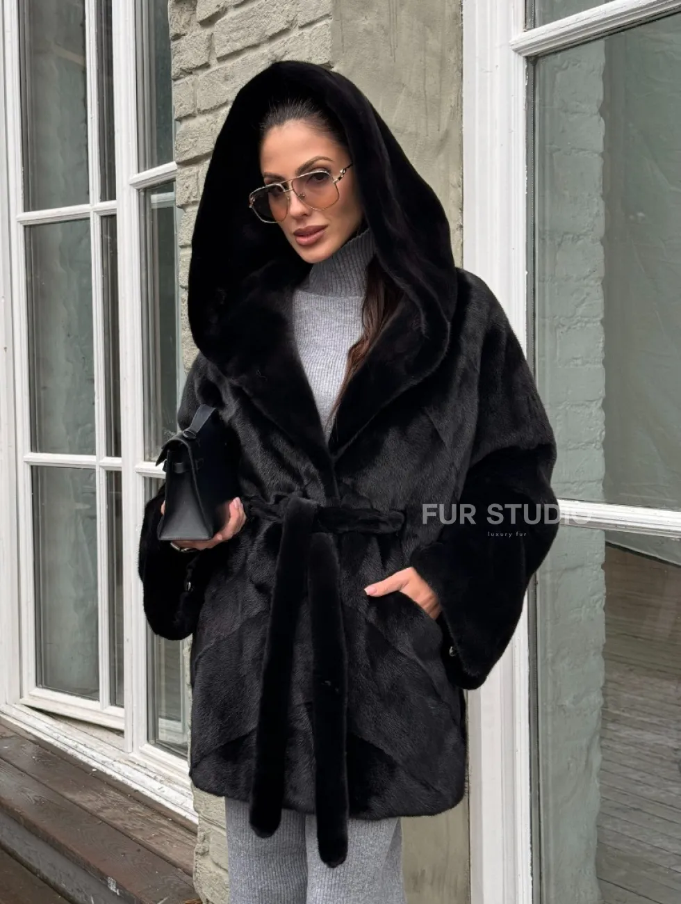 Шуба из канадской норки с капюшоном кобра, фасон летучая мышь доступна для покупки в нашем шоуруме Furs Studio в Москве. У нас так же есть доставка во все города России. Добавьте немного роскоши в свой гардероб с этой шубой, которая будет служить вам многие годы.