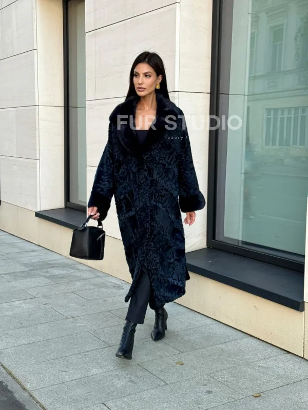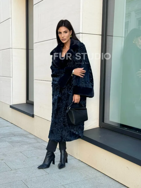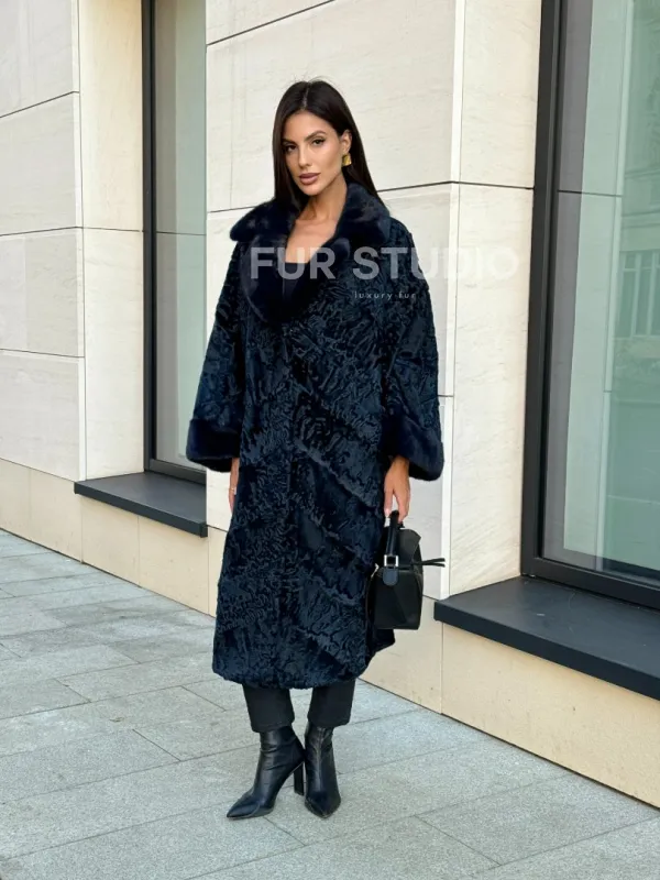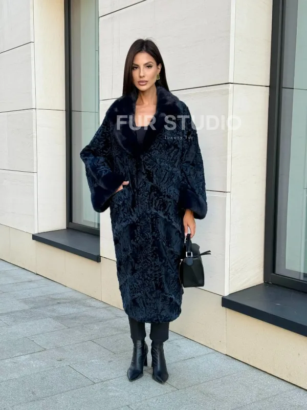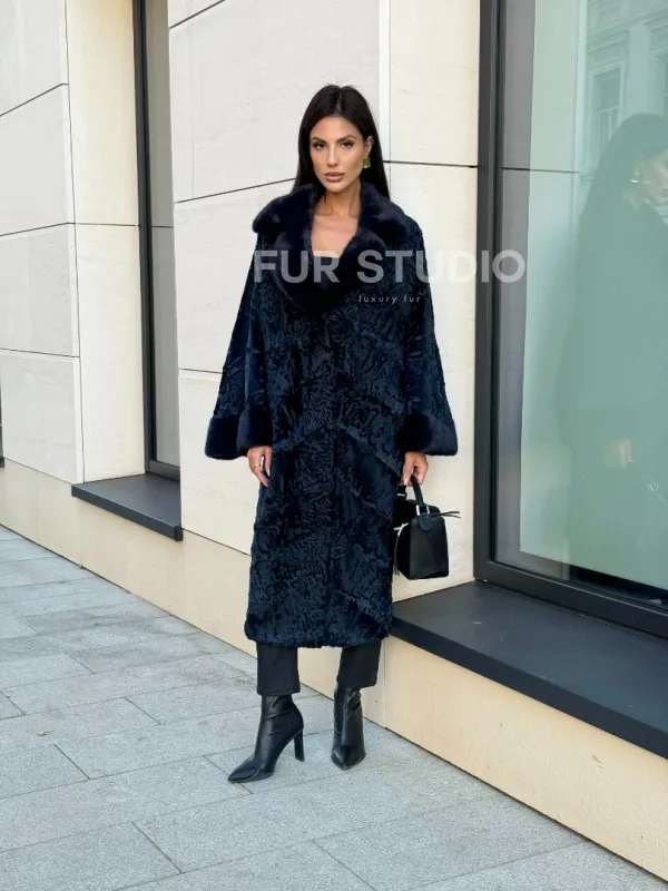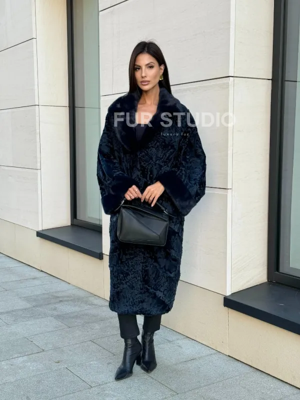 Шуба из каракуля Indigo Blue с отделкой из меха норки, фасон кокон доступна для покупки в нашем шоуруме Furs Studio в Москве. У нас так же есть доставка во все города России. Добавьте немного роскоши в свой гардероб с этой шубой, которая будет служить вам многие годы.