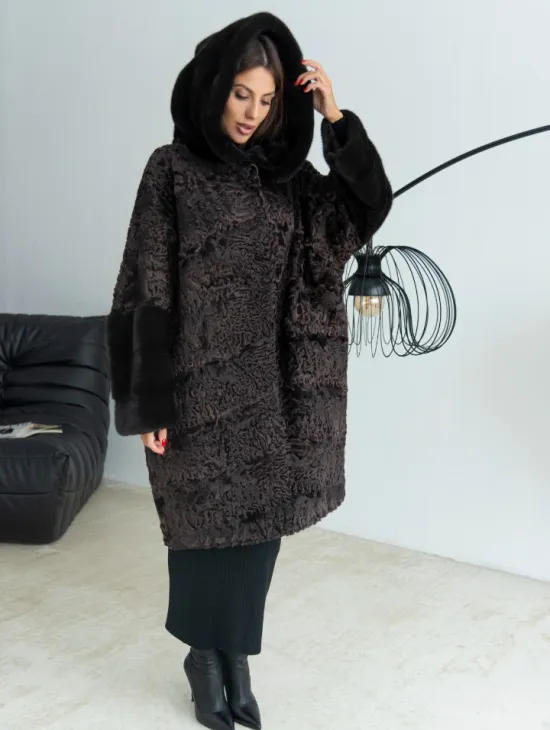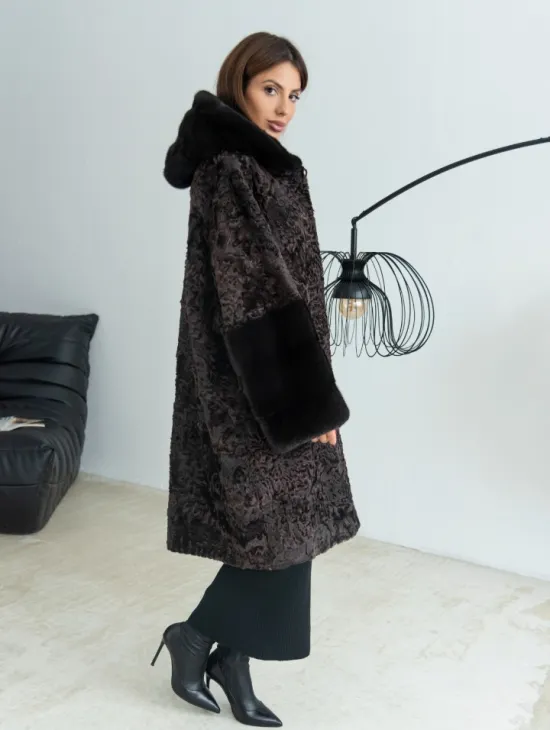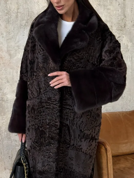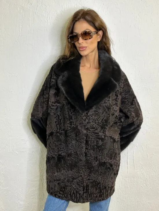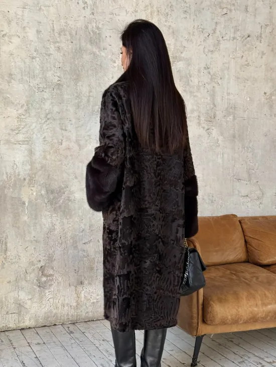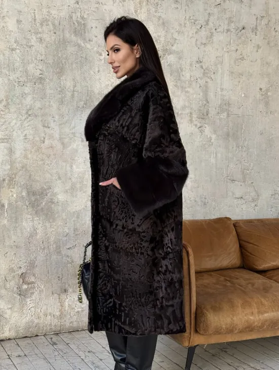 Шуба из каракульчи с отделкой из меха норки доступна для покупки в нашем шоуруме Furs Studio в Москве. У нас так же есть доставка во все города России. Добавьте немного роскоши в свой гардероб с этой шубой, которая будет служить вам многие годы.