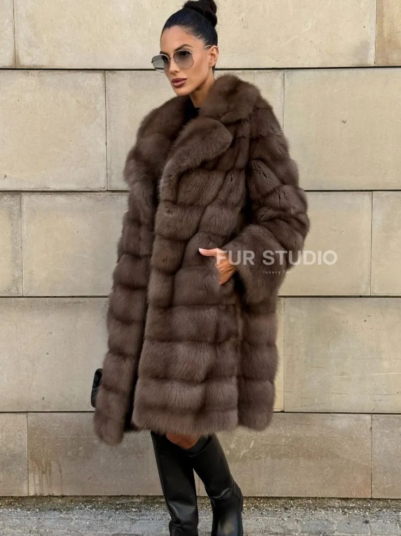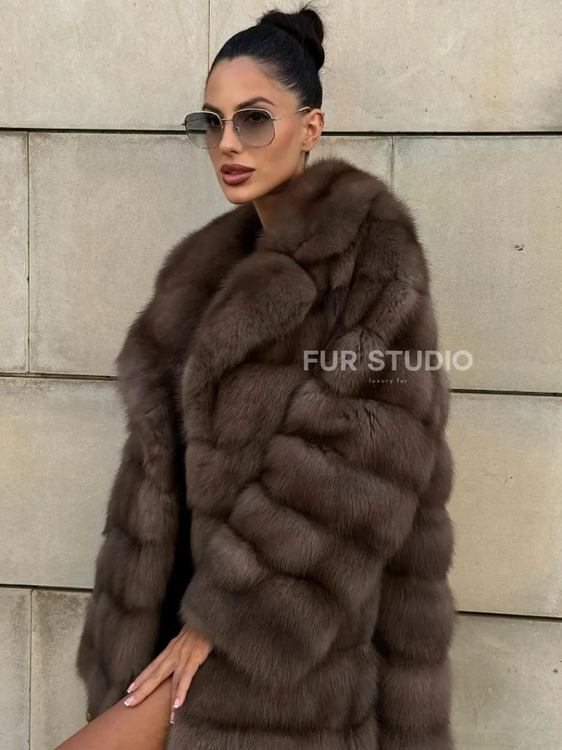 Шуба из куницы в цвете Tartufo английский воротник доступна для покупки в нашем шоуруме Furs Studio в Москве. У нас так же есть доставка во все города России. Добавьте немного роскоши в свой гардероб с этой шубой, которая будет служить вам многие годы.