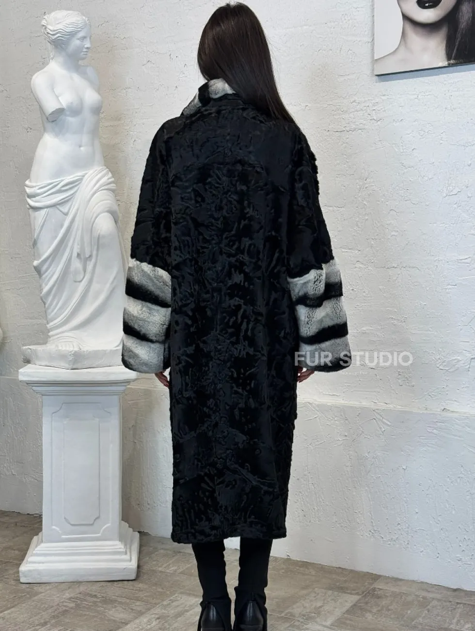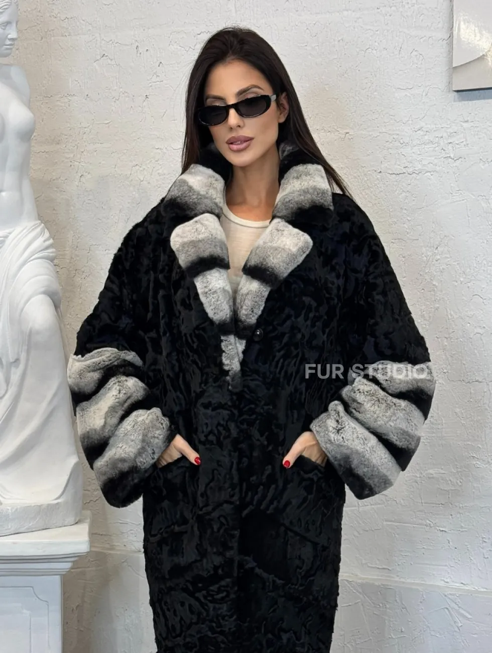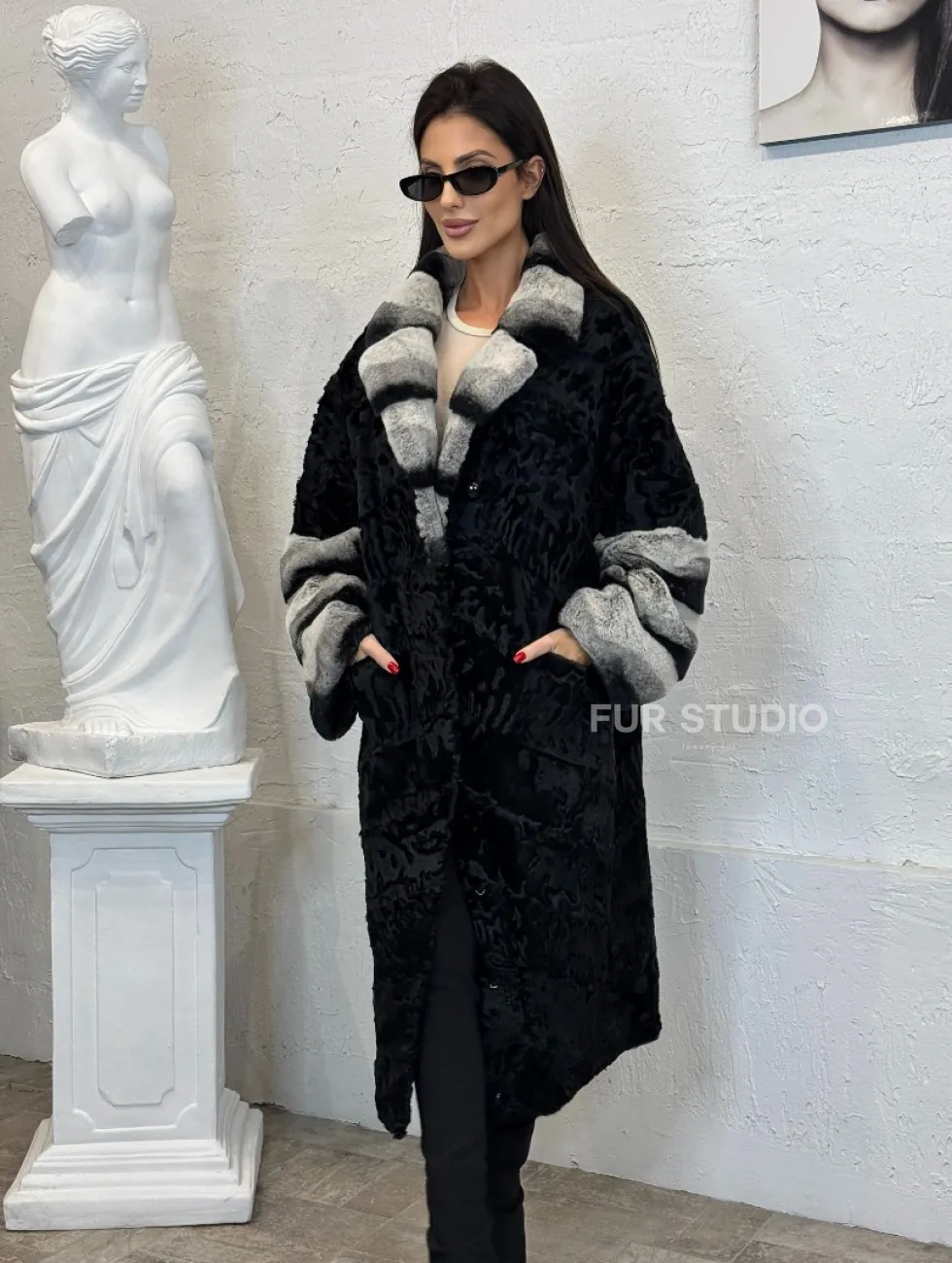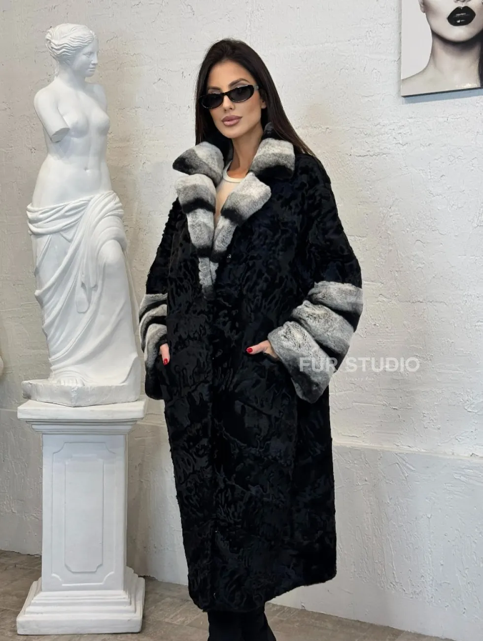 Шуба из меха афганского каракуля с отделкой из щипаной норки под шиншиллу доступна для покупки в нашем шоуруме Furs Studio в Москве. У нас так же есть доставка во все города России. Добавьте немного роскоши в свой гардероб с этой шубой, которая будет служить вам многие годы.