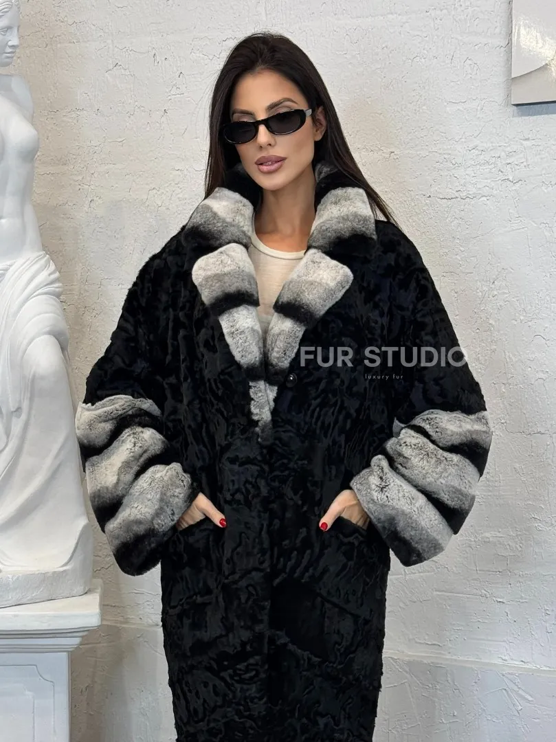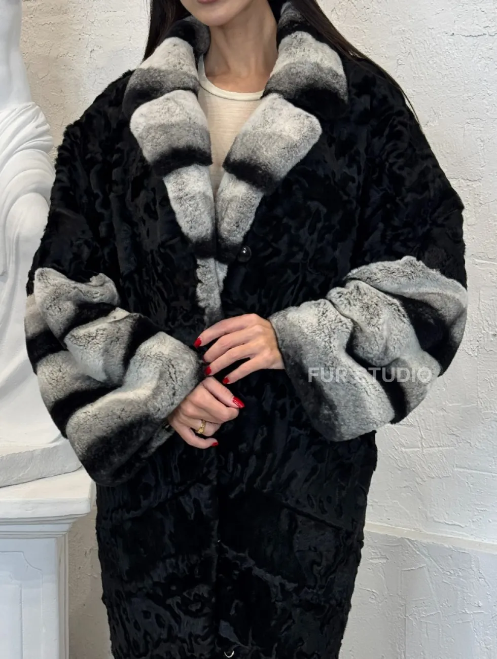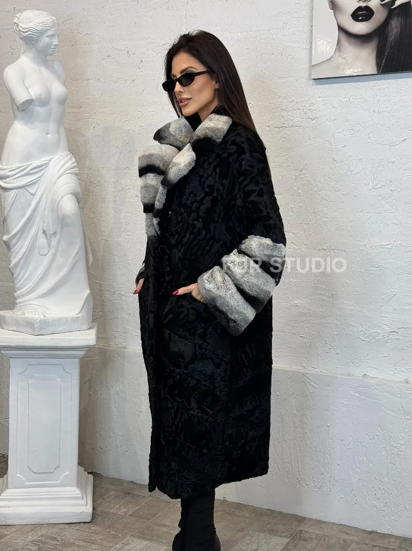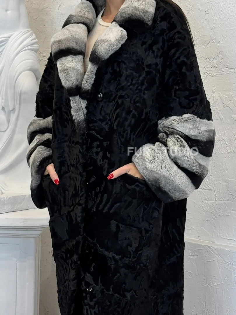 Шуба из меха афганского каракуля с отделкой из щипаной норки под шиншиллу доступна для покупки в нашем шоуруме Furs Studio в Москве. У нас так же есть доставка во все города России. Добавьте немного роскоши в свой гардероб с этой шубой, которая будет служить вам многие годы.