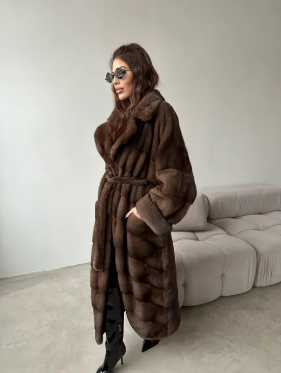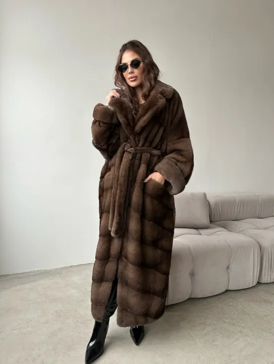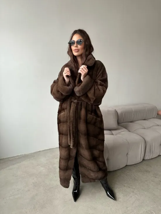 Пояс из кожи выделит талию, делая ее тонкой и изящной. Длина оптимальна и подойдет под любой гардероб. Верхняя одежда сочетается с базовым lookом и вечерним нарядом. Купить шубу из меха аукционной норки с капюшоном из меха куницы могут женщины, которые любят выглядеть безупречно в любое время года.