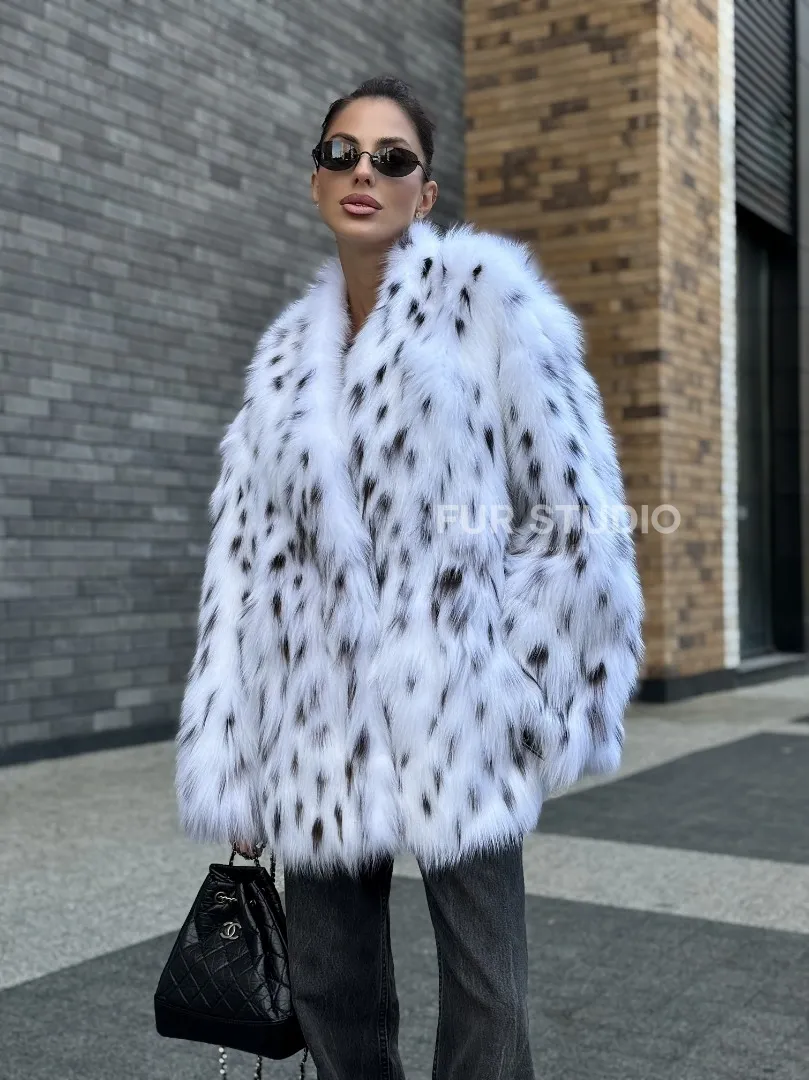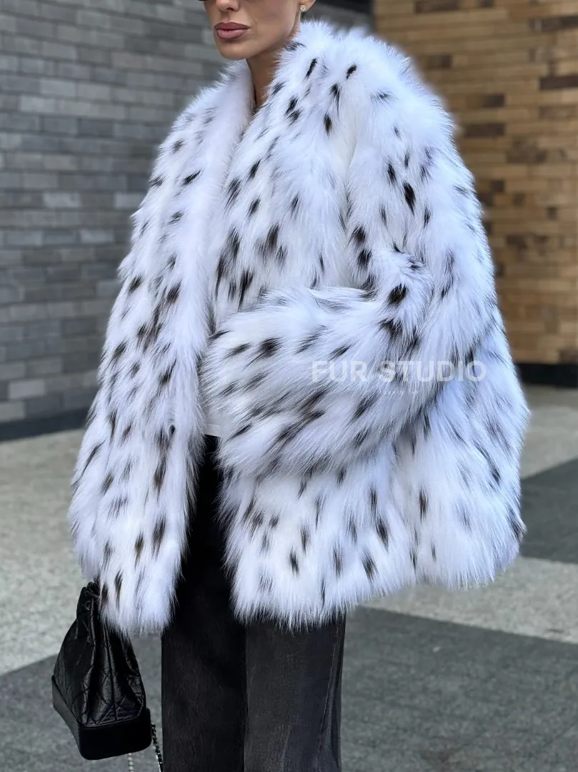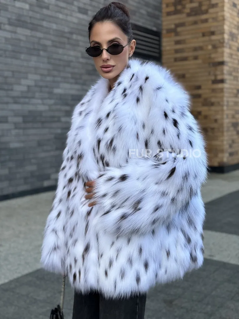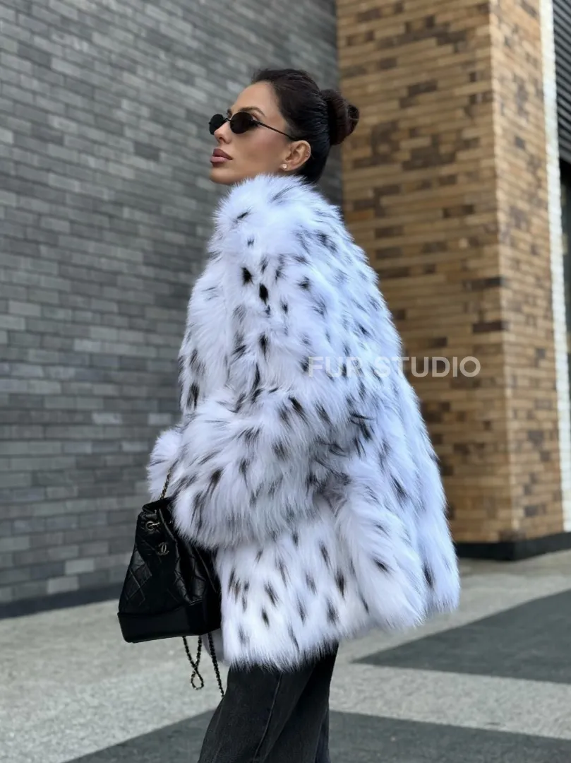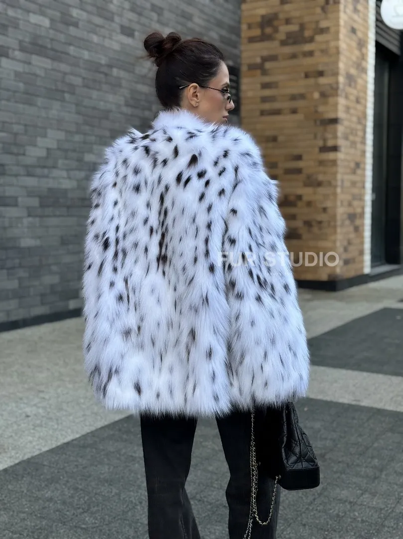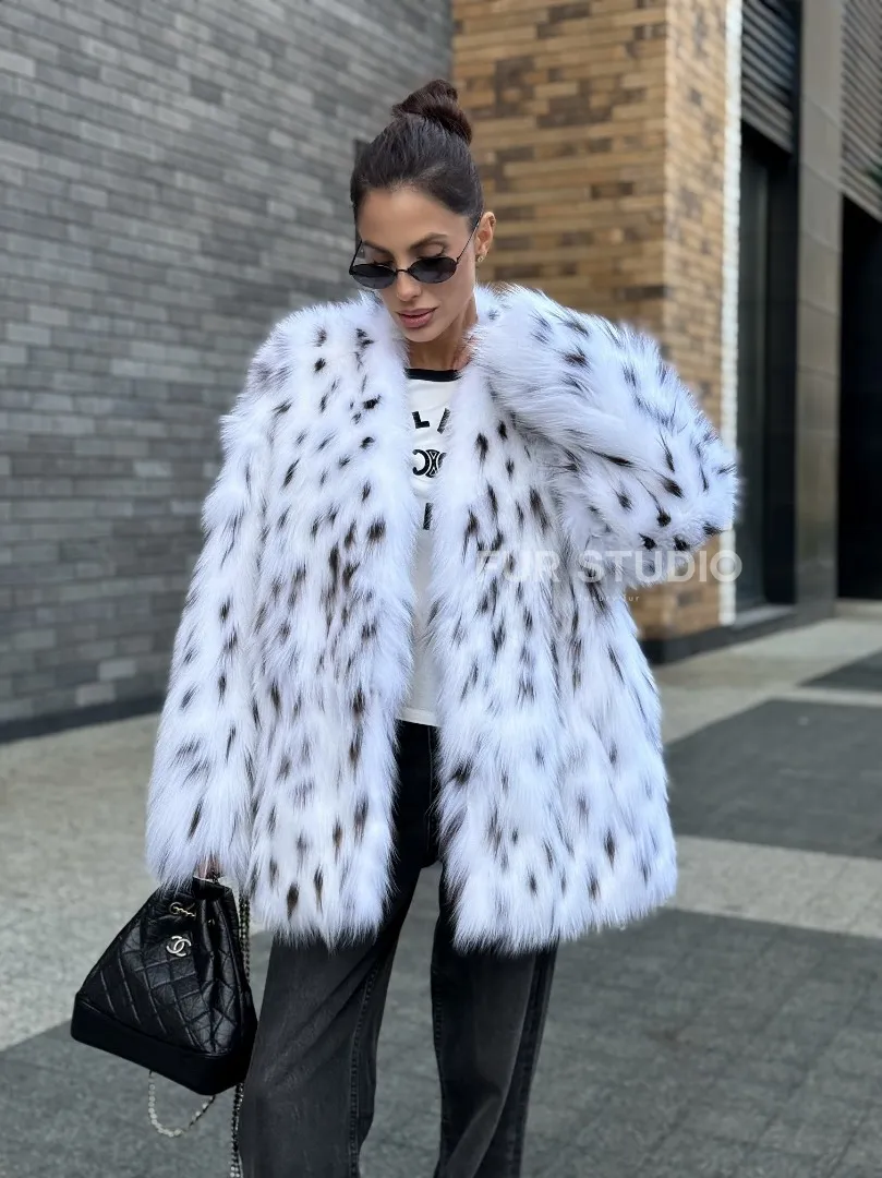 Шуба из меха белой аукционной лисы под рысь, ручная работа доступна для покупки в нашем шоуруме Furs Studio в Москве. У нас так же есть доставка во все города России. Добавьте немного роскоши в свой гардероб с этой шубой, которая будет служить вам многие годы.