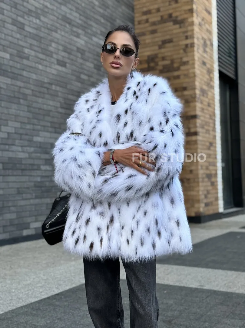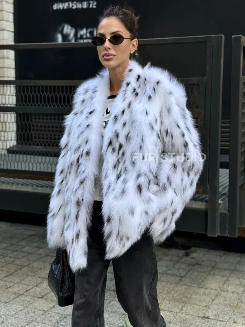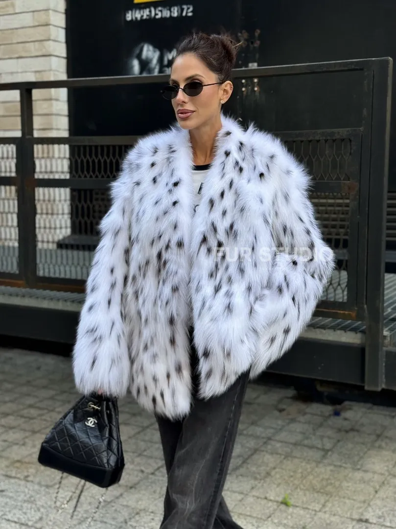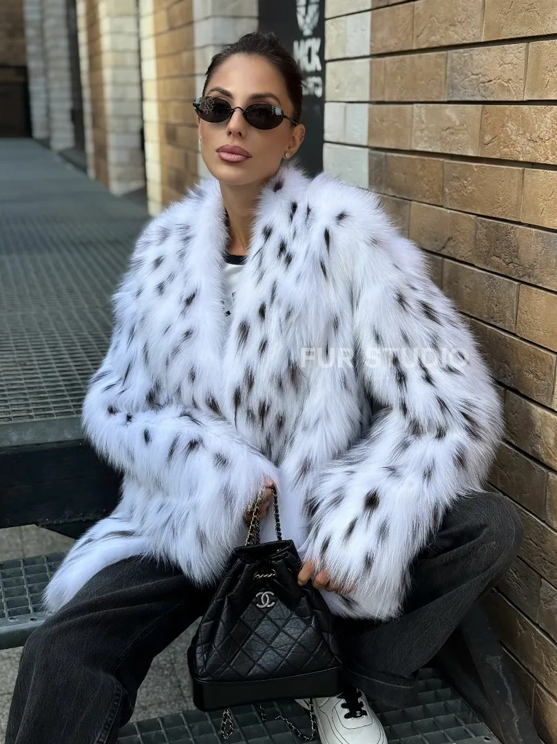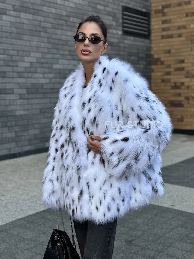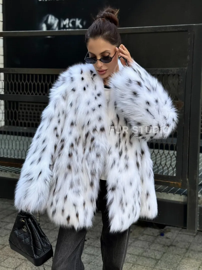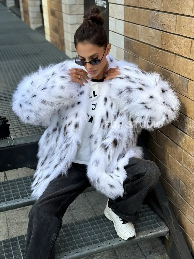 Шуба из меха белой аукционной лисы под рысь, ручная работа доступна для покупки в нашем шоуруме Furs Studio в Москве. У нас так же есть доставка во все города России. Добавьте немного роскоши в свой гардероб с этой шубой, которая будет служить вам многие годы.