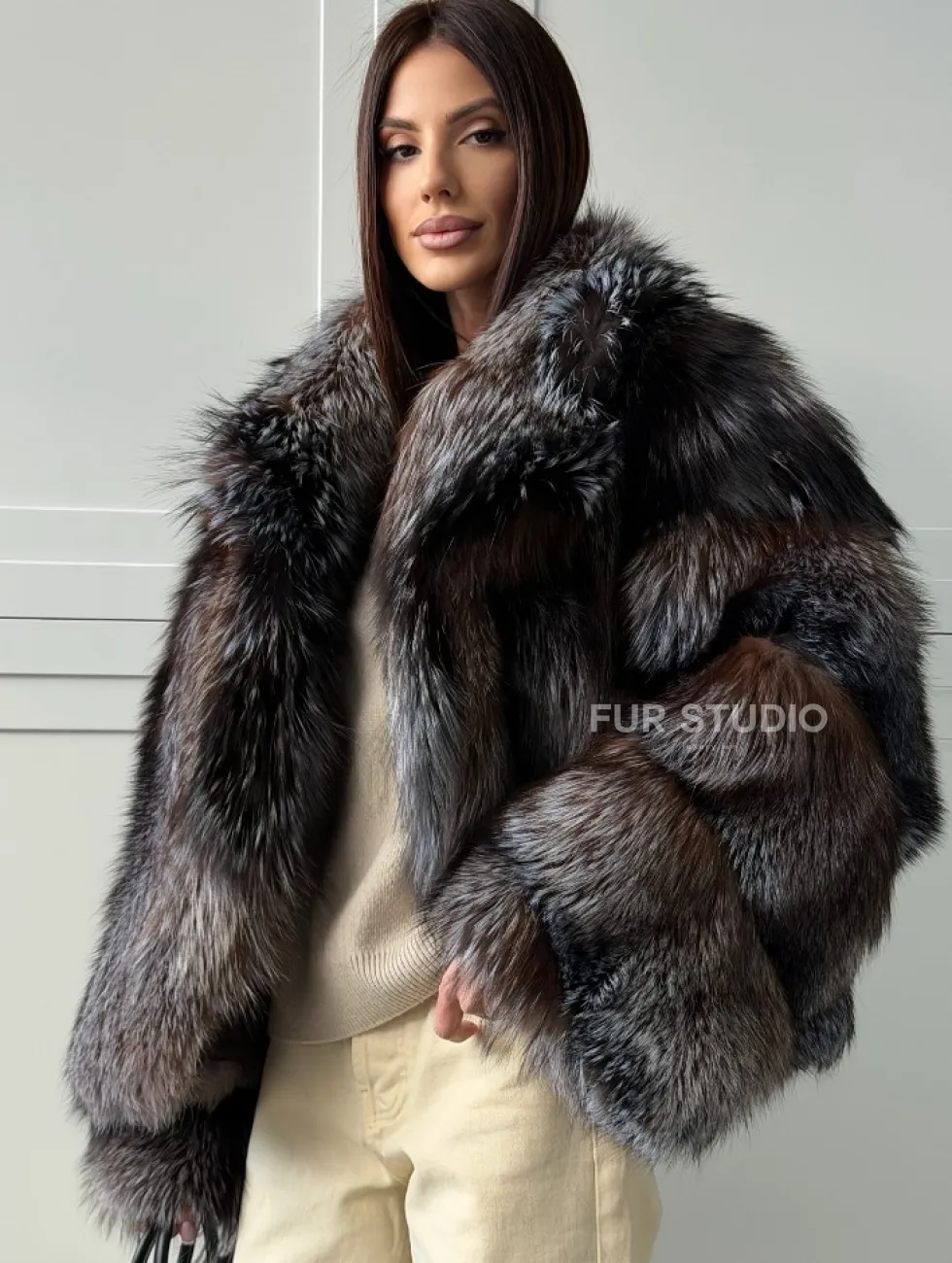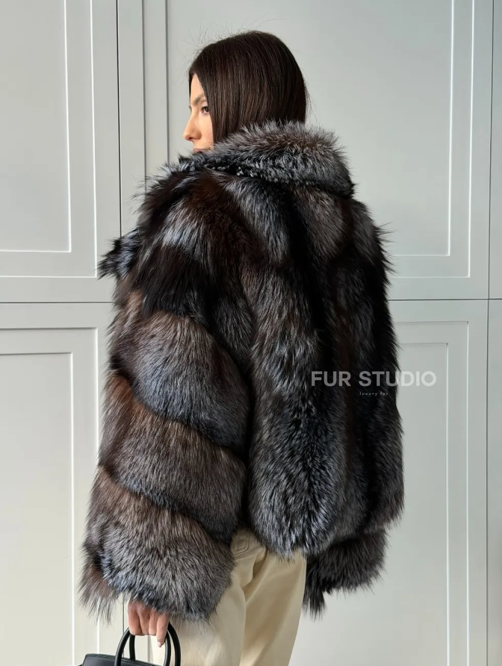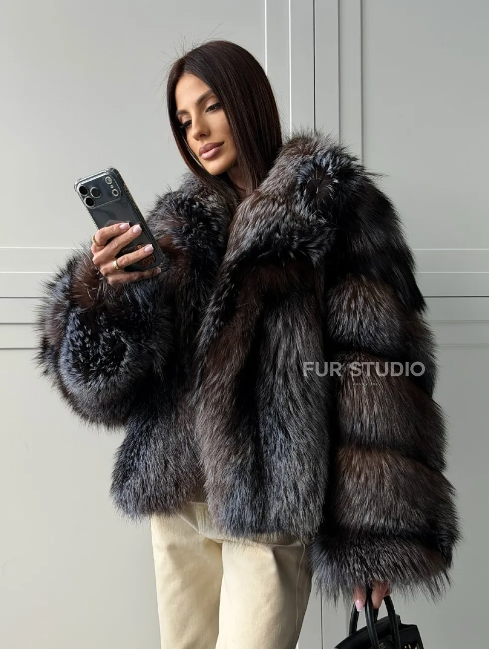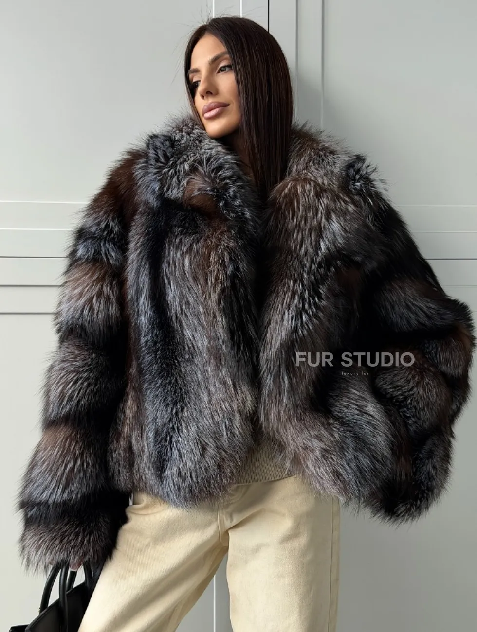 Мех данной шубы лиса, цвет серый. Предлагается в размерах от 40 до 48. Длина модели 55-60 см, что выгодно подчеркивает фигуру девушек. Эта модель идеально подойдет для девушек и женщин, предпочитающих роскошные натуральные меха.