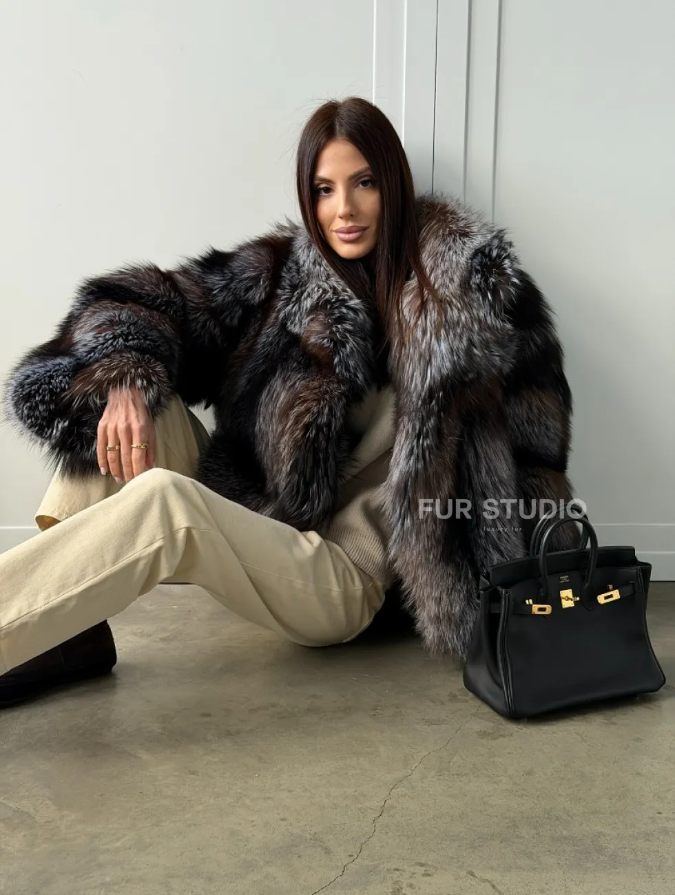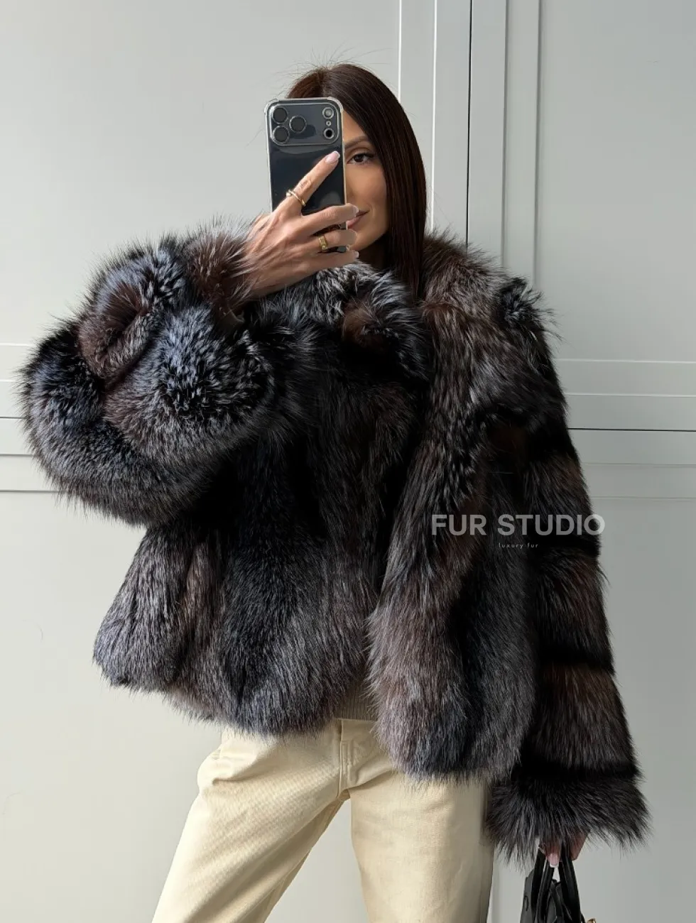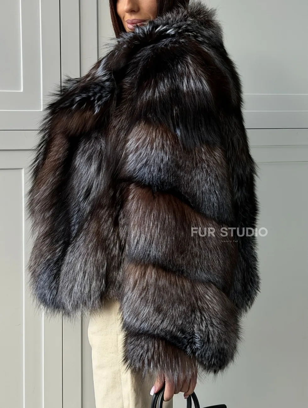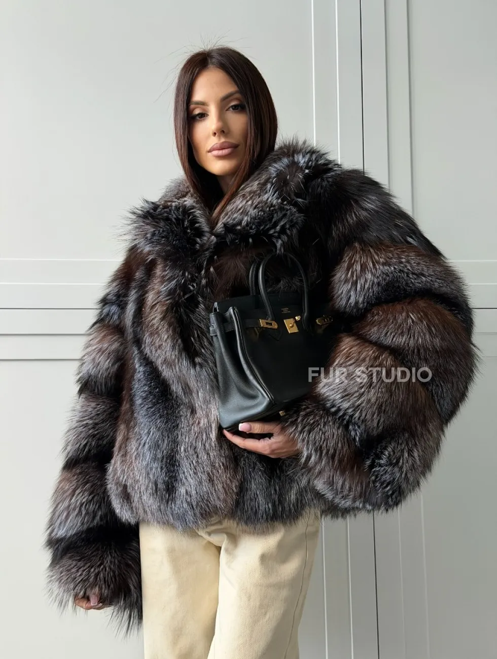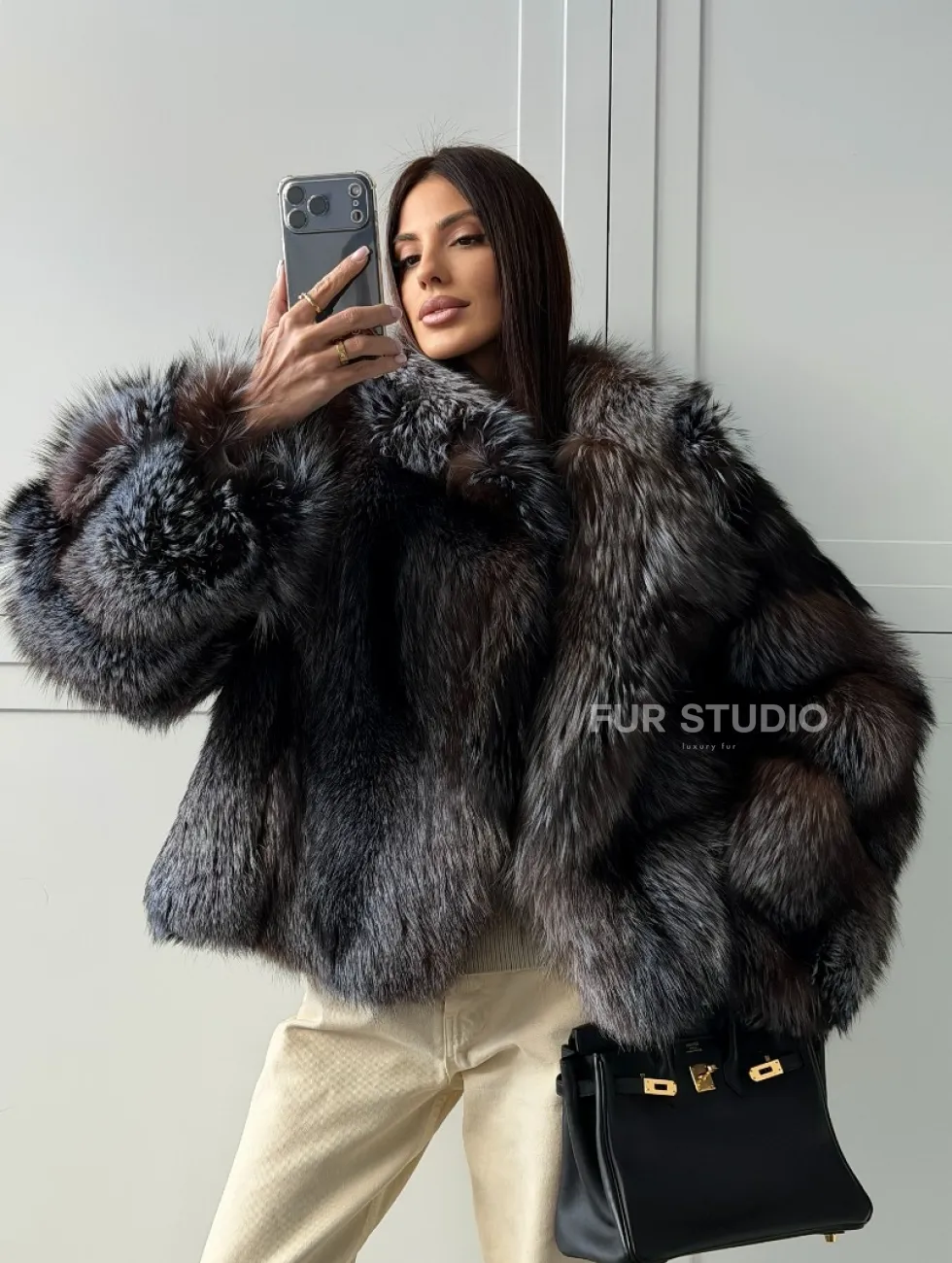Мех данной шубы лиса, цвет серый. Предлагается в размерах от 40 до 48. Длина модели 55-60 см, что выгодно подчеркивает фигуру девушек. Эта модель идеально подойдет для девушек и женщин, предпочитающих роскошные натуральные меха.