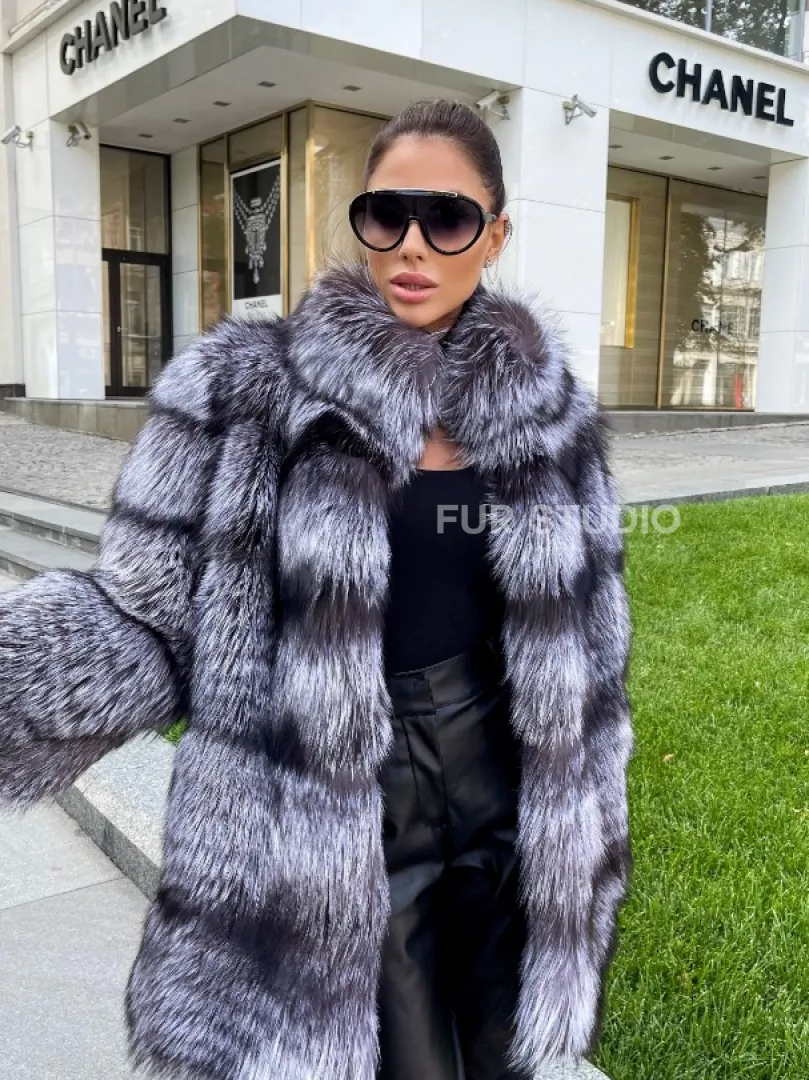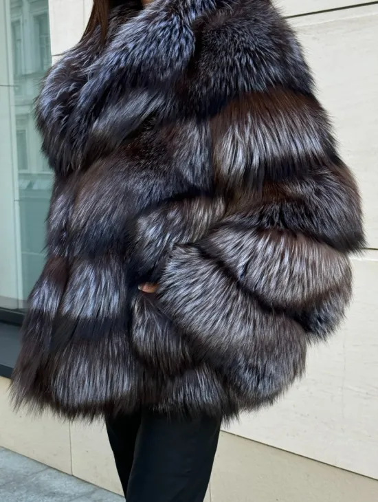 Шуба из меха чернобурой лисы - отличный выбор женщин, которые любят выглядеть стильно в любое время года. Мех смотрится роскошно и дорого. Необычная расцветка подчеркнет цвет волос и глаз владелицы. В шубе будет комфортно даже в холодную зиму. Прямой крой зрительно увеличит рост. Широкие манжеты делают акцент на тонкости кистей.
