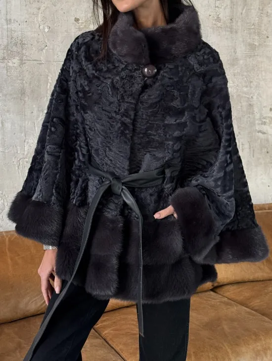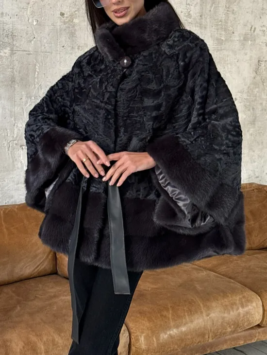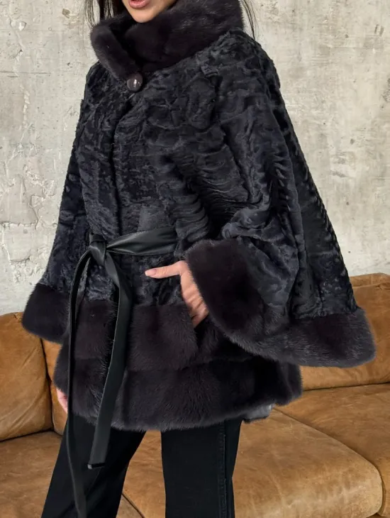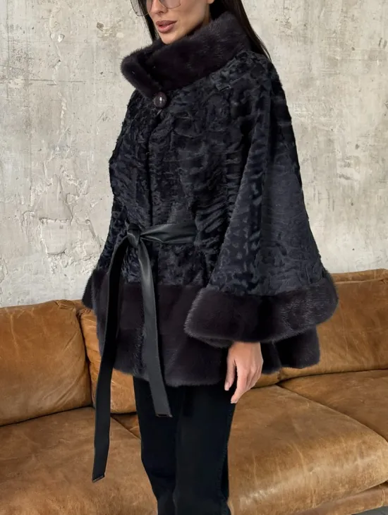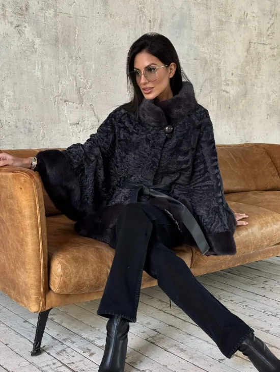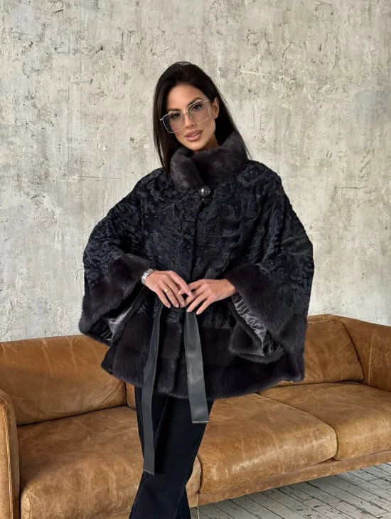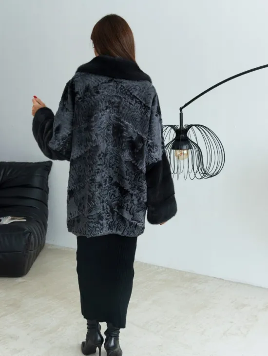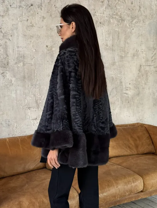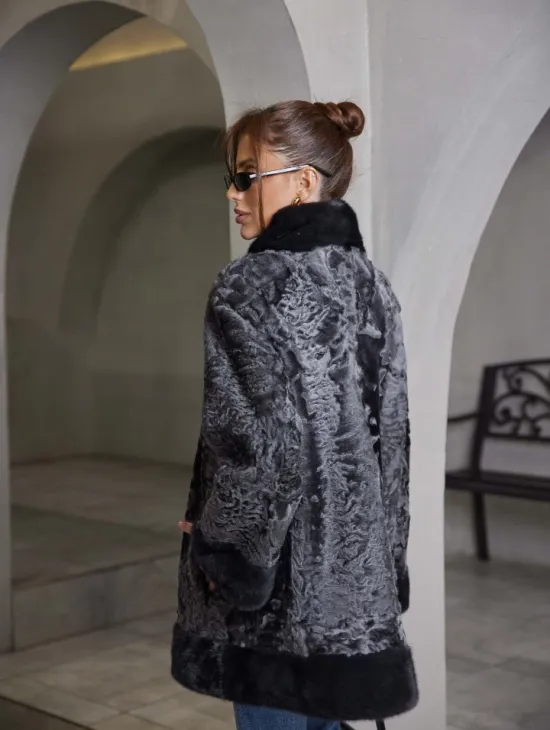 Шуба из каракульчи с отделкой из меха норки с капюшоном, цвет графит – выбор истинных модниц любого возраста. Модель изыскана, сочетает в себе роскошь и стиль. Уникальная комбинация меха делает look необычным и женственным. Роскошный капюшон позаботится о прическе и не даст замерзнуть голове в непогоду. Теплый мех изделия согреет владелицу в прохладное время года.