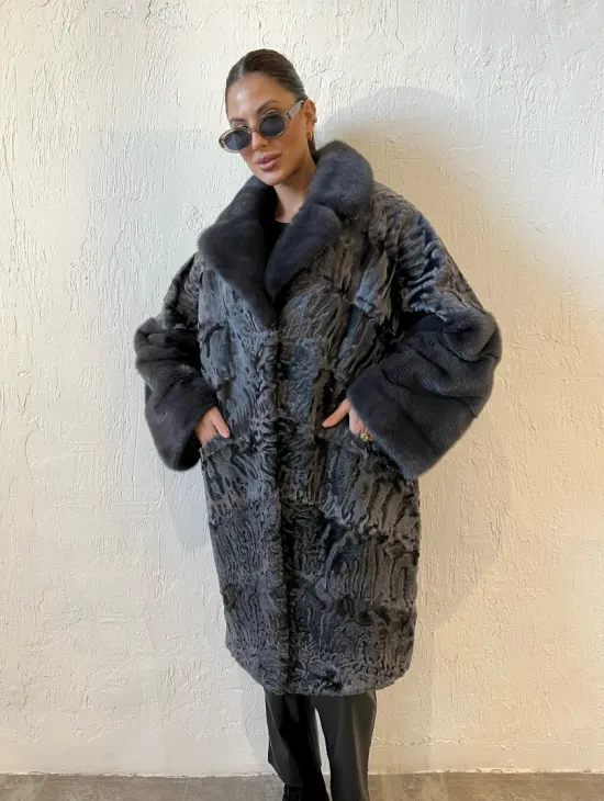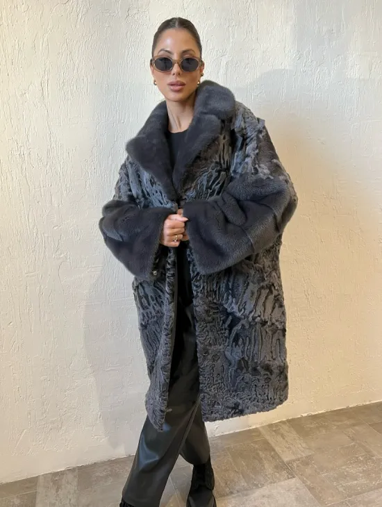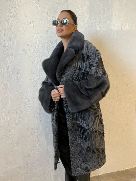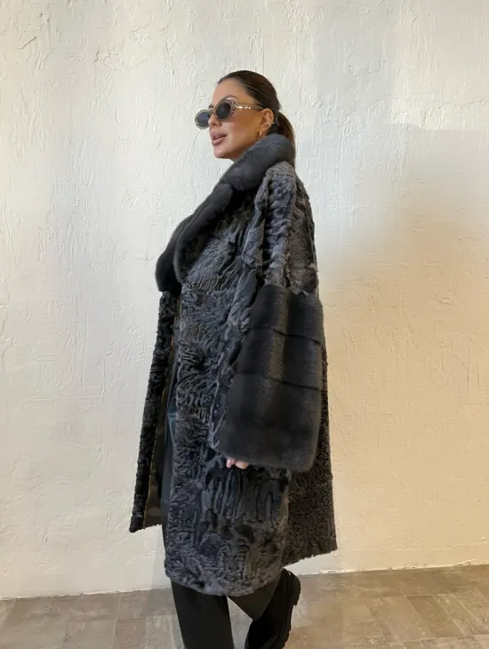 Добавьте к образу аксессуар в виде перчаток, и вы будете неповторима. Длина прикрывает все части тела, что удобно для любительниц коротких нарядов. Качество меха будет радовать хозяйку долгие годы. Модель всегда будет в моде. Купить шубу из каракульчи с отделкой из меха норки с капюшоном в цвете графит – отличное вложение в себя.