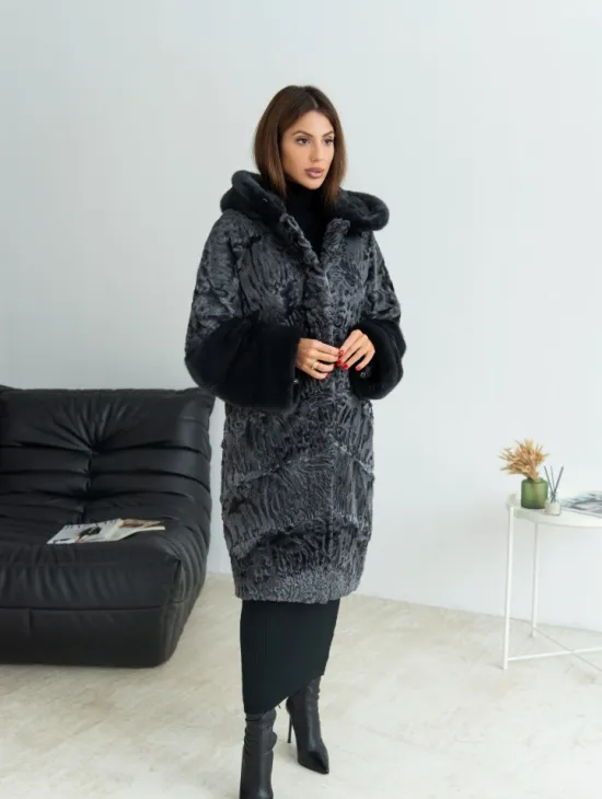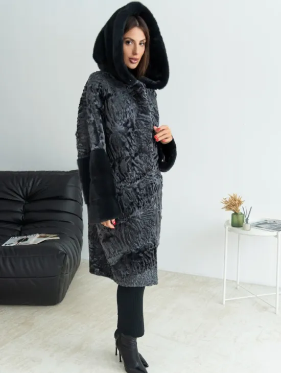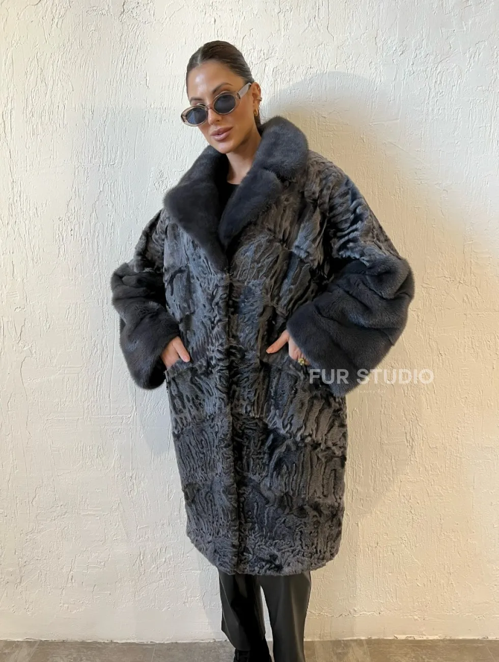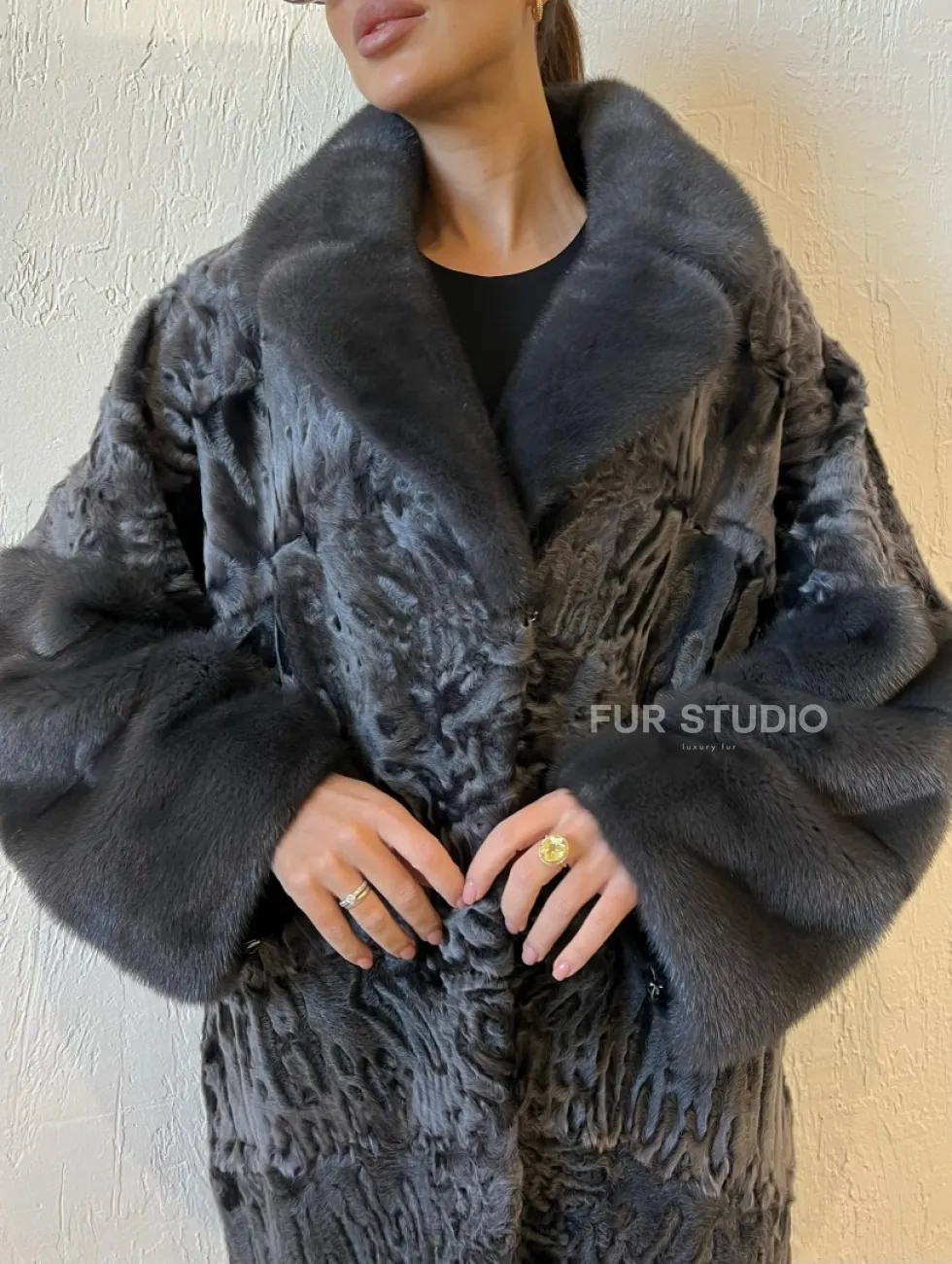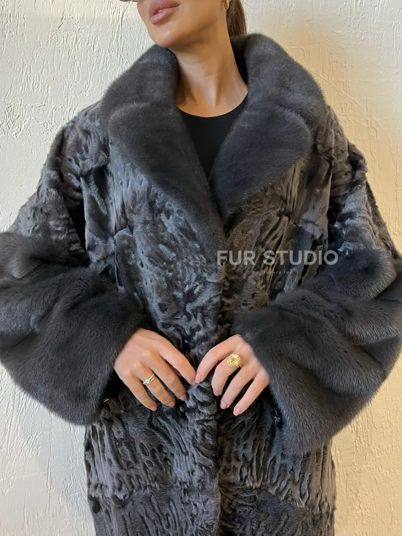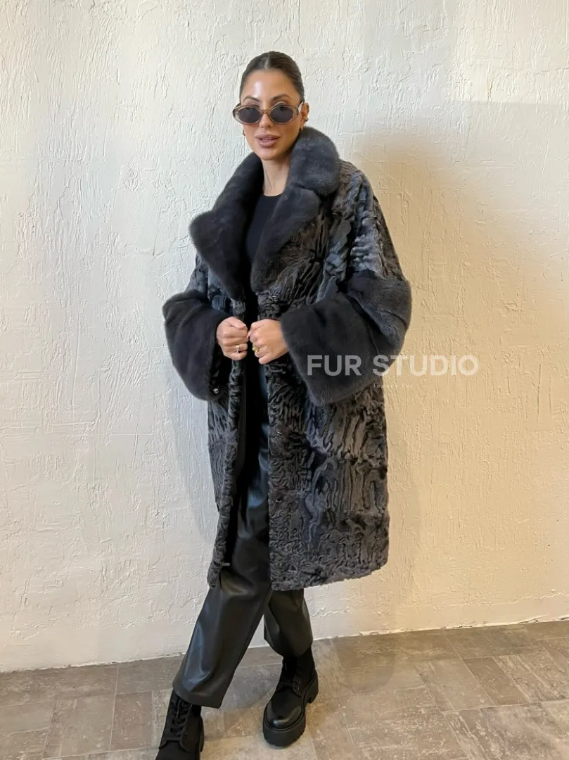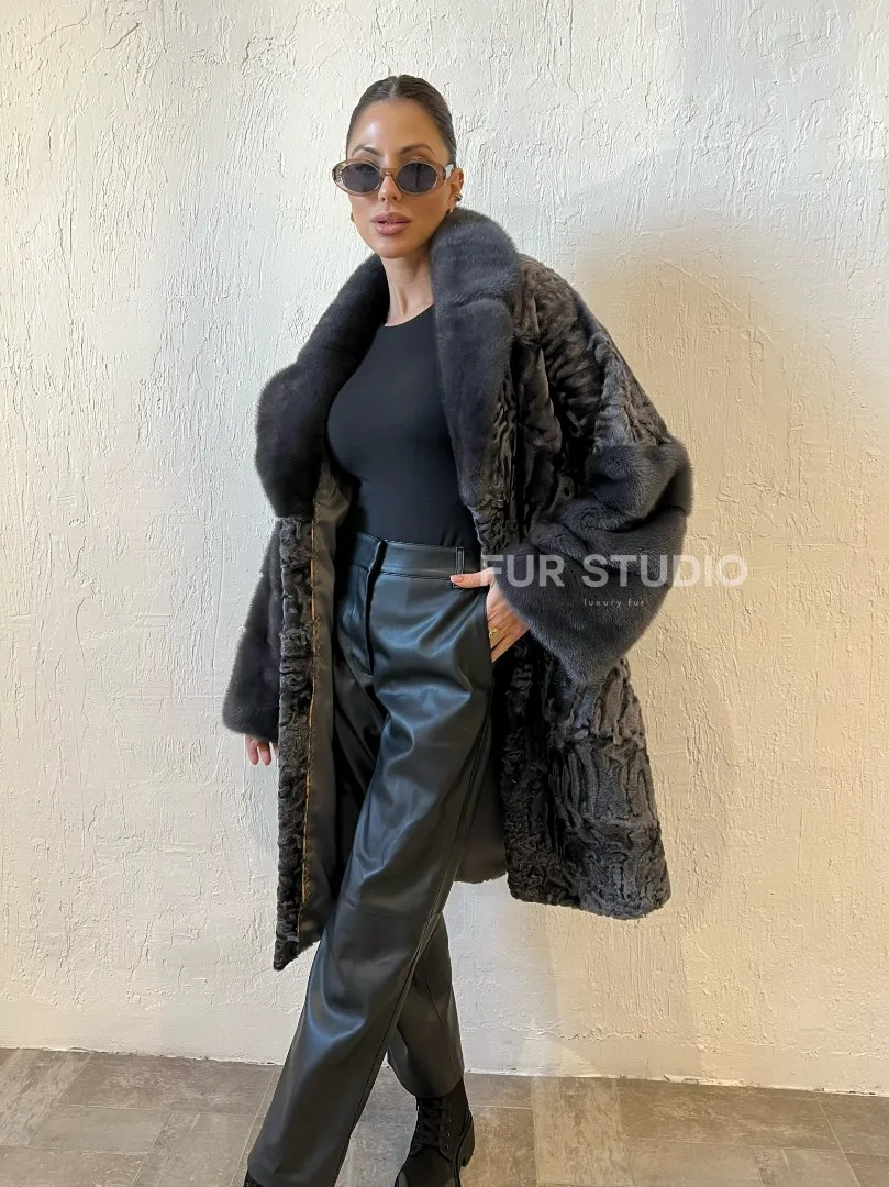 Шуба из меха каракульчи с отделкой из норки доступна для покупки в нашем шоуруме Furs Studio в Москве. У нас так же есть доставка во все города России. Добавьте немного роскоши в свой гардероб с этой шубой, которая будет служить вам многие годы.