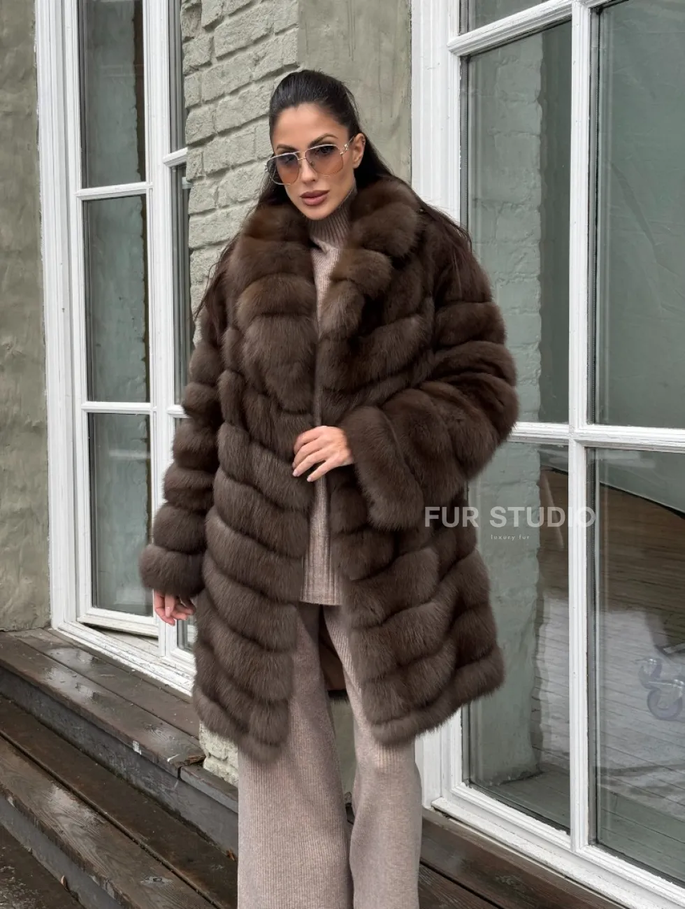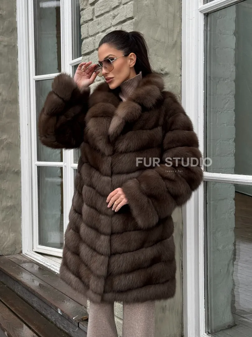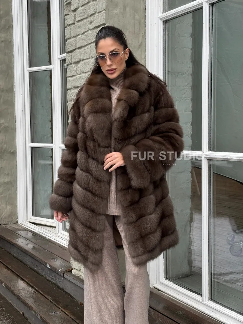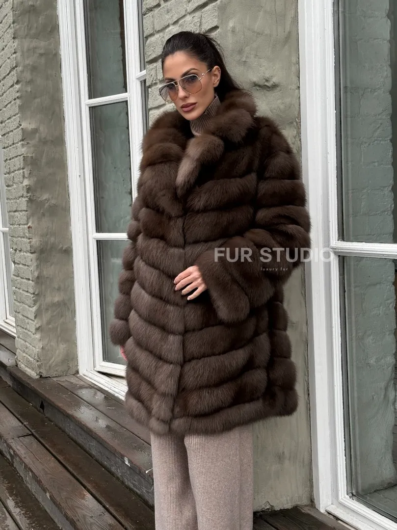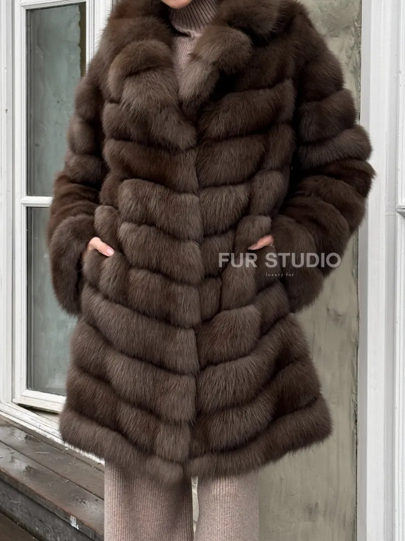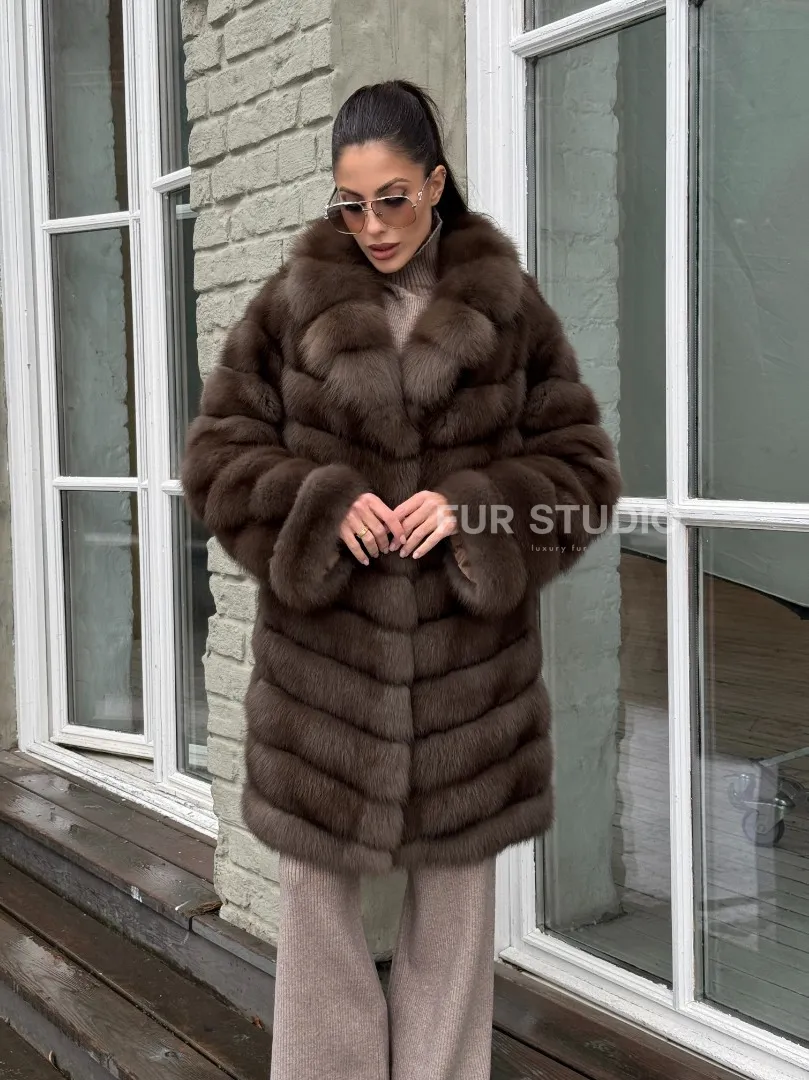 Шуба из меха куницы средней длины цвет темный соболь доступна для покупки в нашем шоуруме Furs Studio в Москве. У нас так же есть доставка во все города России. Добавьте немного роскоши в свой гардероб с этой шубой, которая будет служить вам многие годы.