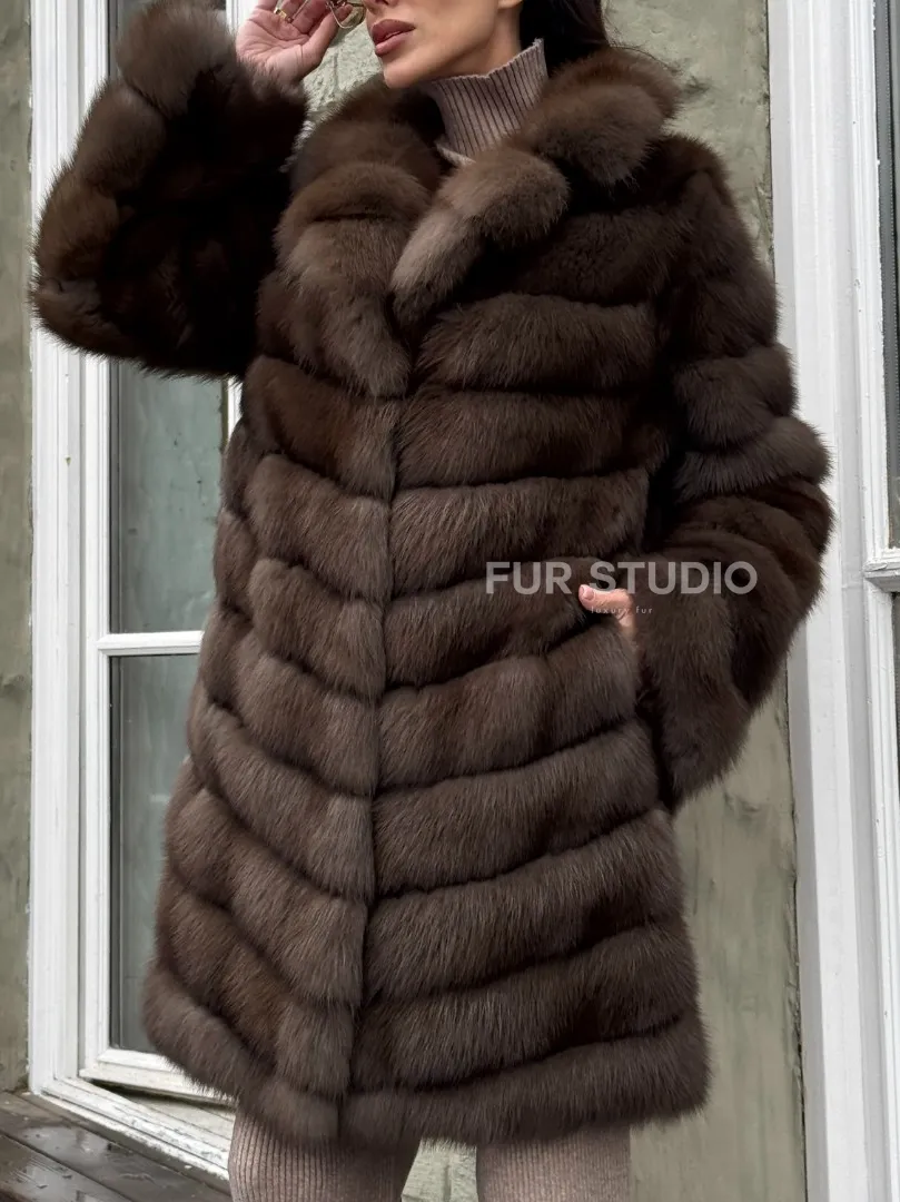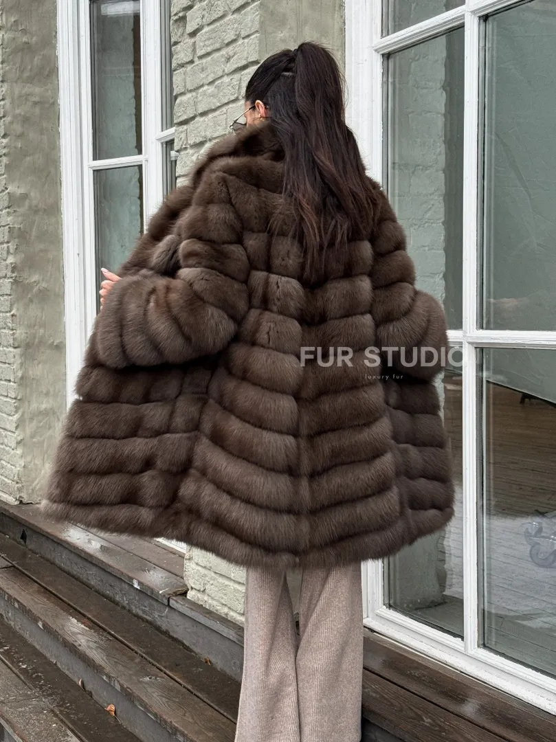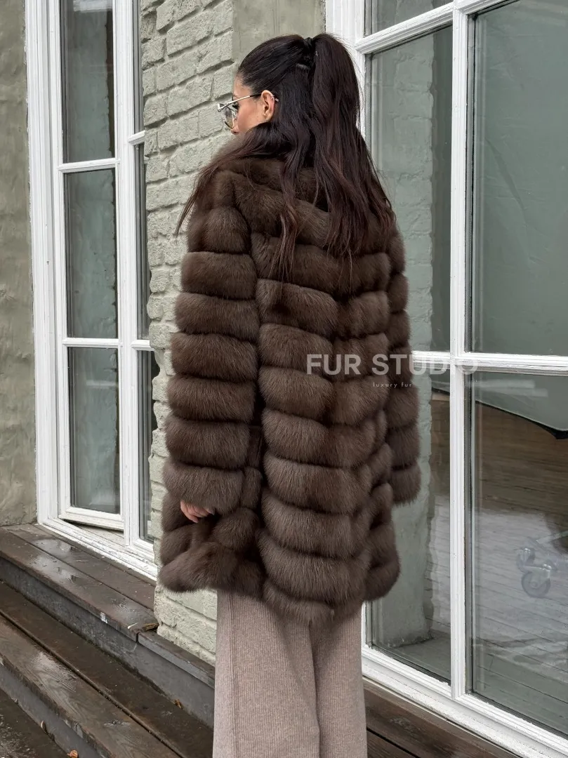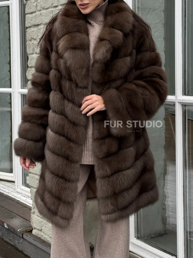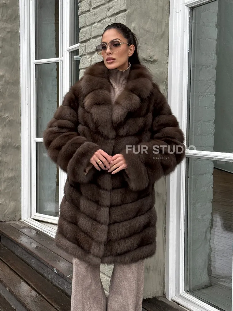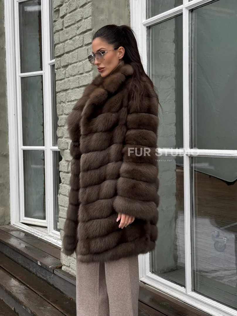 Шуба из меха куницы средней длины цвет темный соболь доступна для покупки в нашем шоуруме Furs Studio в Москве. У нас так же есть доставка во все города России. Добавьте немного роскоши в свой гардероб с этой шубой, которая будет служить вам многие годы.