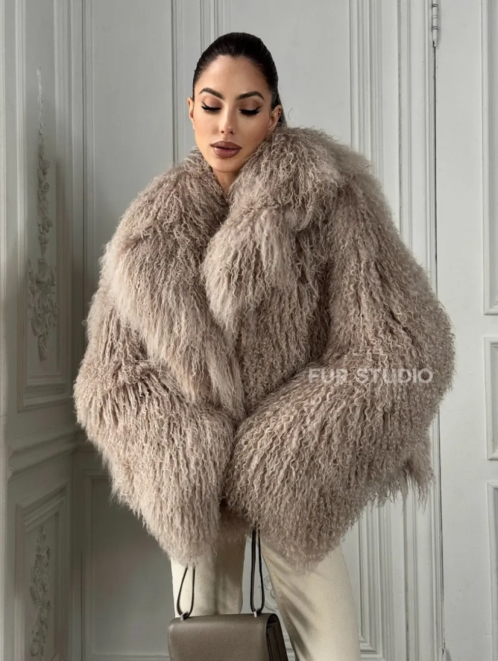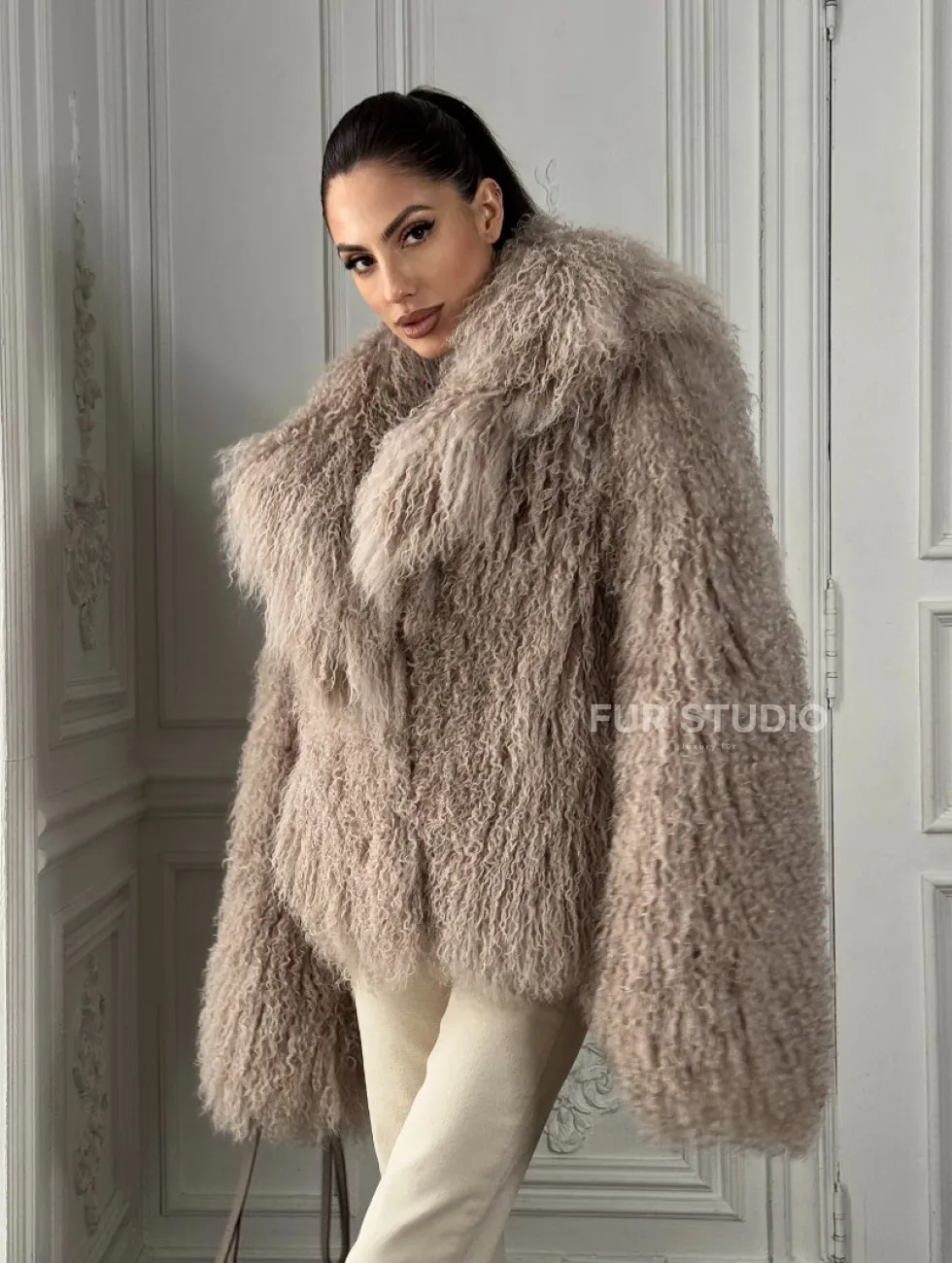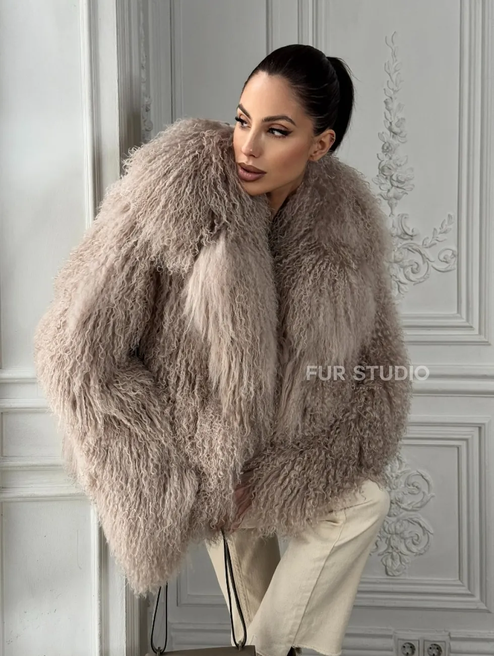 Мех данной шубы лама, цвет бежевый. Предлагается в размерах от 42 до 48. Длина модели 60-65 см, что выгодно подчеркивает фигуру девушек. Эта модель идеально подойдет для девушек и женщин, предпочитающих роскошные натуральные меха.
