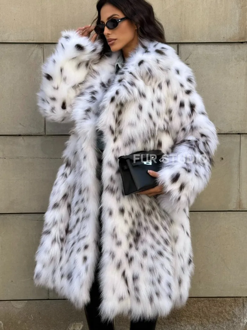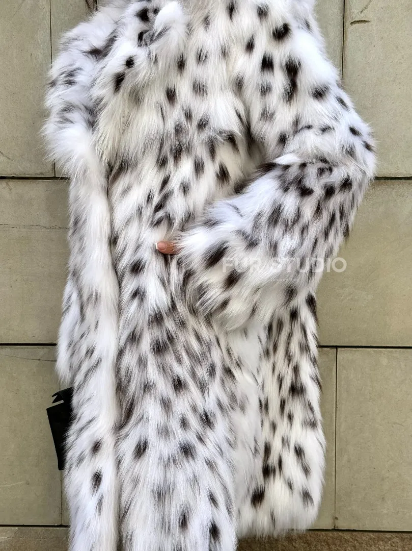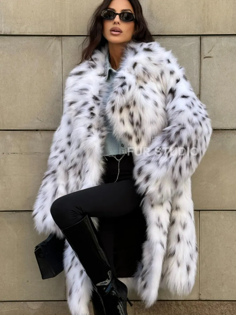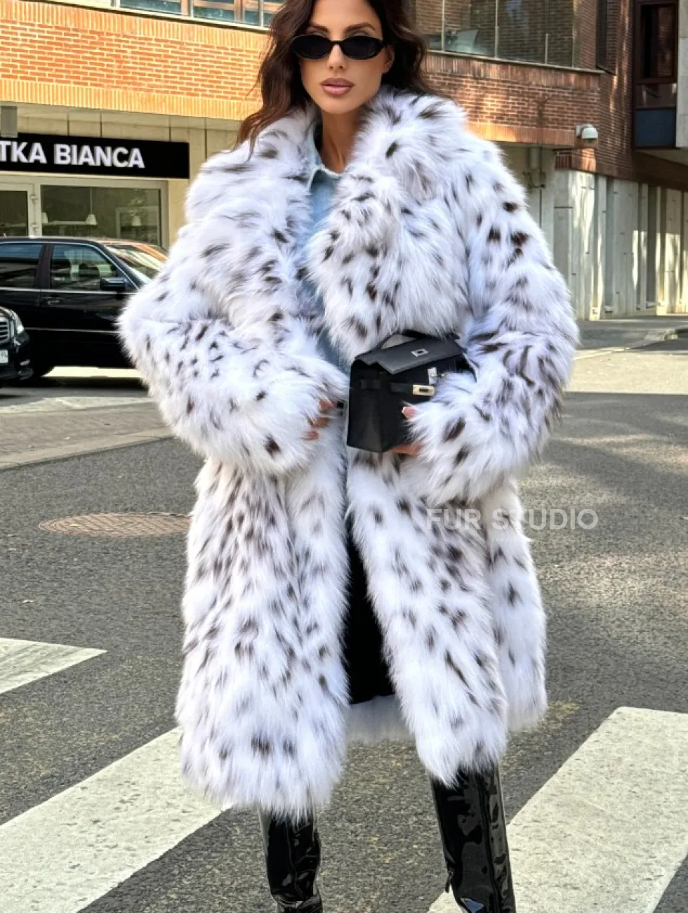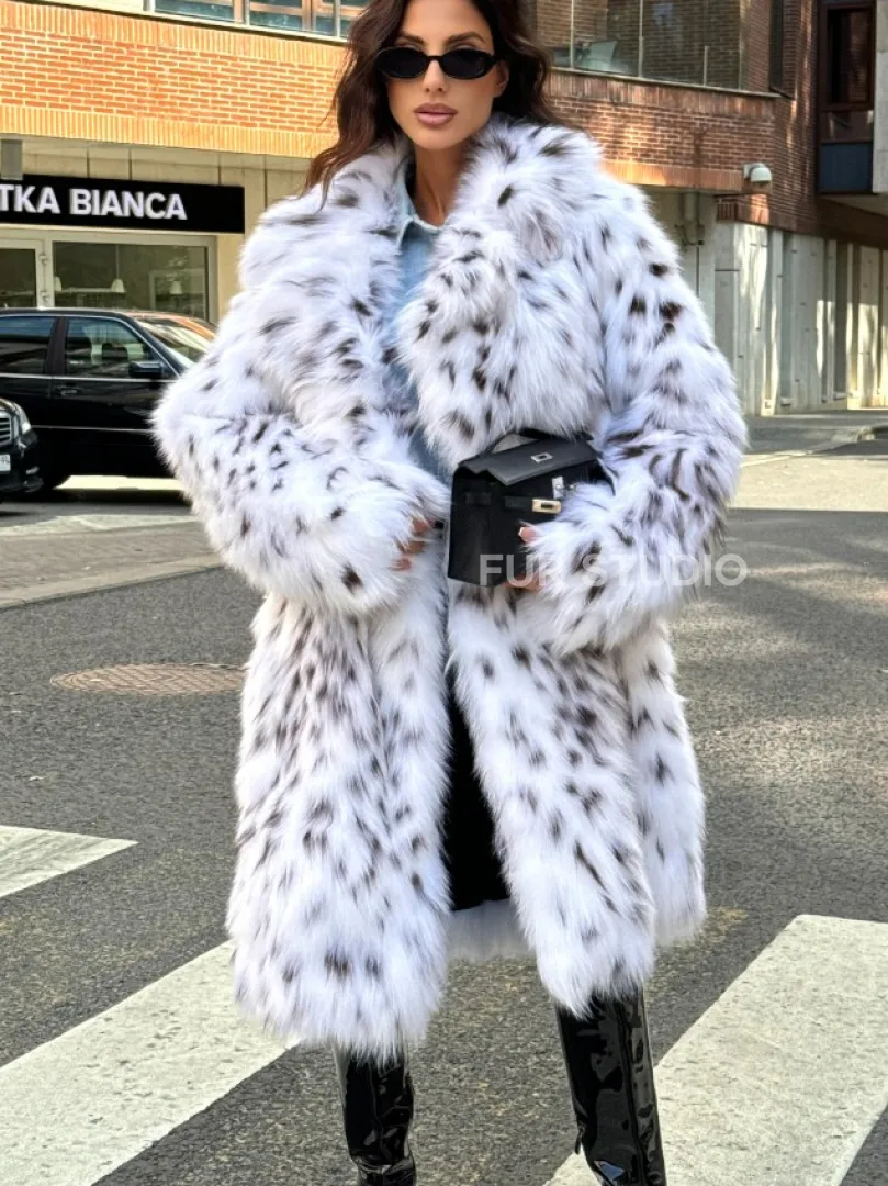 Шуба - Белая лиса с вшитыми пятнами из рыси PREMIUM качество, фасон «летучая мышь» легкая и стильная, созданная специально для уверенной в сете активной роскошной женщины. Даже в длине до середины бедра шуба из лисы подарит уют и тепло в любую погоду: в ней комфортно прогуливаться в морозные и ветреные дни, причем не только от такси до ресторана.