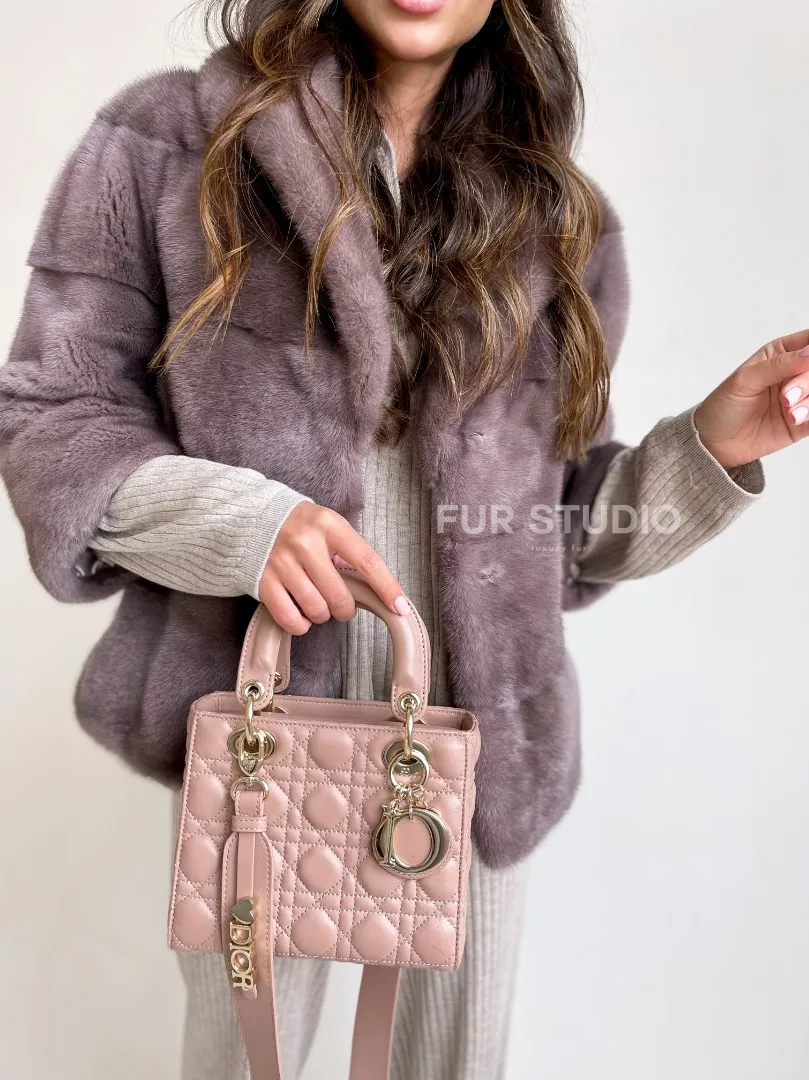 Мех данной шубы аукционная норка, цвет розовый. Предлагается в размерах от 40 до 48. Длина модели 55-60 см, что выгодно подчеркивает фигуру девушек. Эта модель идеально подойдет для девушек и женщин, предпочитающих роскошные натуральные меха.