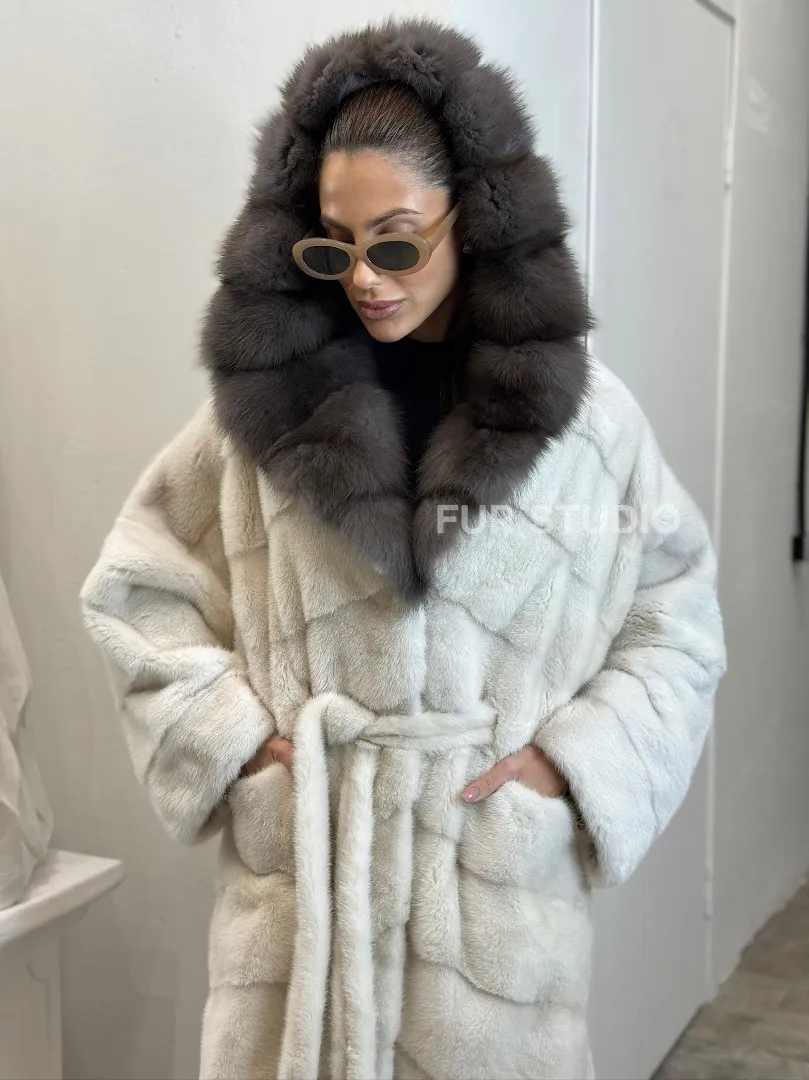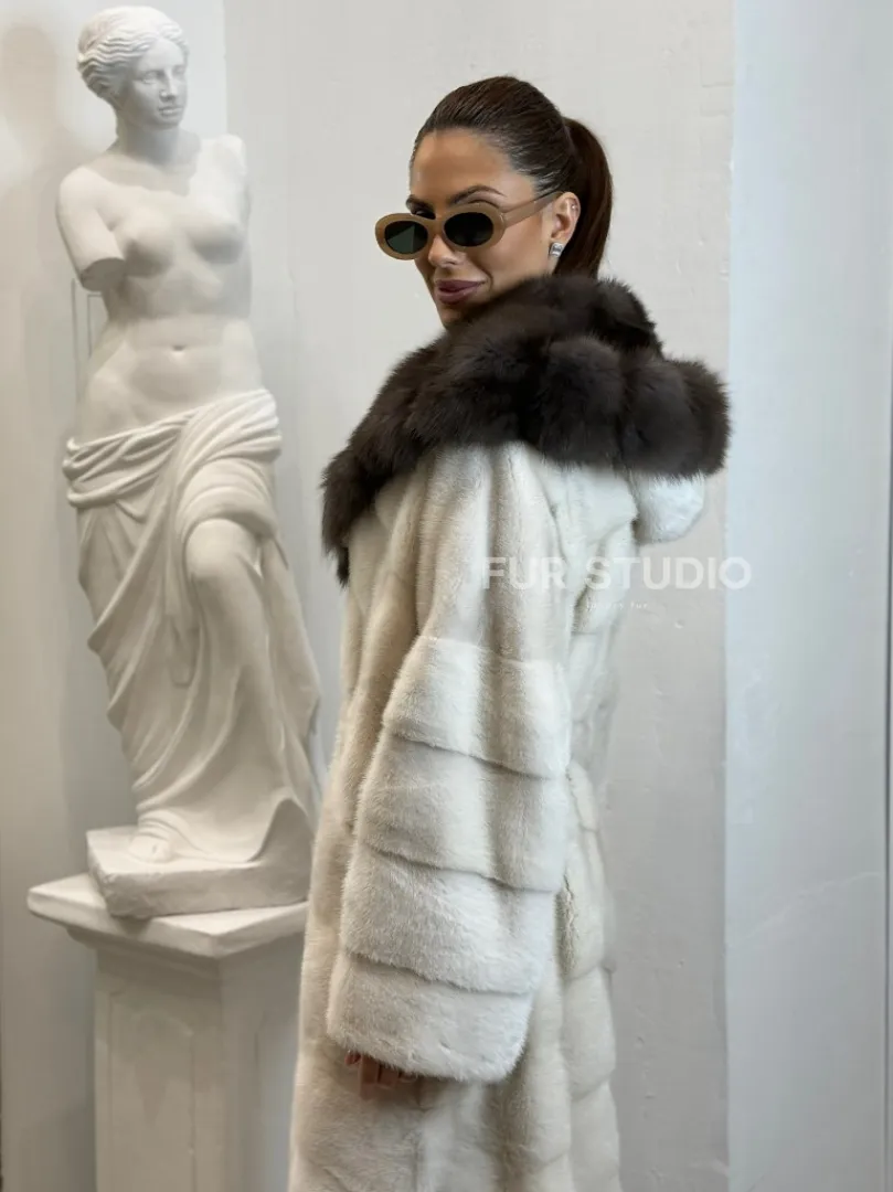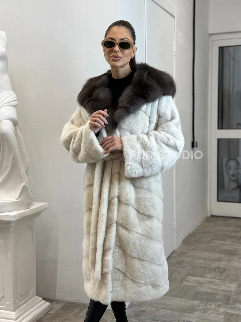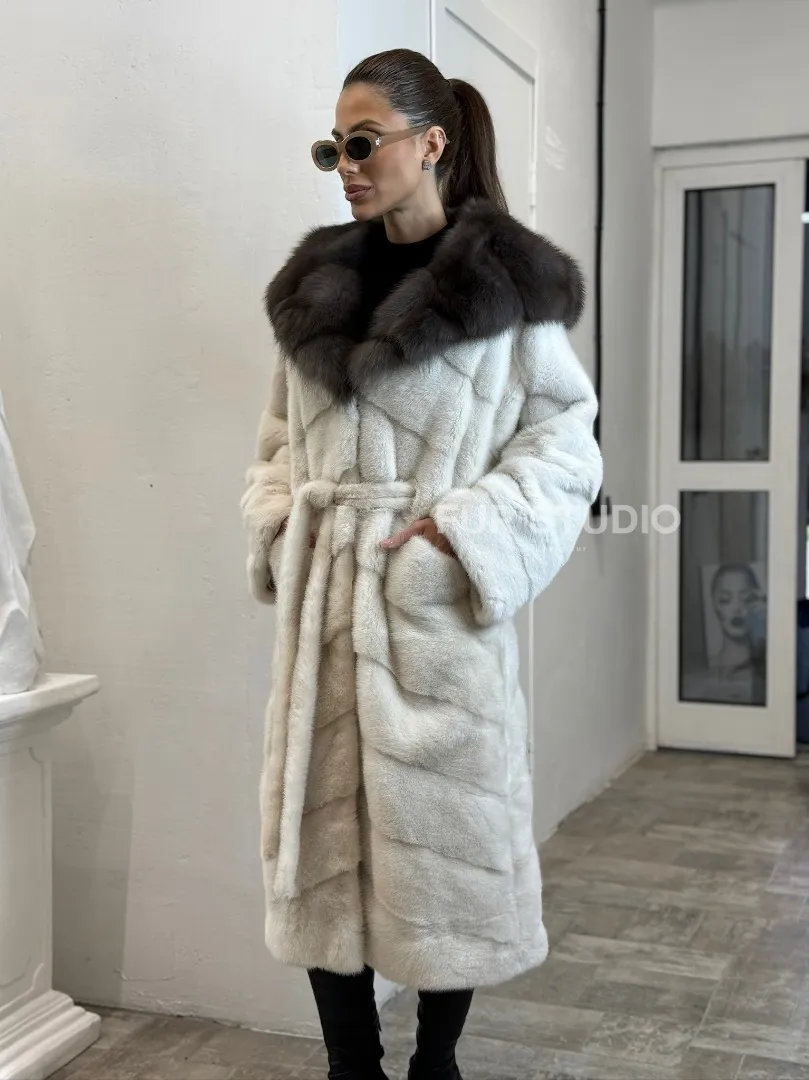 Шуба из меха норки Velvet с капюшоном из меха куницы доступна для покупки в нашем шоуруме Furs Studio в Москве. У нас так же есть доставка во все города России. Добавьте немного роскоши в свой гардероб с этой шубой, которая будет служить вам многие годы.