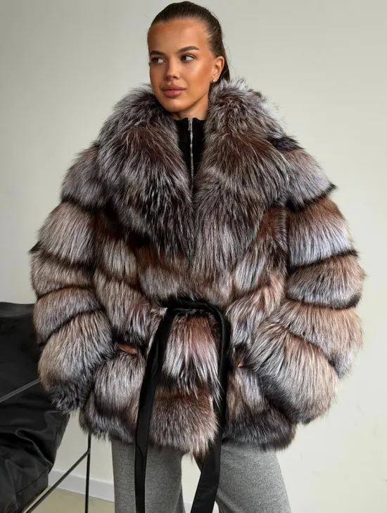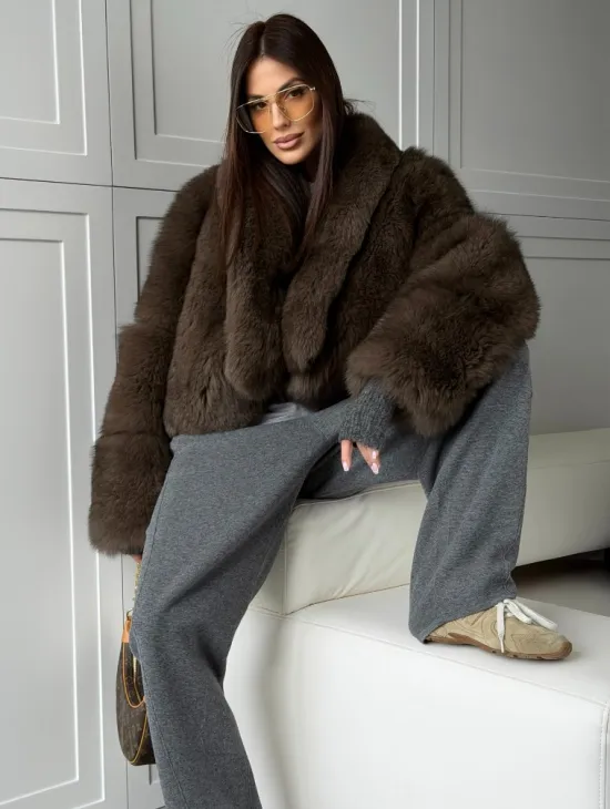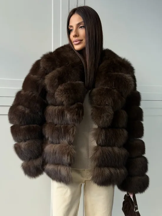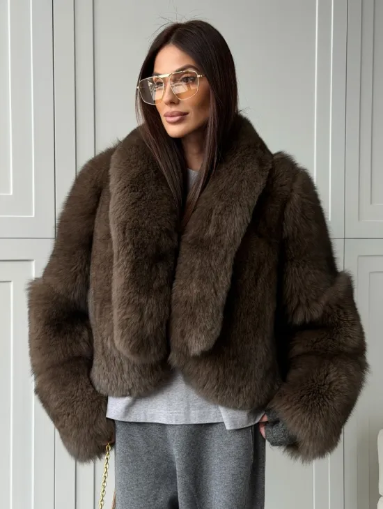 Мех данной шубы финский песец, цвет коричневый. Предлагается в размерах от 40 до 44. Длина модели 65-70 см, что выгодно подчеркивает фигуру девушек. Эта модель идеально подойдет для девушек и женщин, предпочитающих роскошные натуральные меха.