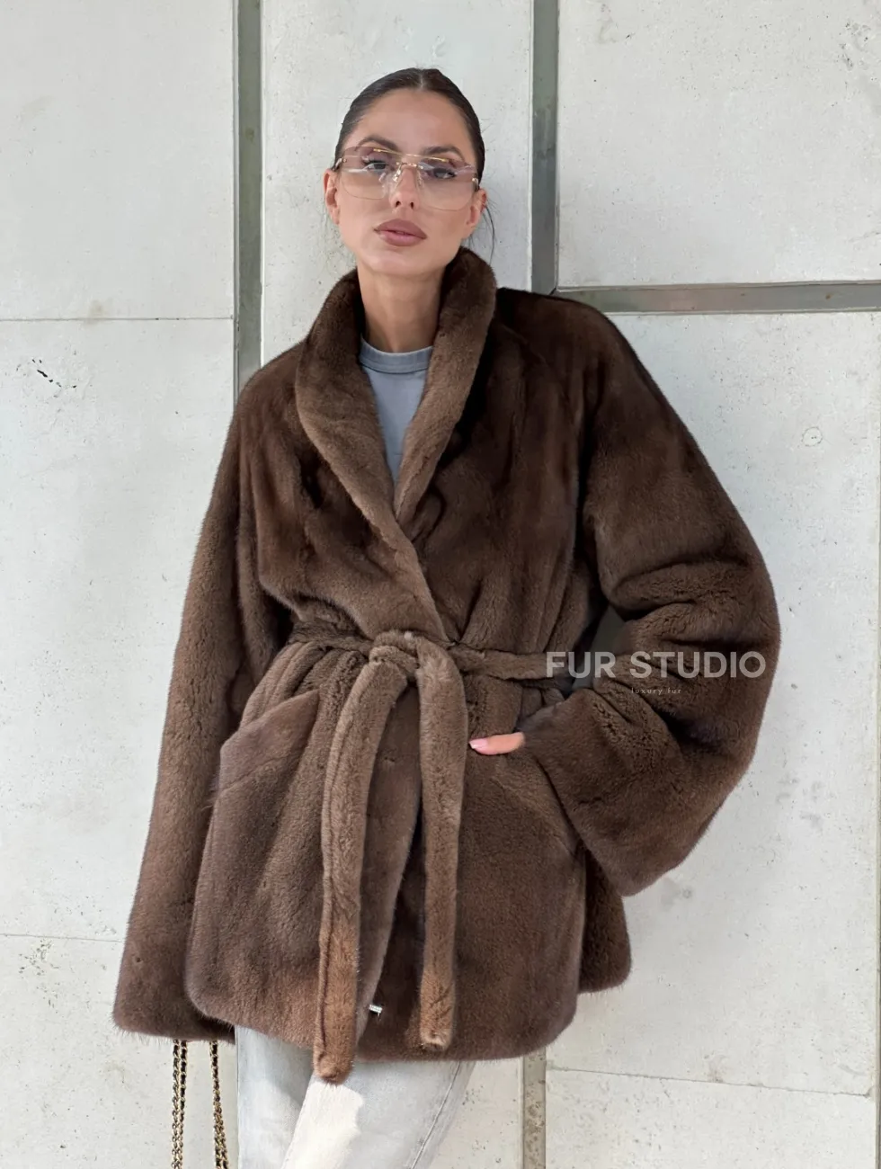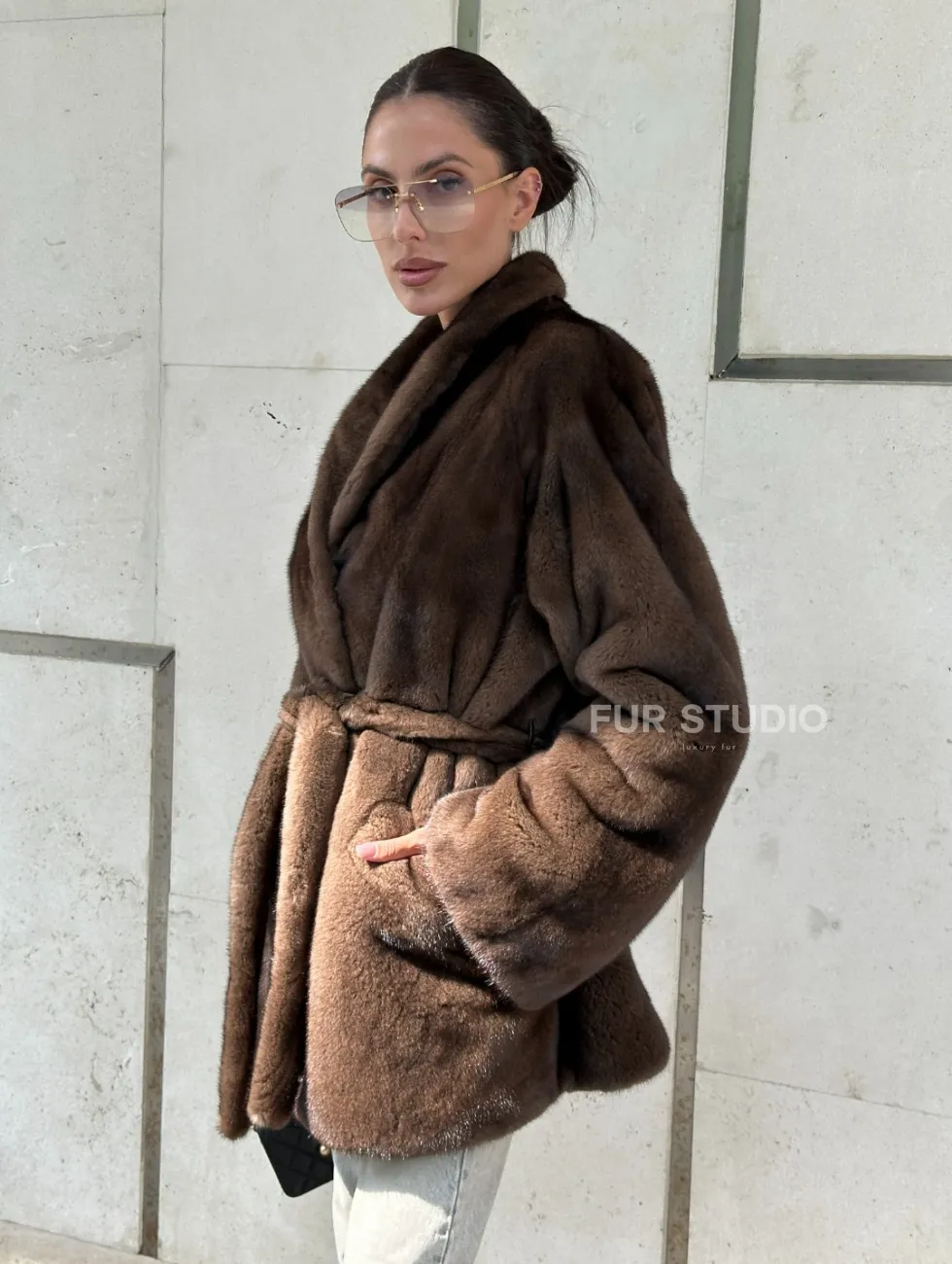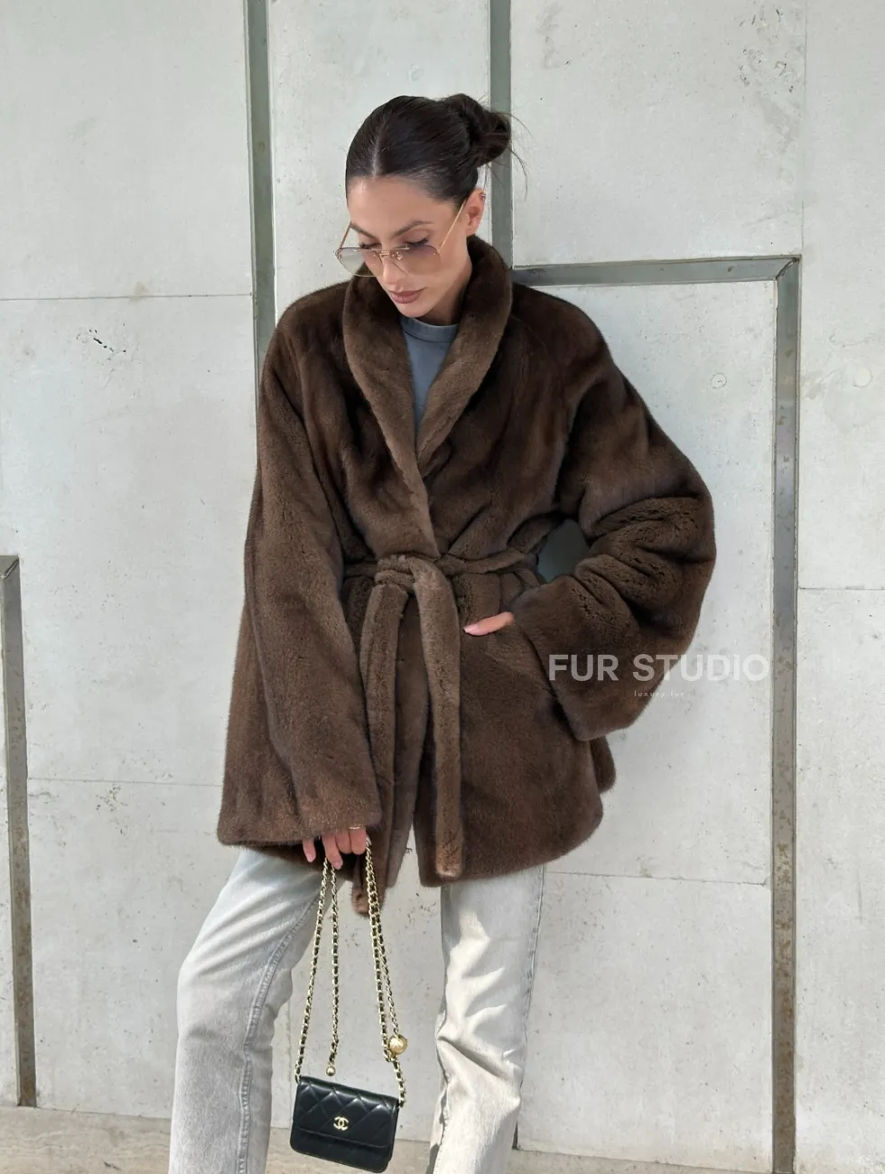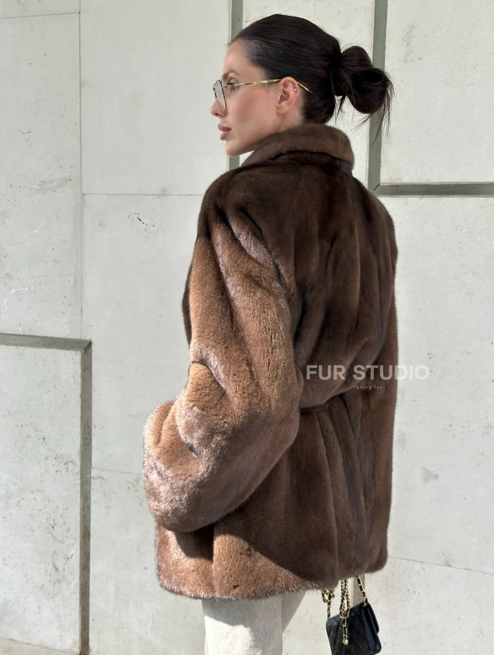 Мех данной шубы скандинавская норка, цвет коричневый. Предлагается в размерах от 42 до 46. Длина модели 70-75 см, что выгодно подчеркивает фигуру девушек. Эта модель идеально подойдет для девушек и женщин, предпочитающих роскошные натуральные меха.