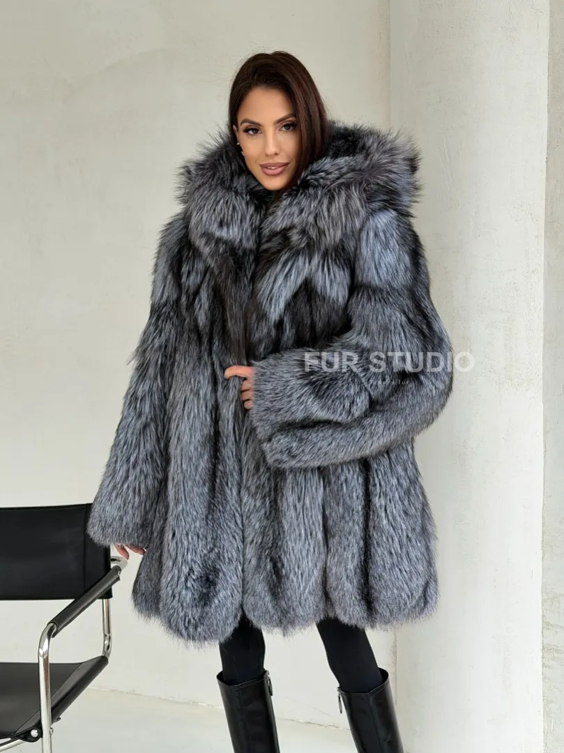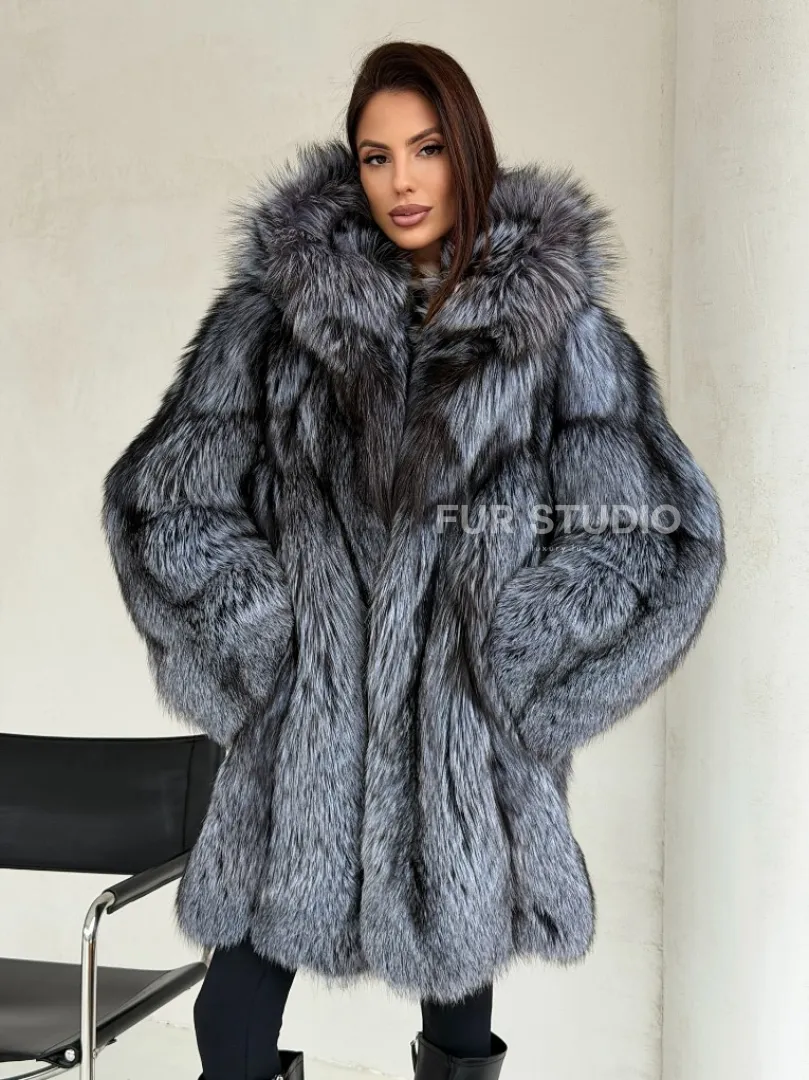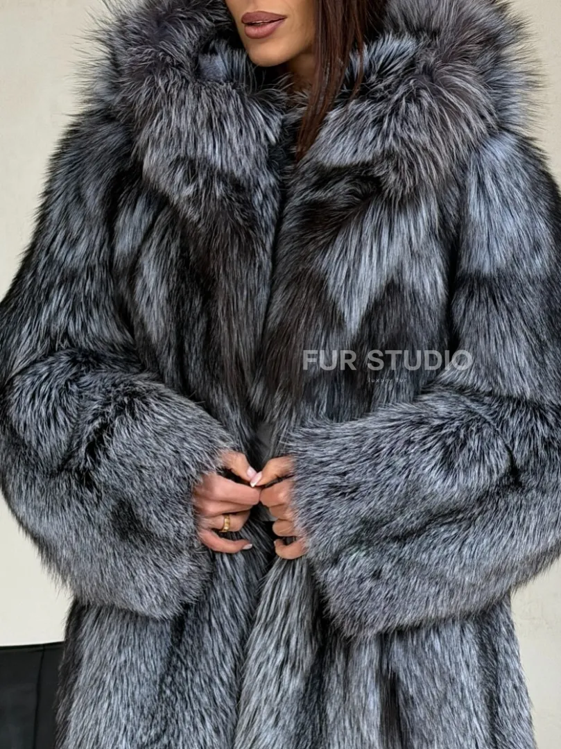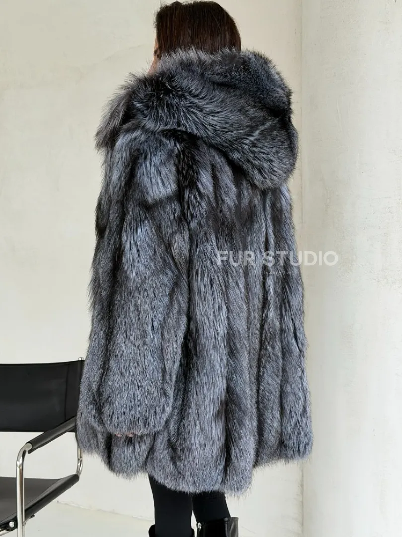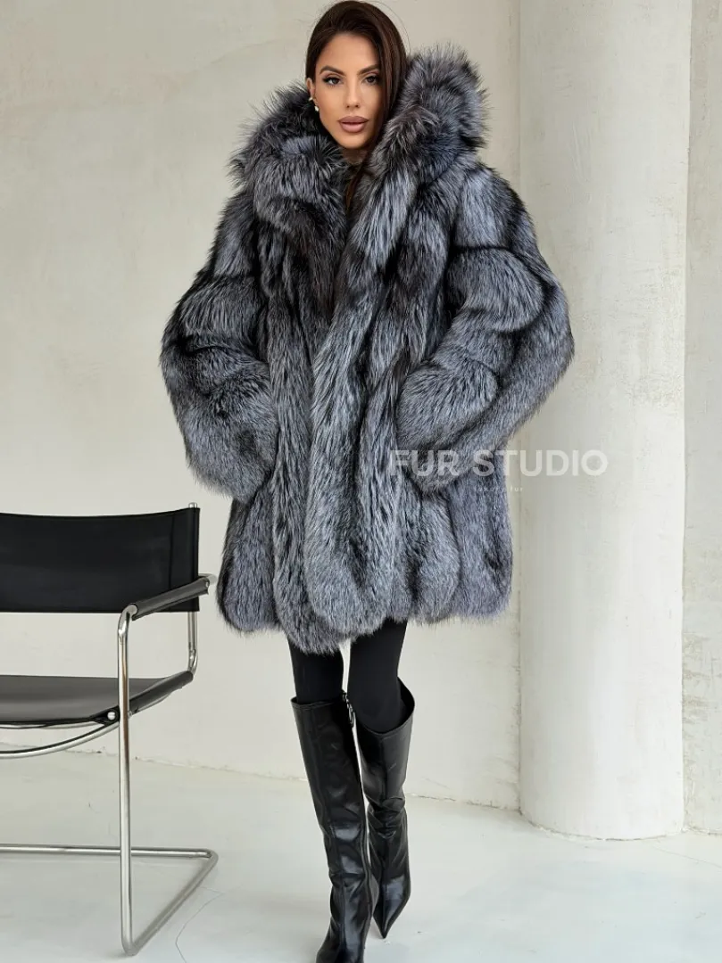 Шуба из натурального меха чернобурки с капюшоном доступна для покупки в нашем шоуруме Furs Studio в Москве. У нас так же есть доставка во все города России. Добавьте немного роскоши в свой гардероб с этой шубой, которая будет служить вам многие годы.