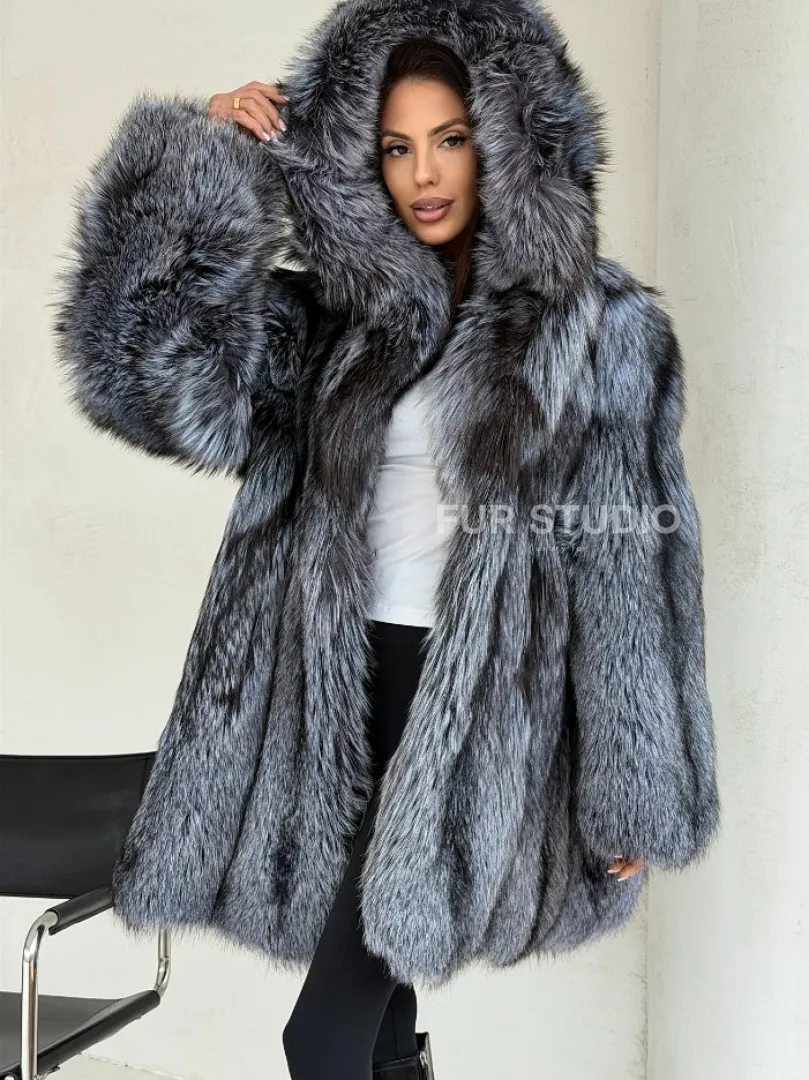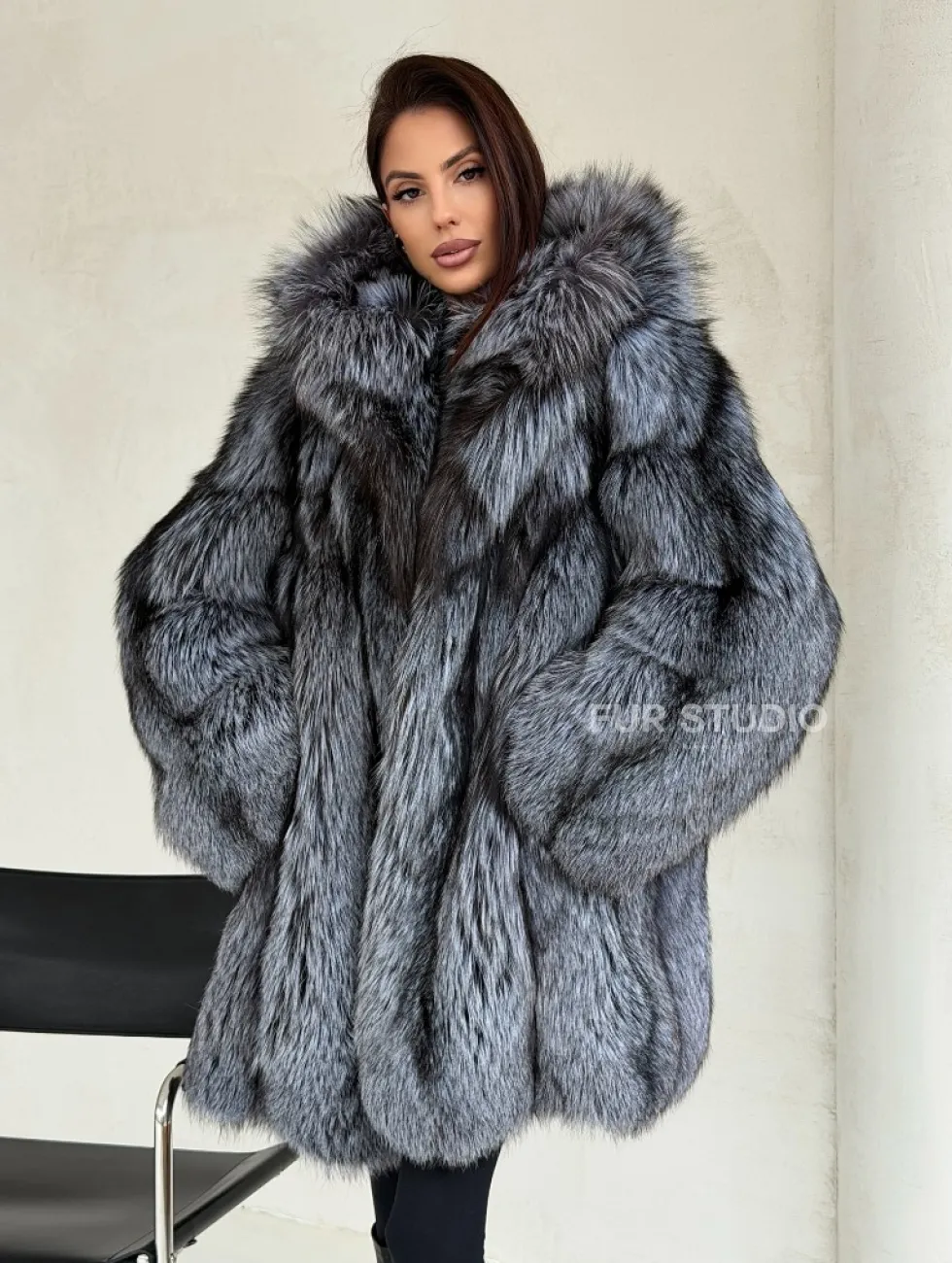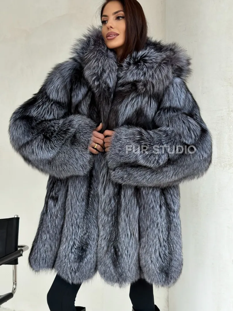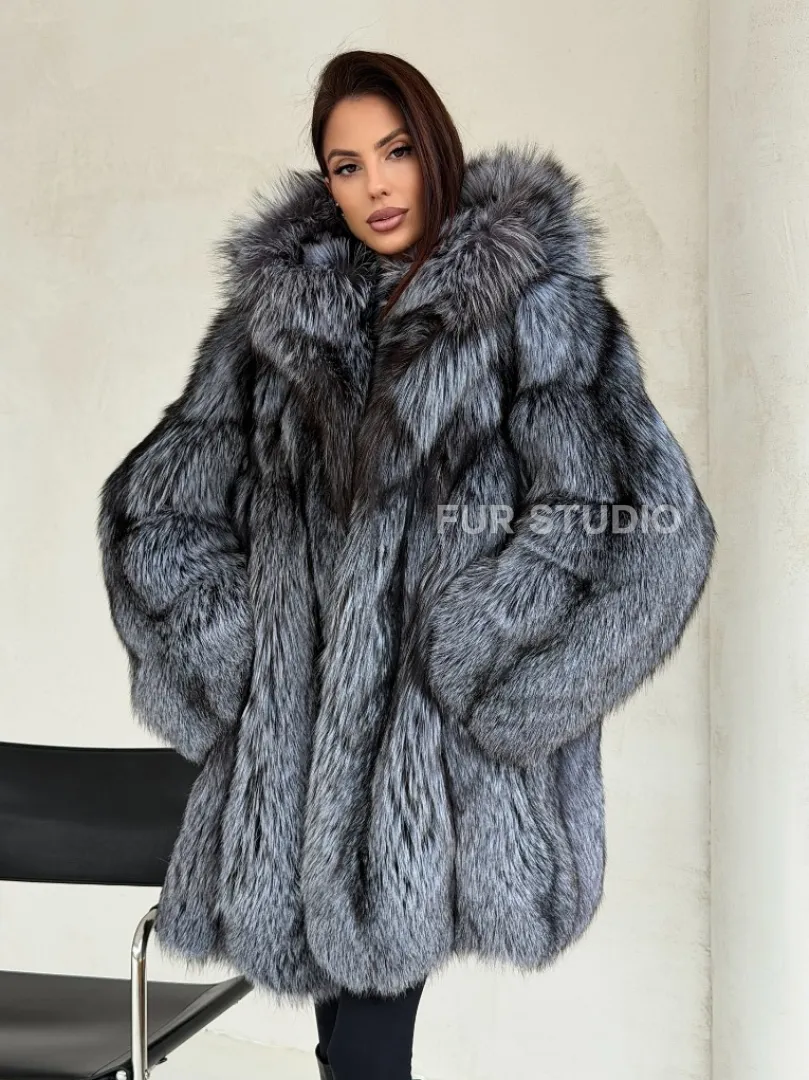 Шуба из натурального меха чернобурки с капюшоном доступна для покупки в нашем шоуруме Furs Studio в Москве. У нас так же есть доставка во все города России. Добавьте немного роскоши в свой гардероб с этой шубой, которая будет служить вам многие годы.