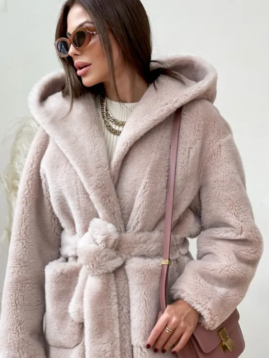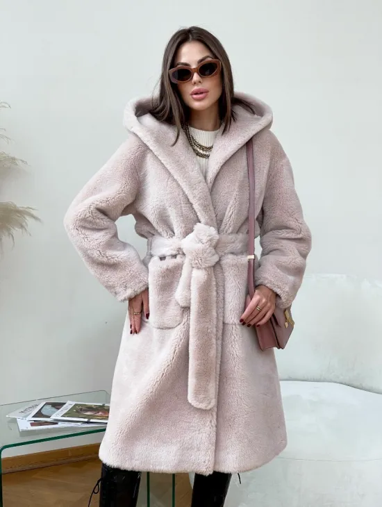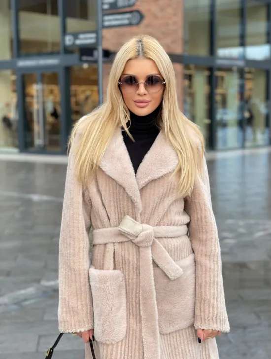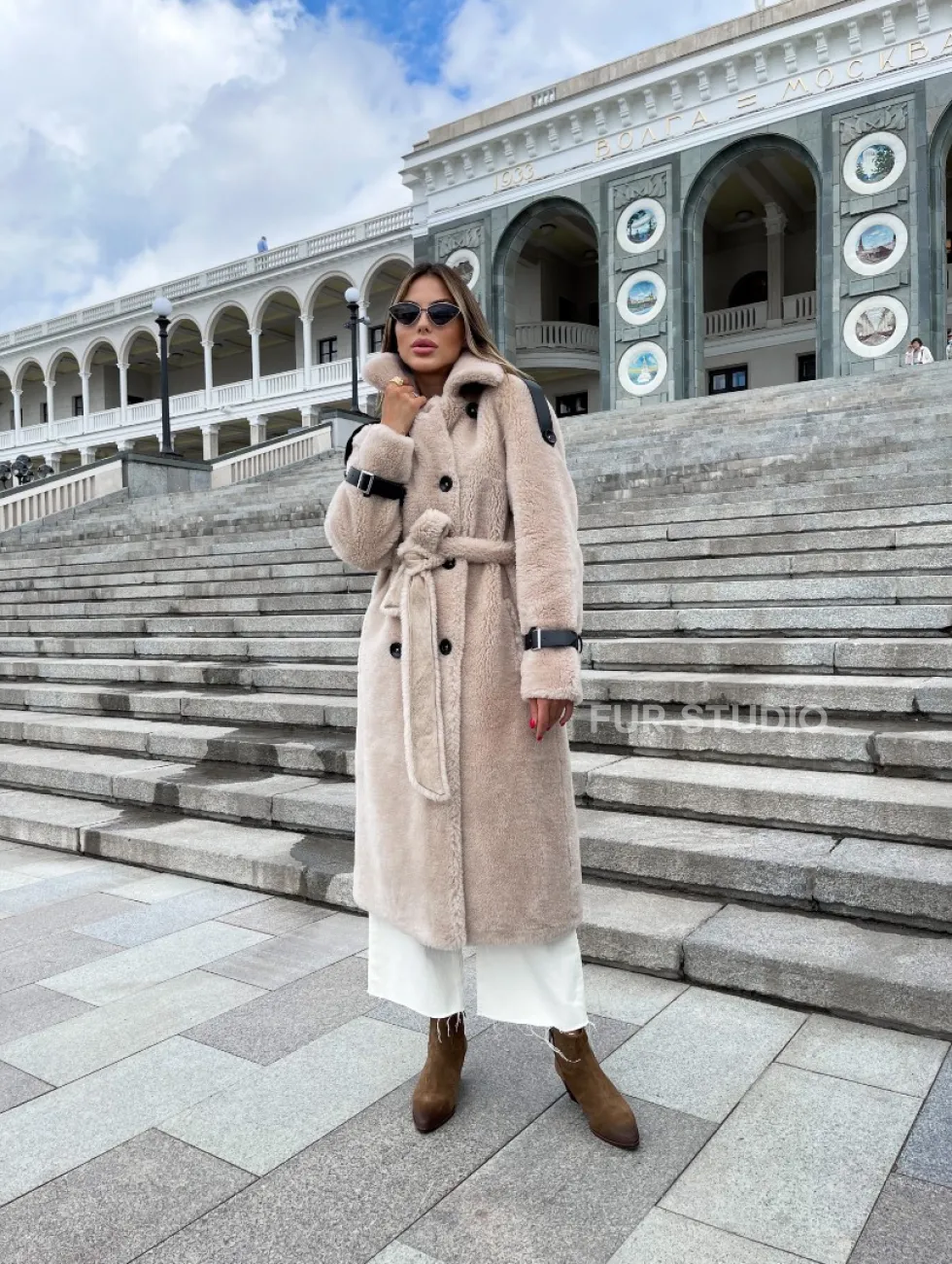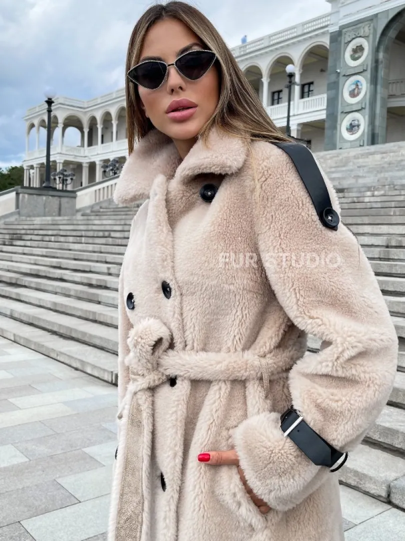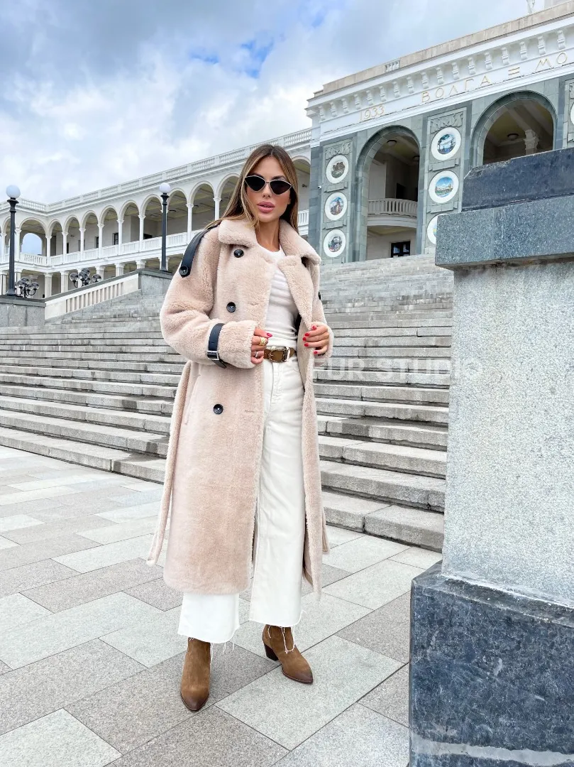 Шуба из натуральной шерсти в молочном оттенке выбор девушек с отличным вкусом. Изделие выглядит стильно, лаконично. Натуральная шерсть позаботится о комфортной температуре тела в прохладное время года. Необычный крой зрительно удлинит силуэт и подчеркнет достоинства фигуры. Оригинальный пояс очертит талию. Глубокие карманы согреют ручки в непогоду.