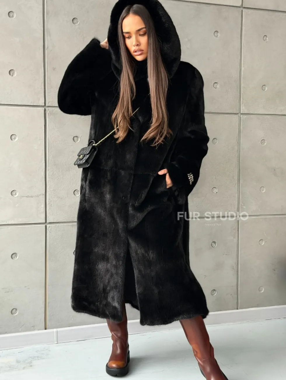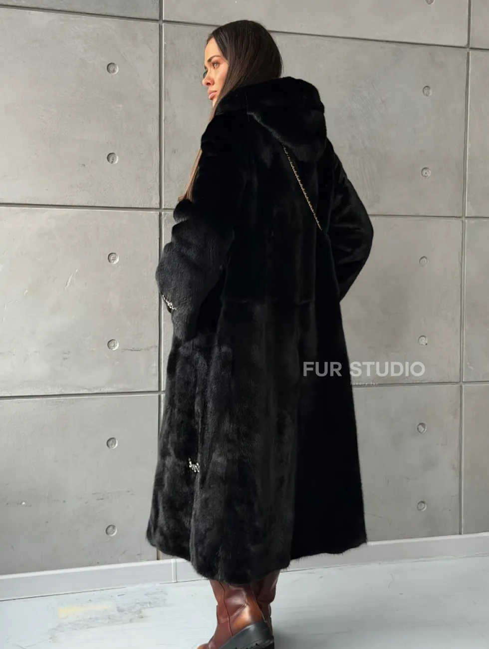 Шуба из норки Blackglama с капюшоном доступна для покупки в нашем шоуруме Furs Studio в Москве. У нас так же есть доставка во все города России. Добавьте немного роскоши в свой гардероб с этой шубой, которая будет служить вам многие годы.