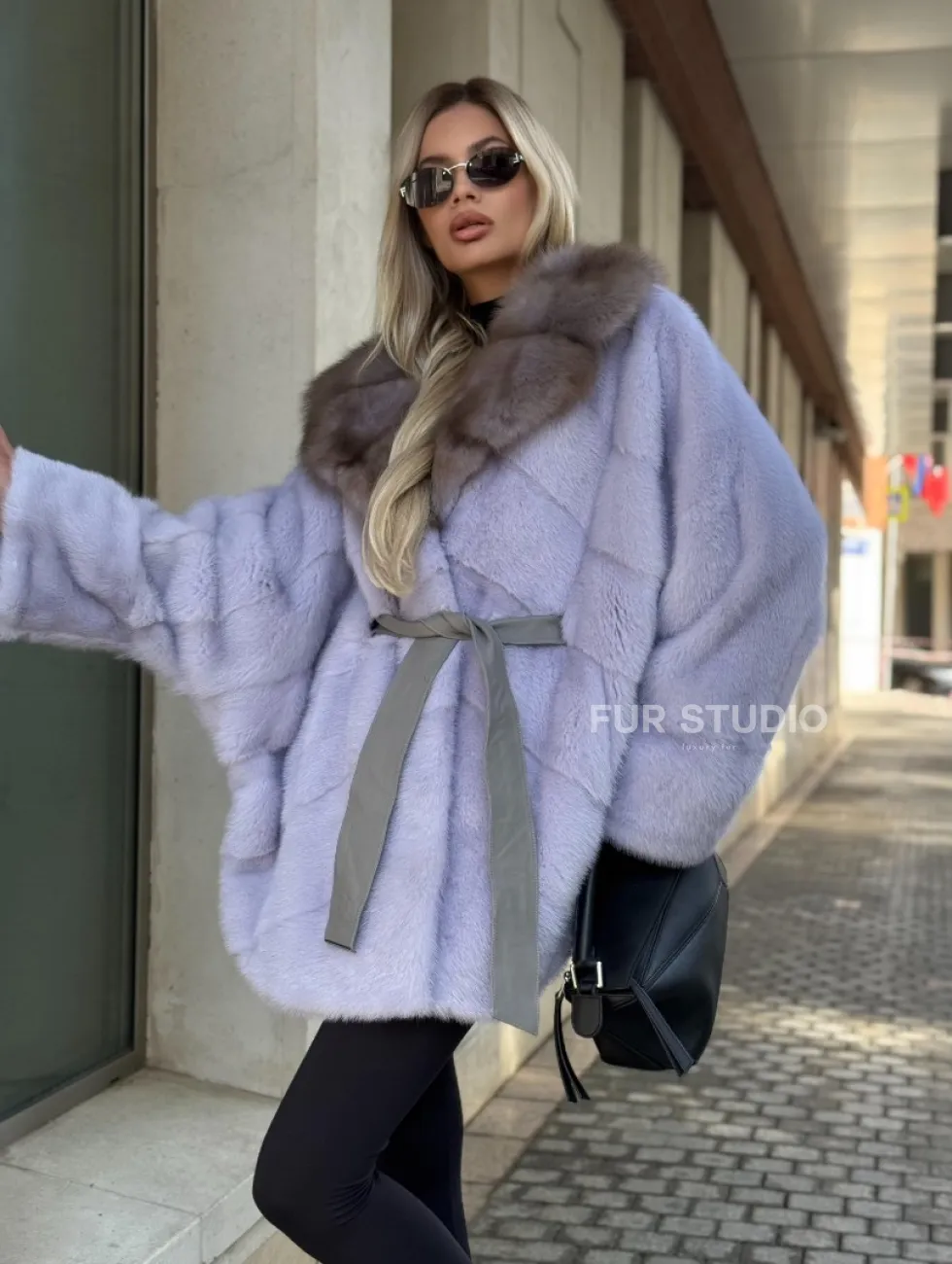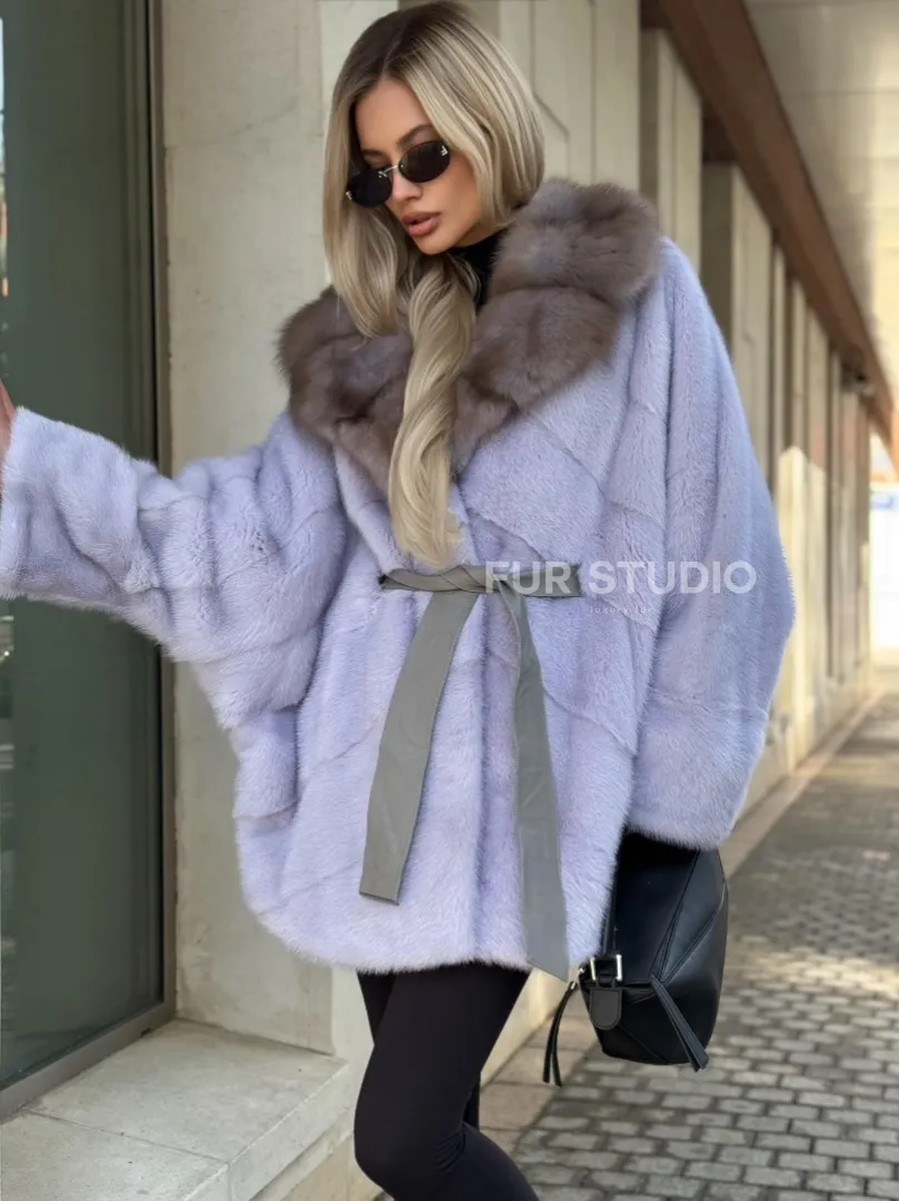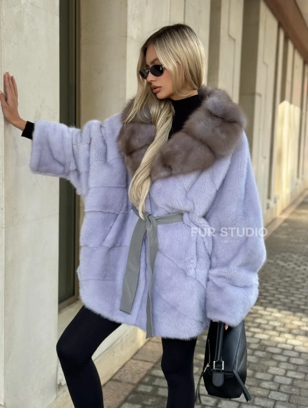 Мех данной шубы аукционная норка , цвет голубой. Предлагается в размерах от 42 до 56. Длина модели 75-80 см, что выгодно подчеркивает фигуру девушек. Эта модель идеально подойдет для девушек и женщин, предпочитающих роскошные натуральные меха.