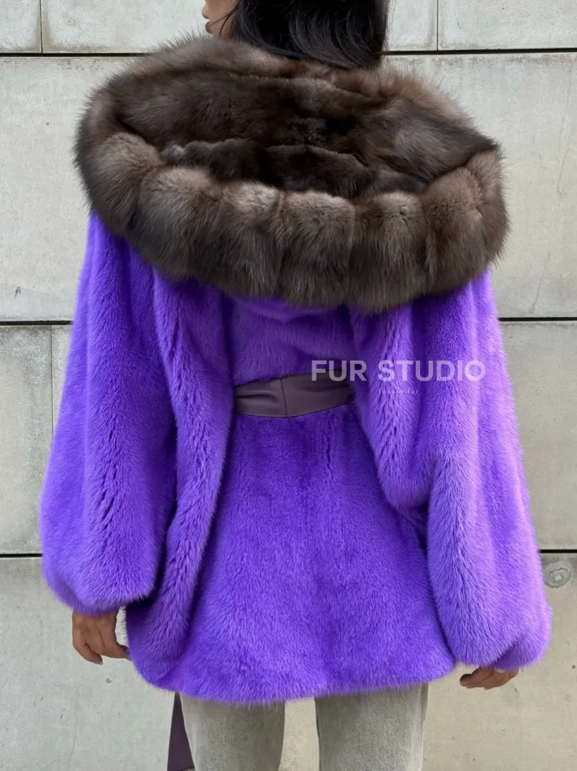 Шуба из норки Violet с капюшоном из меха куницы доступна для покупки в нашем шоуруме Furs Studio в Москве. У нас так же есть доставка во все города России. Добавьте немного роскоши в свой гардероб с этой шубой, которая будет служить вам многие годы.