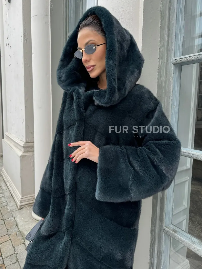Шуба из плюшевой норки NAFA с капюшоном - цвет черный изумруд доступна для покупки в нашем шоуруме Furs Studio в Москве. У нас так же есть доставка во все города России. Добавьте немного роскоши в свой гардероб с этой шубой, которая будет служить вам многие годы.