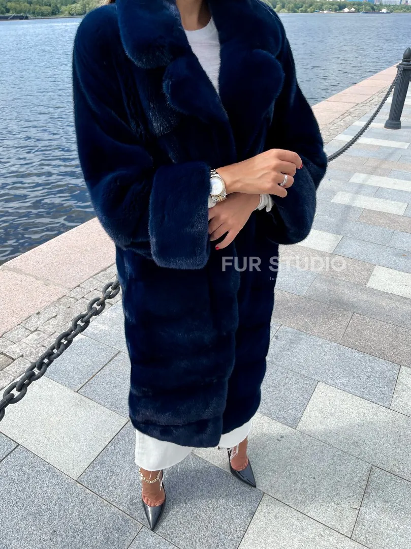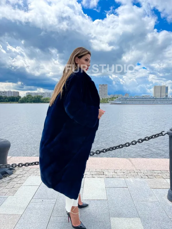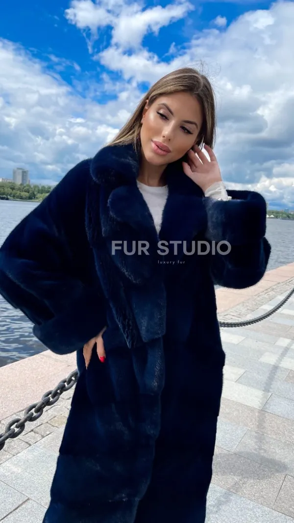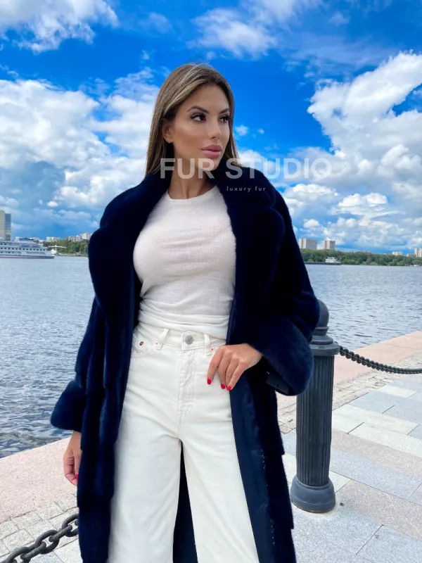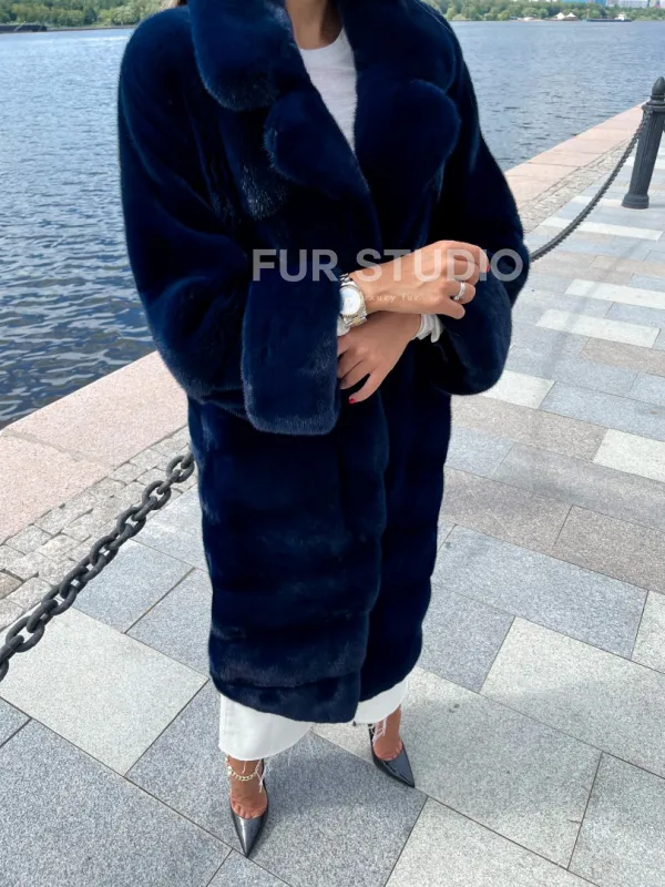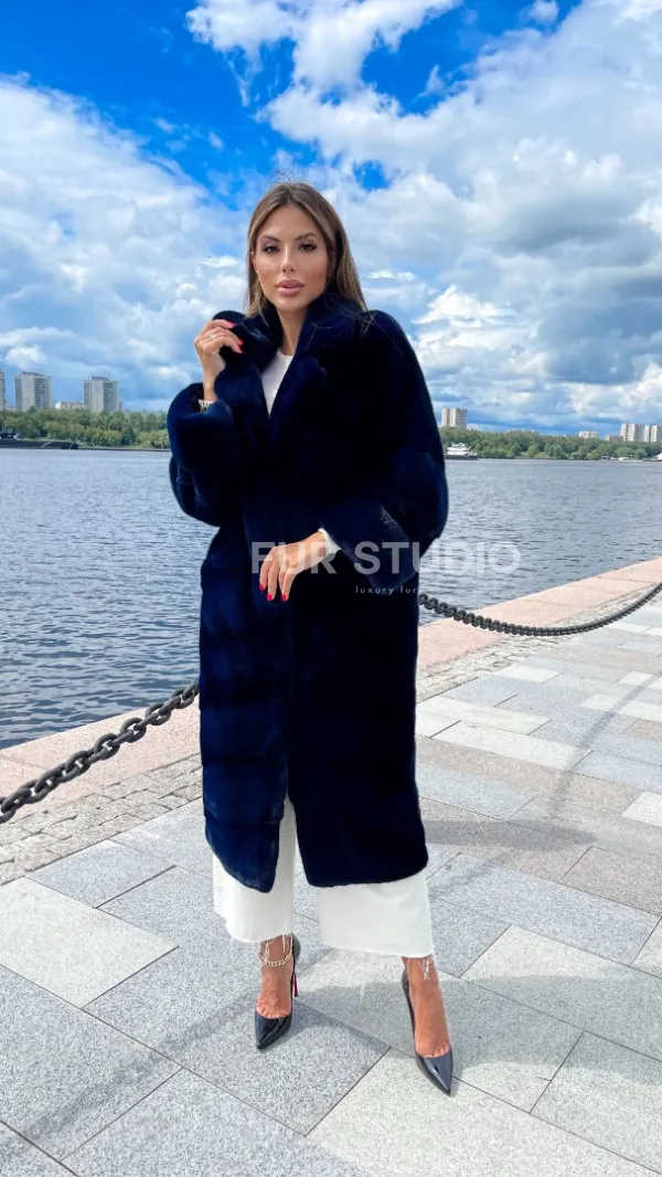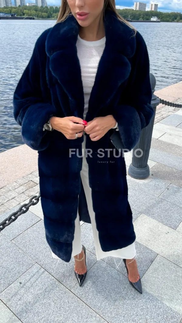 Шуба из плюшевой норки в цвете индиго 100221