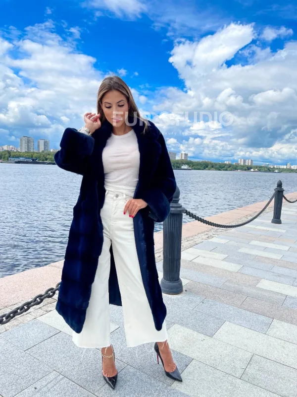Цвет индиго выгодно подчеркнет оттенок волос и кожи владелицы. Широкие манжеты делают акцент на тонкости кистей. Необычный воротник позаботится о комфорте шеи и подчеркнет ее изящество. Купить шубу из плюшевой норки в цвете индиго могут девушки, которые любят приковывать взгляды и находится в центре внимания.