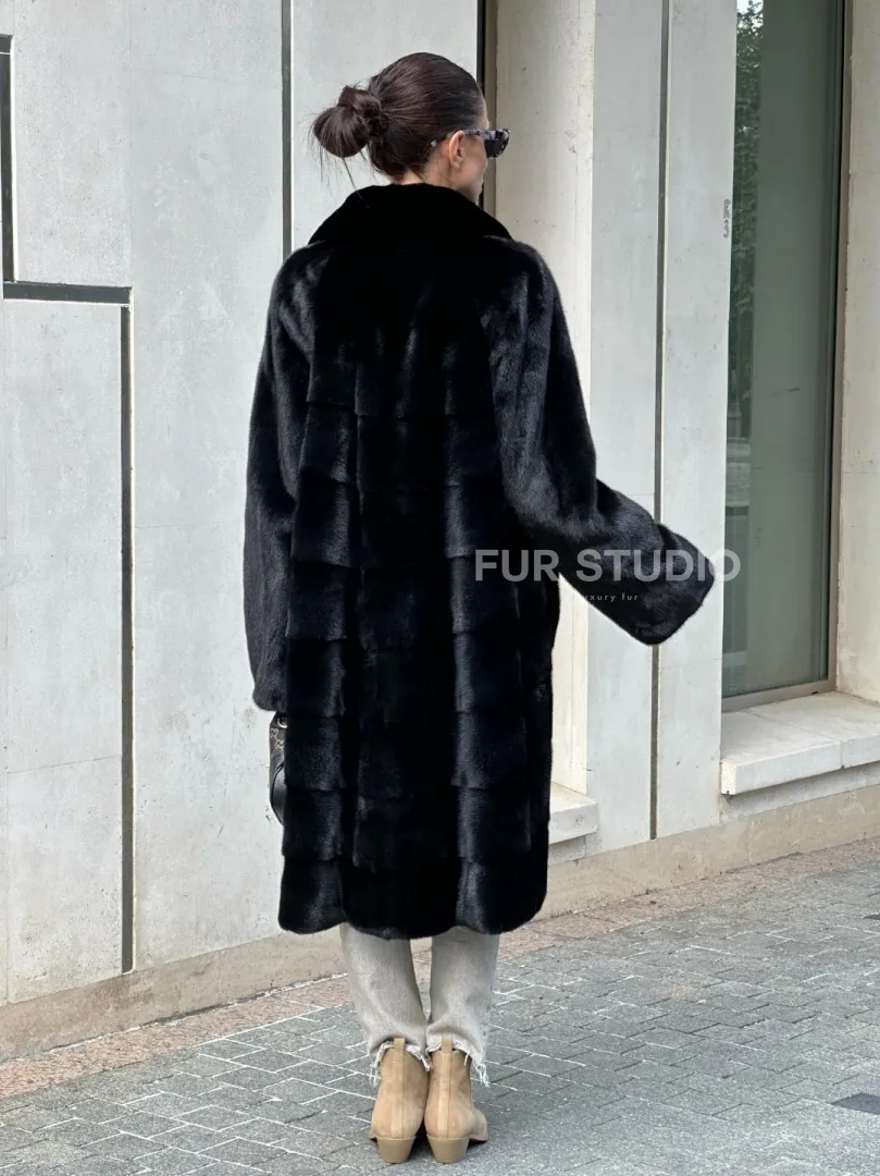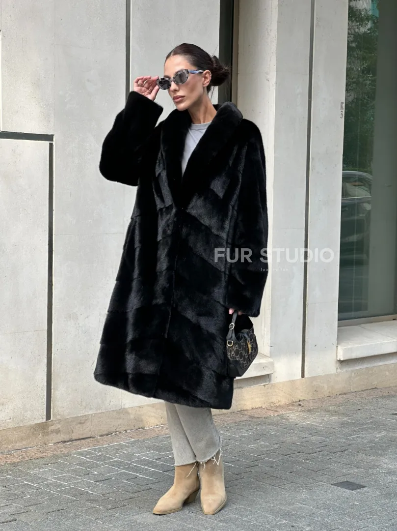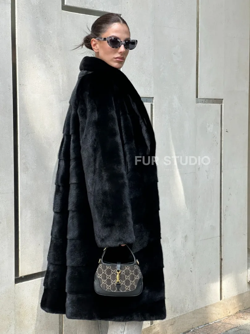 Мех данной шубы аукционная норка , цвет черный. Предлагается в размерах от 42 до 48 с 50. Длина модели 105-110 см, что выгодно подчеркивает фигуру девушек. Эта модель идеально подойдет для девушек и женщин, предпочитающих роскошные натуральные меха.