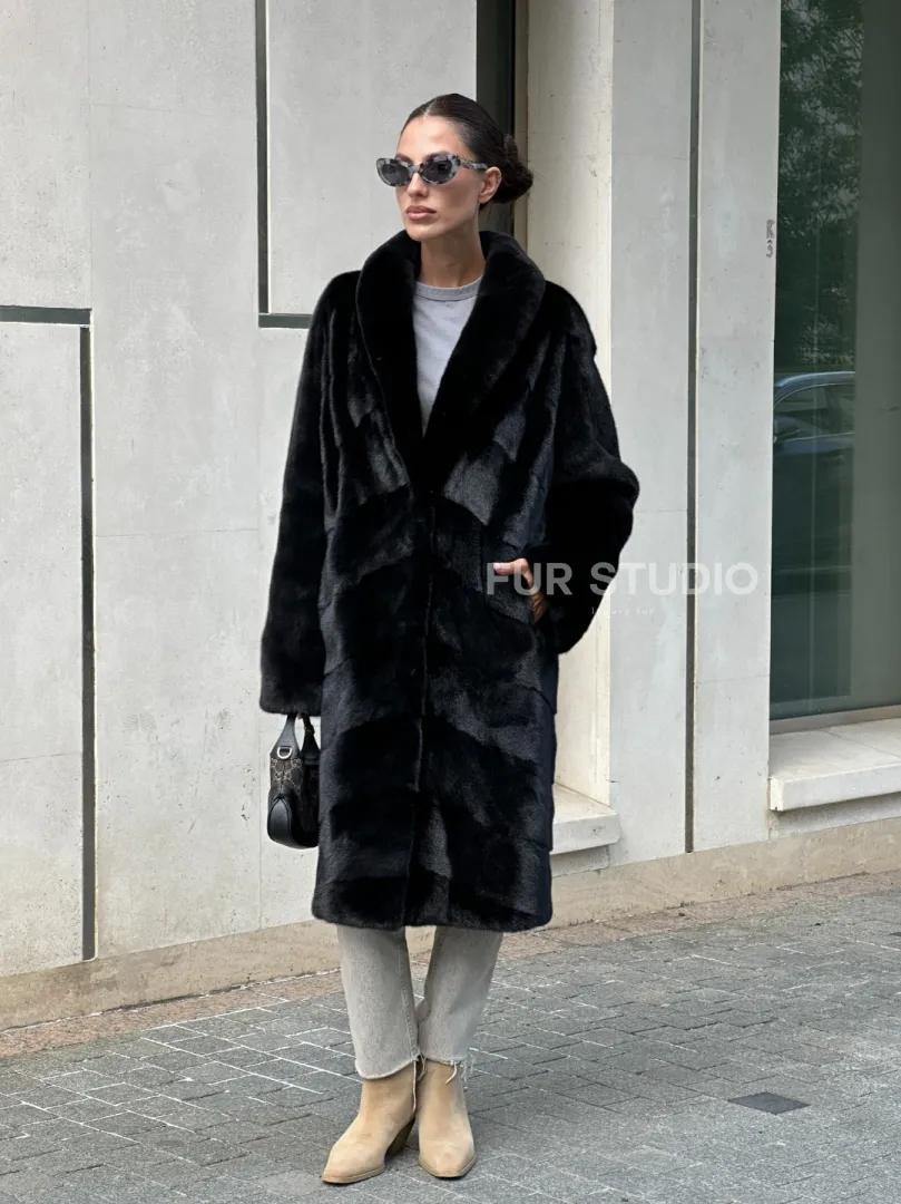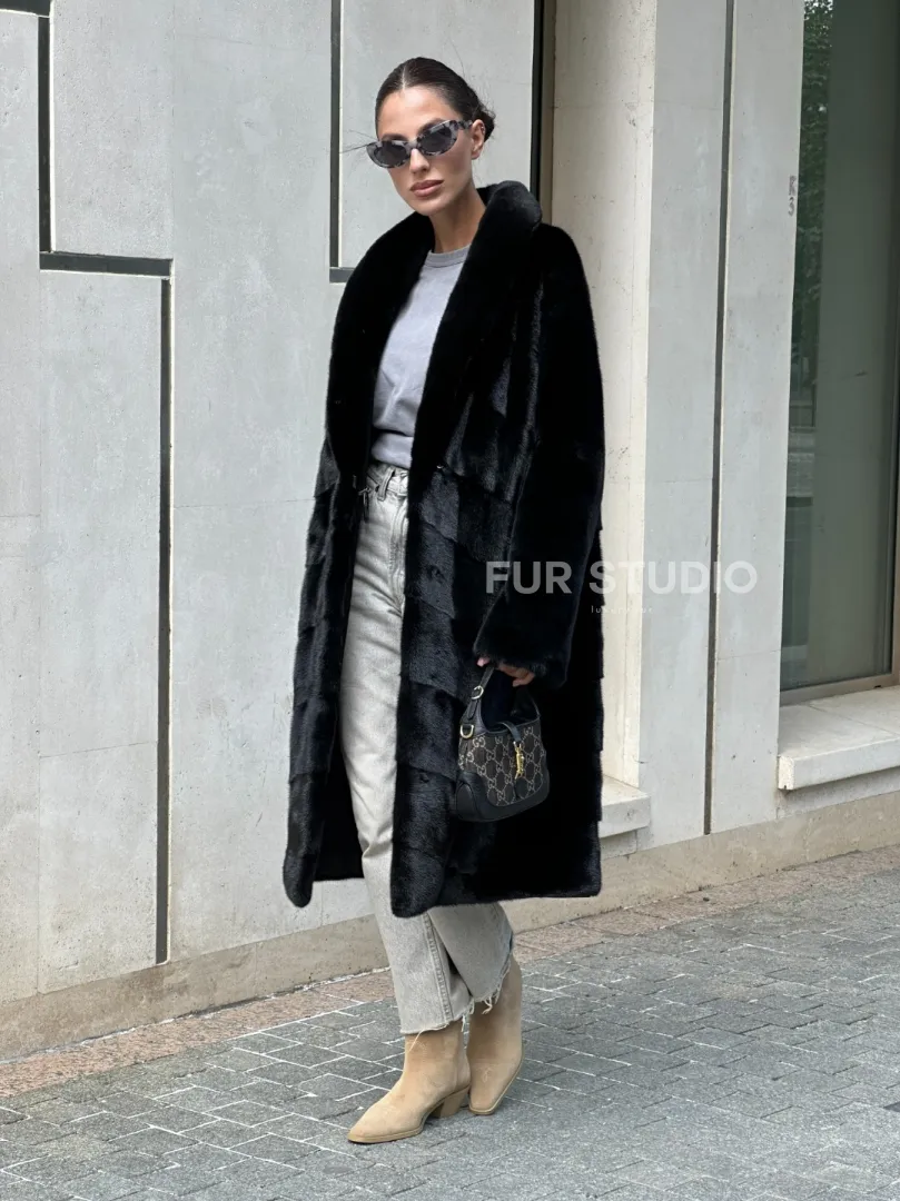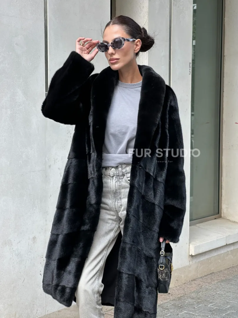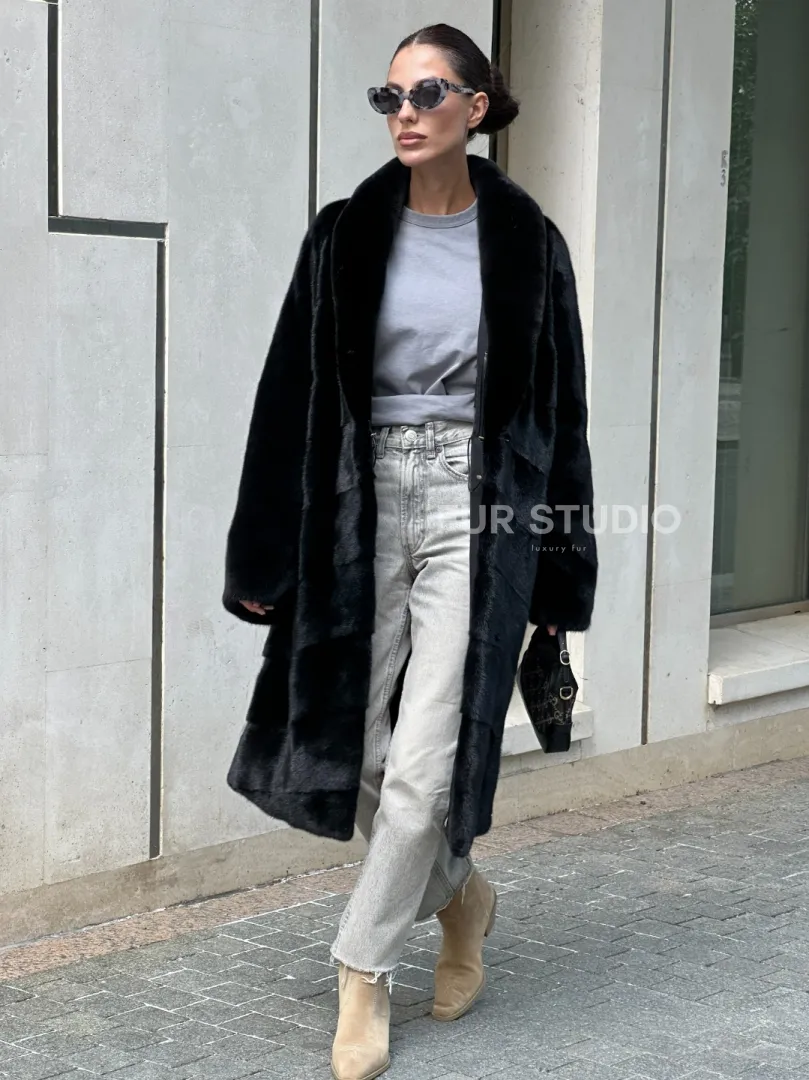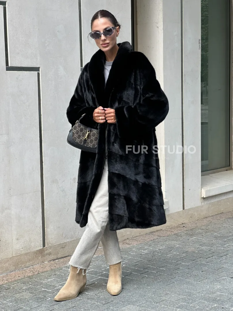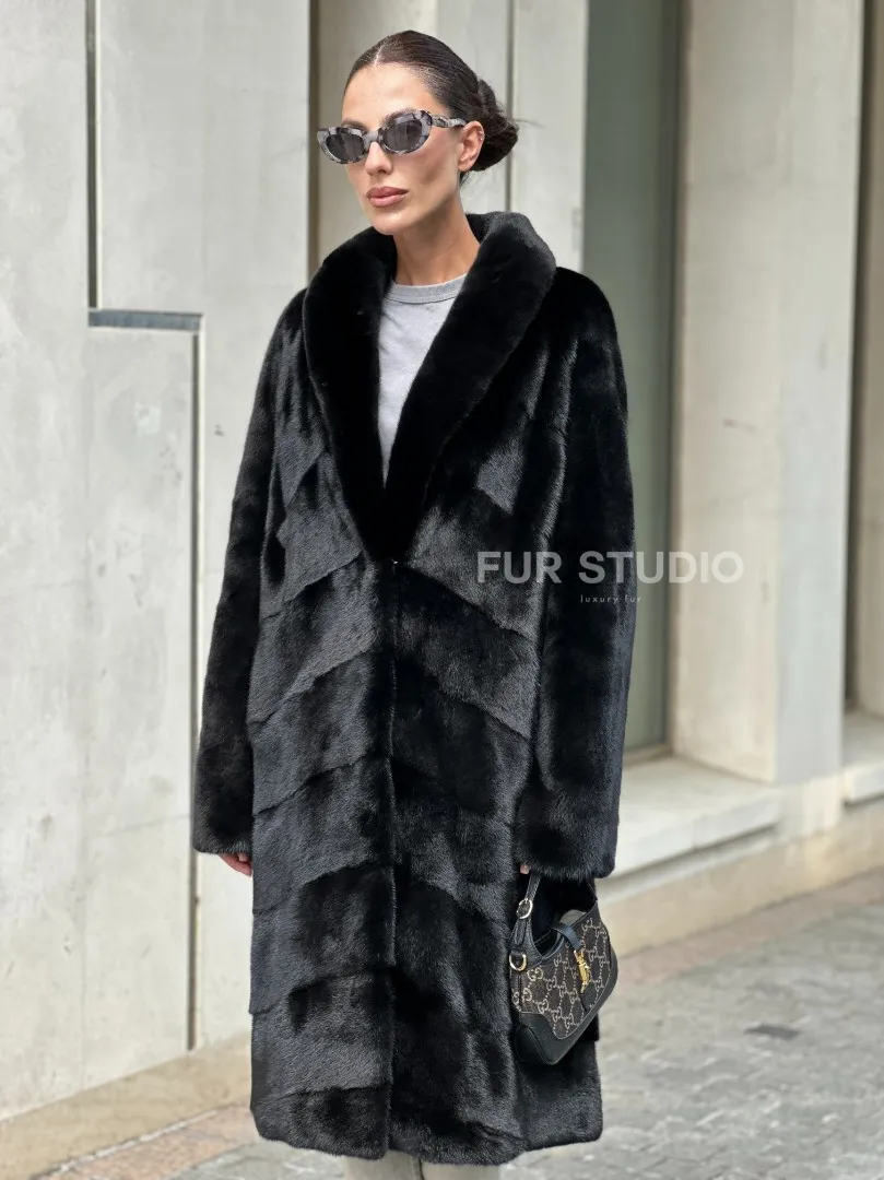 Шуба из скандинавского меха норки Saga furs с шалевым воротником доступна для покупки в нашем шоуруме Furs Studio в Москве. У нас так же есть доставка во все города России. Добавьте немного роскоши в свой гардероб с этой шубой, которая будет служить вам многие годы.