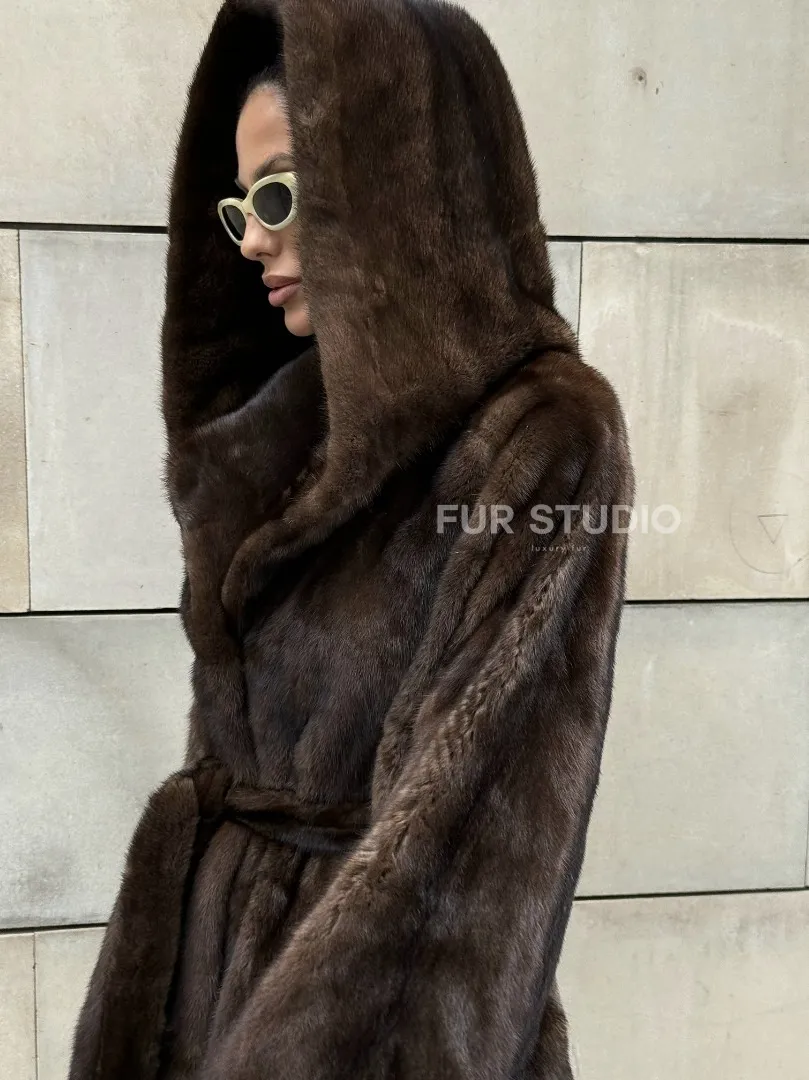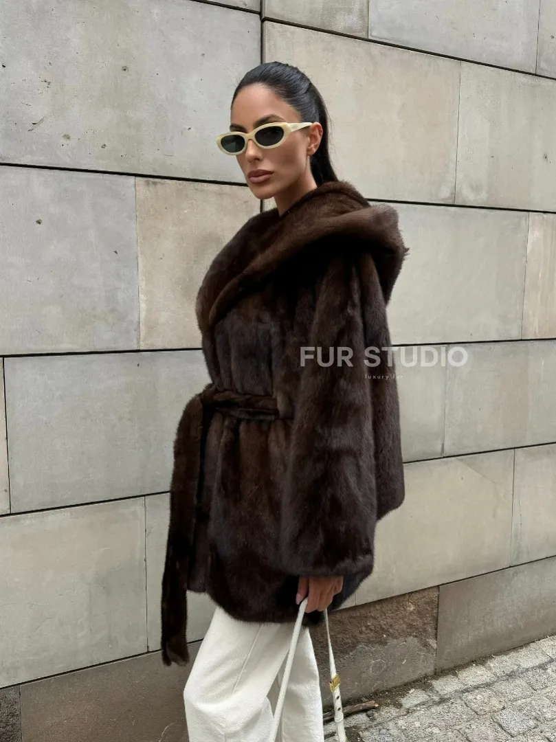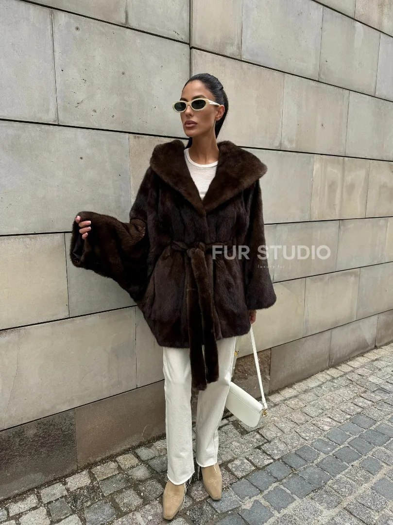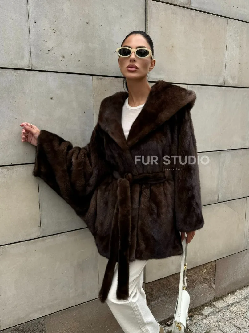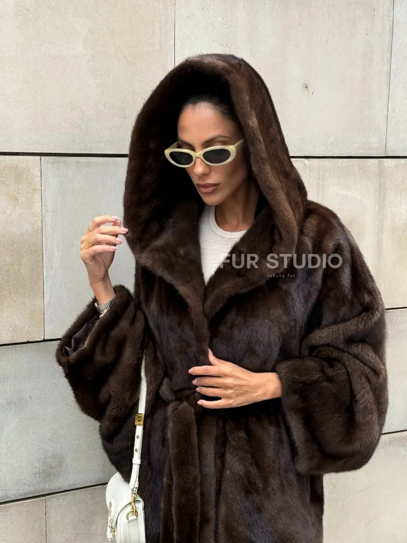 Шуба из скандинавской норки с капюшоном летучая мышь, роспуск орех доступна для покупки в нашем шоуруме Furs Studio в Москве. У нас так же есть доставка во все города России. Добавьте немного роскоши в свой гардероб с этой шубой, которая будет служить вам многие годы.