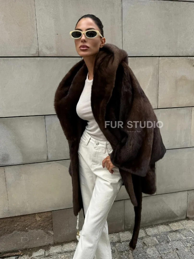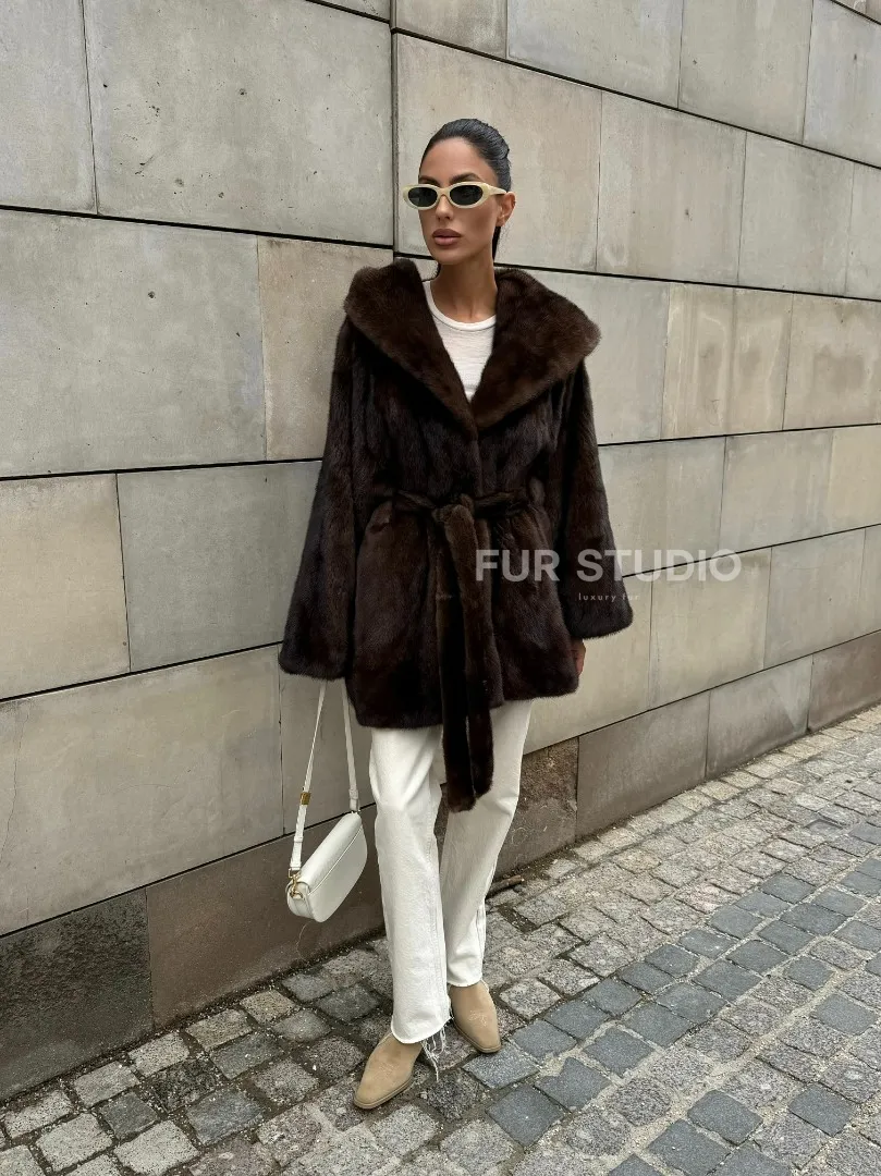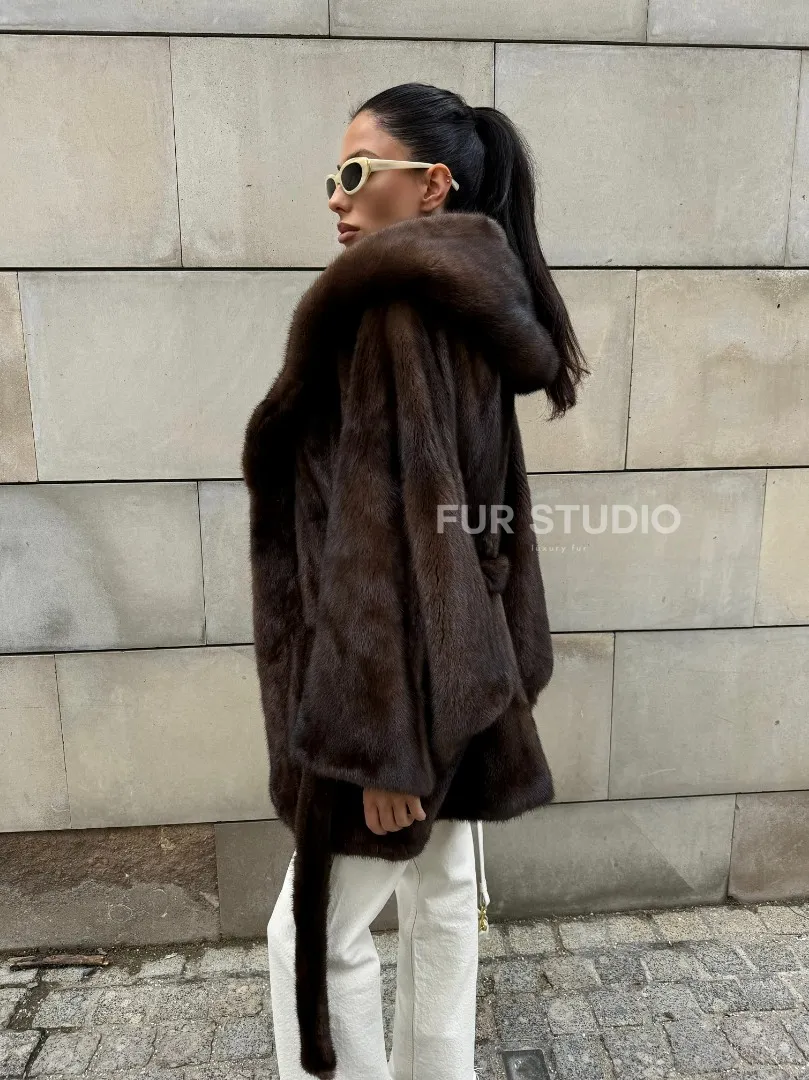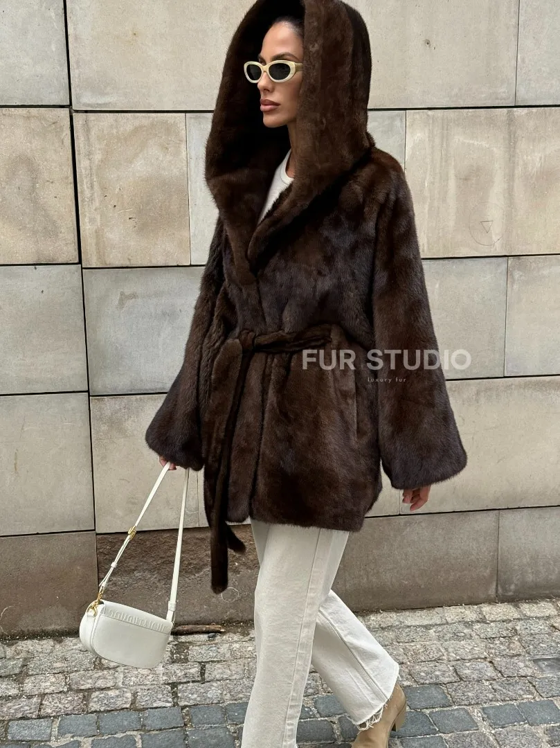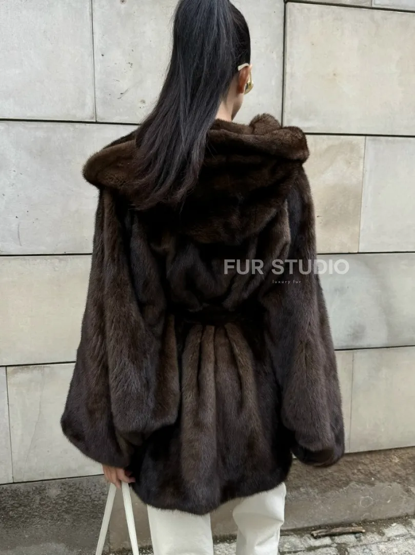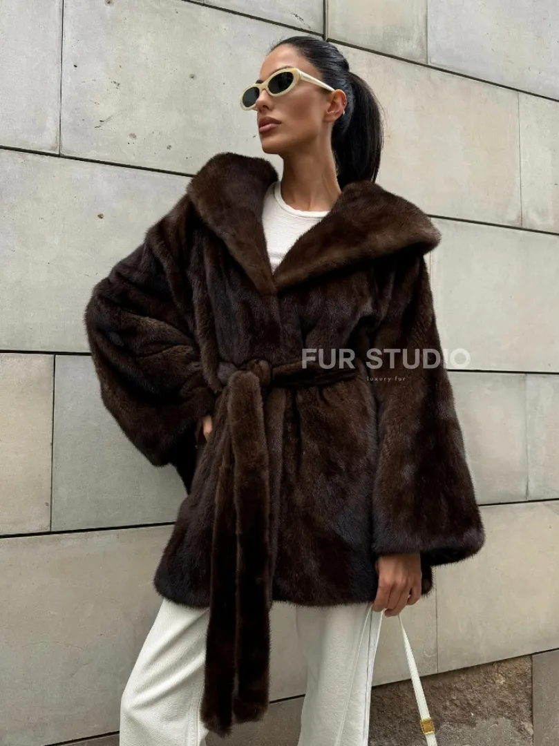 Шуба из скандинавской норки с капюшоном летучая мышь, роспуск орех доступна для покупки в нашем шоуруме Furs Studio в Москве. У нас так же есть доставка во все города России. Добавьте немного роскоши в свой гардероб с этой шубой, которая будет служить вам многие годы.